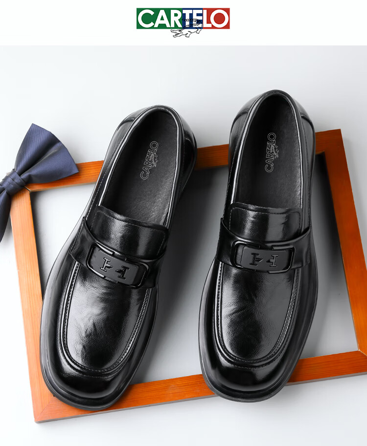 CARTELO crocodile (CARTELO) first layer cowhide shoes men's shoes 2025 new casual leather shoes workplace business men's loafers K046 black 40
