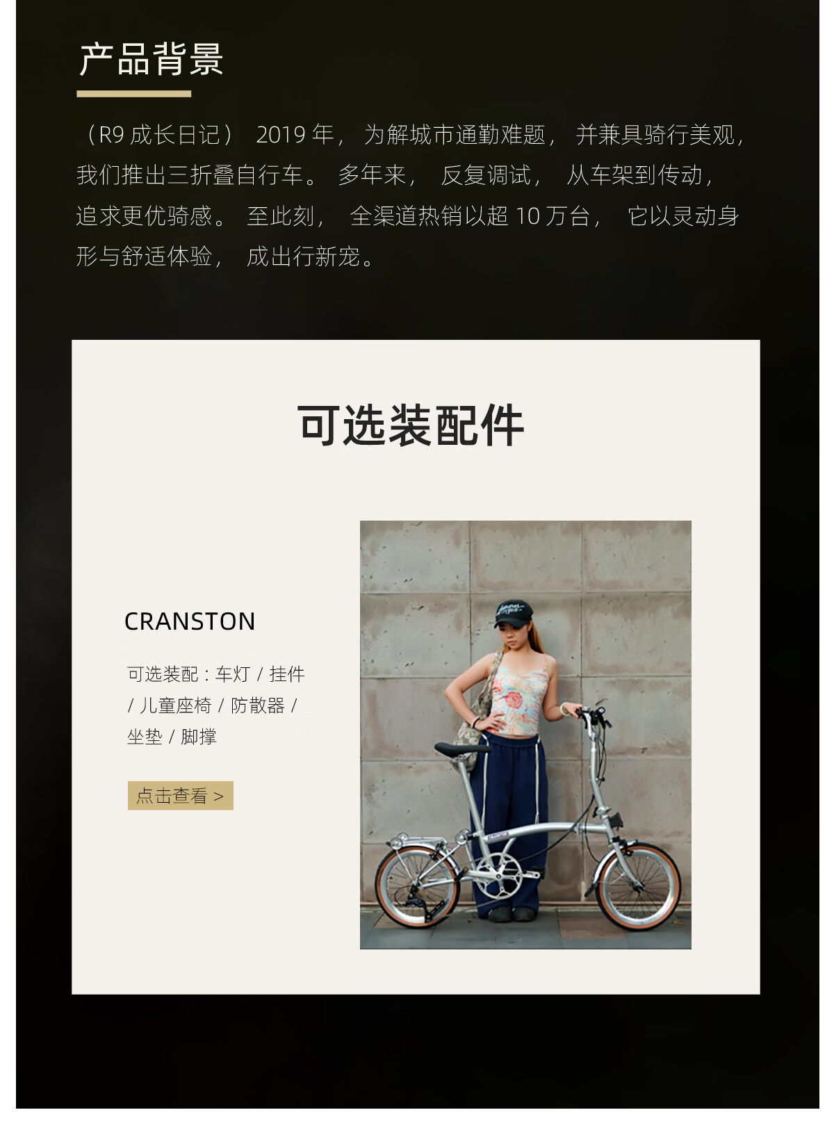 CRANSTONR9 16-inch 9-speed three-fold adult ultra-light portable urban retro small cloth folding bicycle