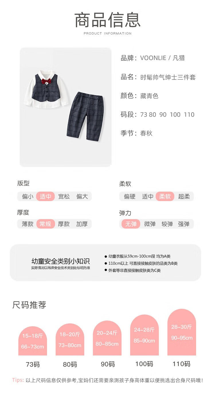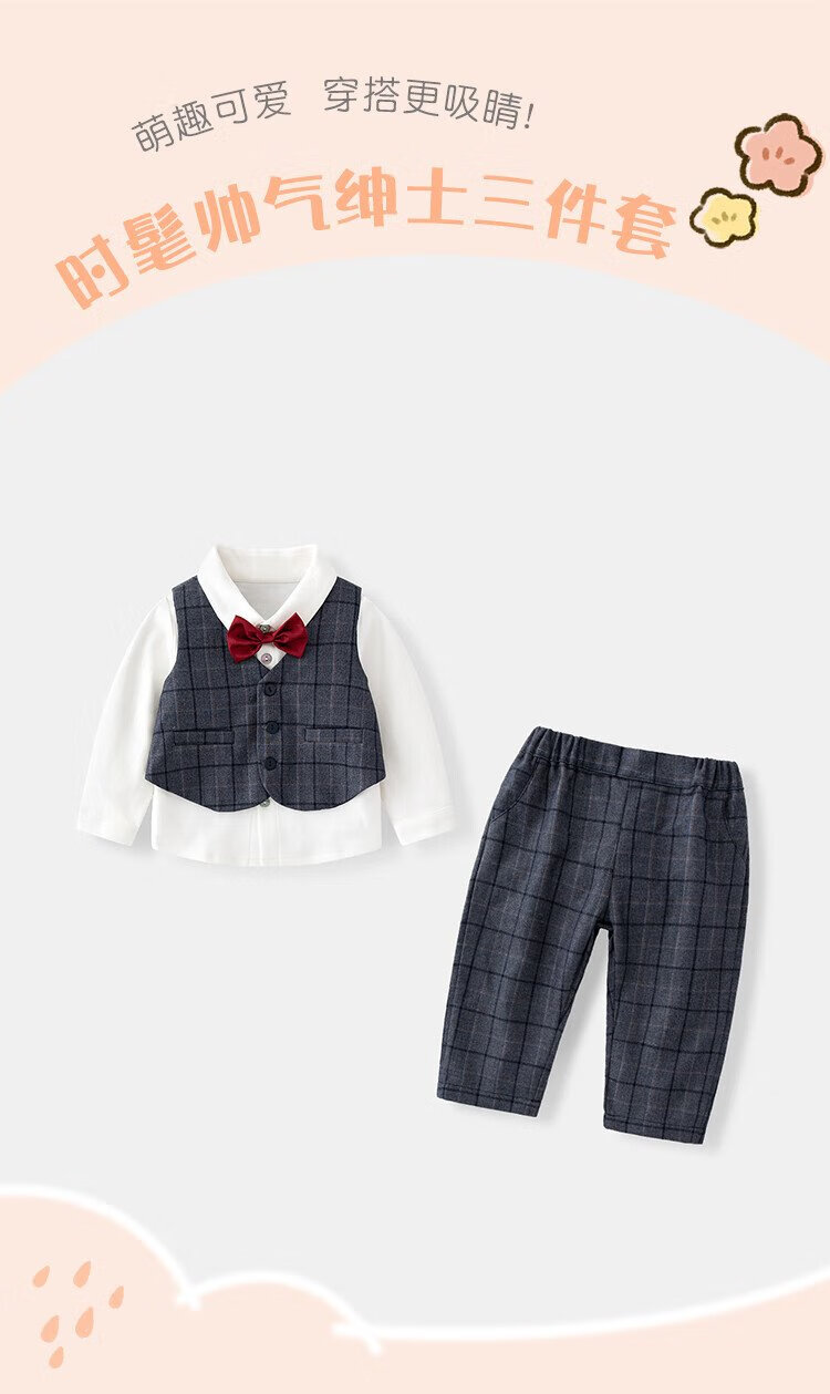 Fanlie VOONLIE Boys Autumn Suit Gentleman Handsome 100-day-old Baby Dress Birthday Catch Week Banquet Children's Three-piece Set