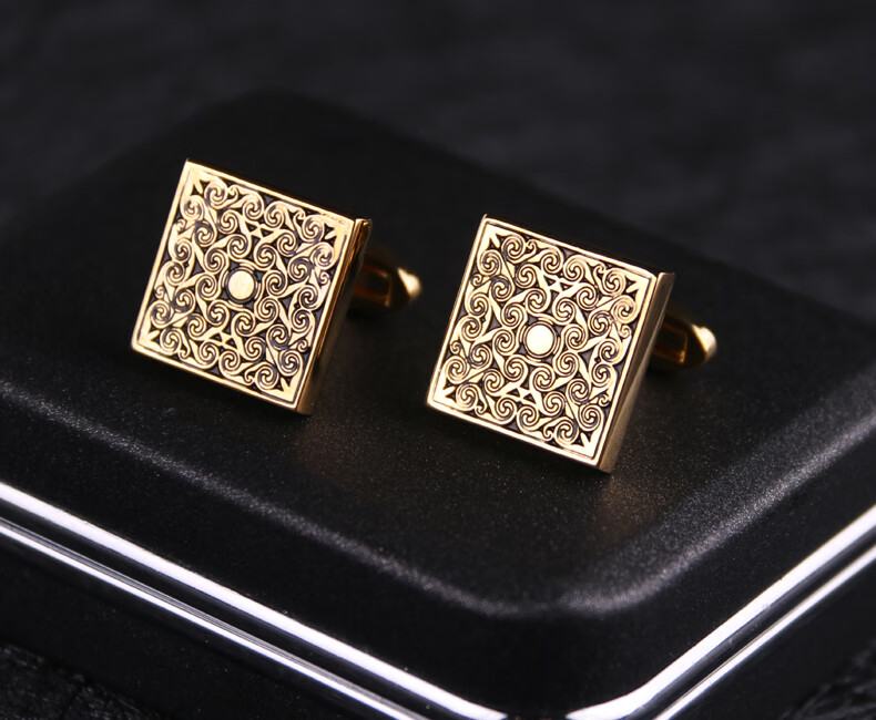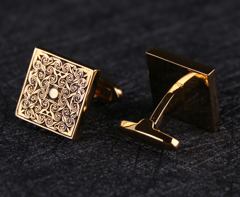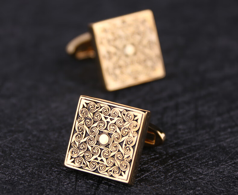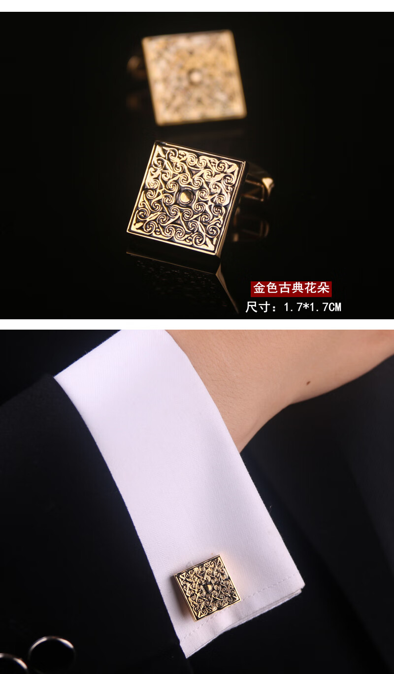Lieshang China Golden Auspicious Pattern Men's Cuff Buttons Shirt Cuff French Button Shirt Cuff Men's Cuff Pins Business Golden Auspicious Pattern (Square)