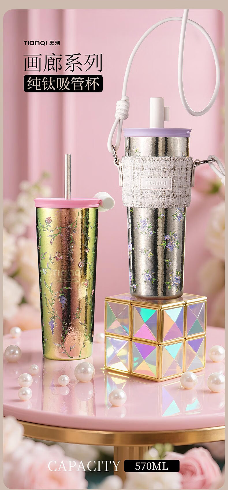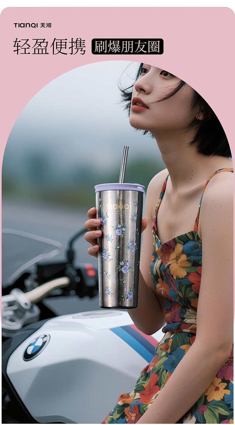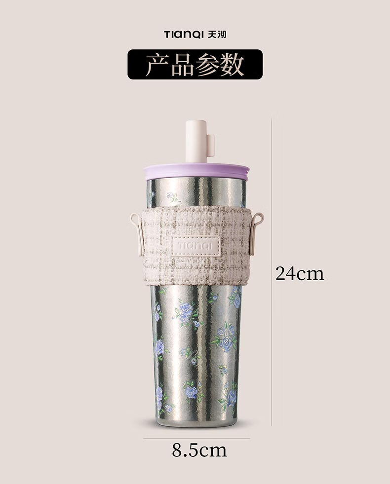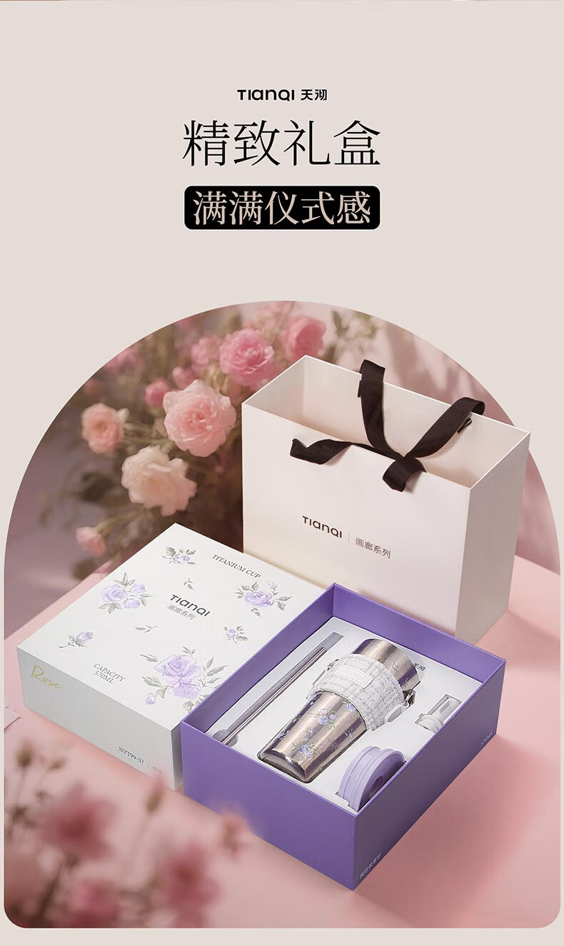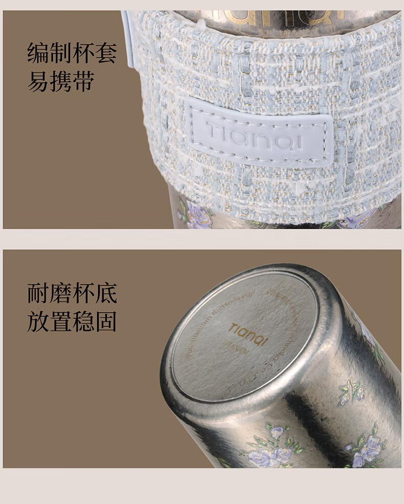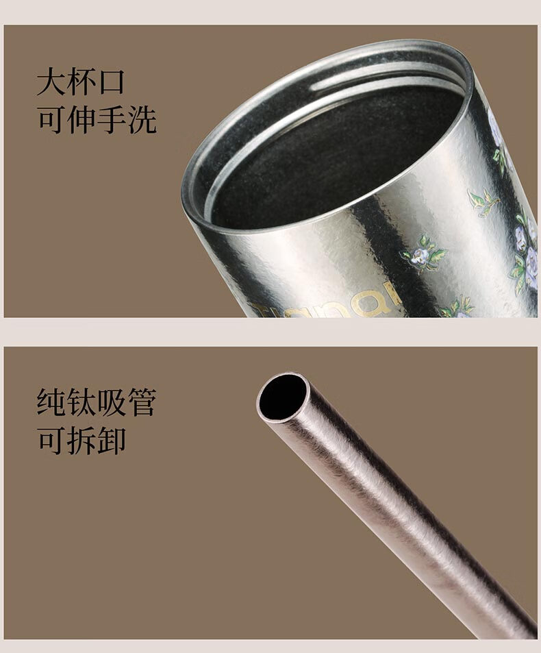 Tianchu pure titanium thermos cup, high appearance, cold insulation coffee cup, tea straw, outdoor titanium cup gallery series rose 570ml