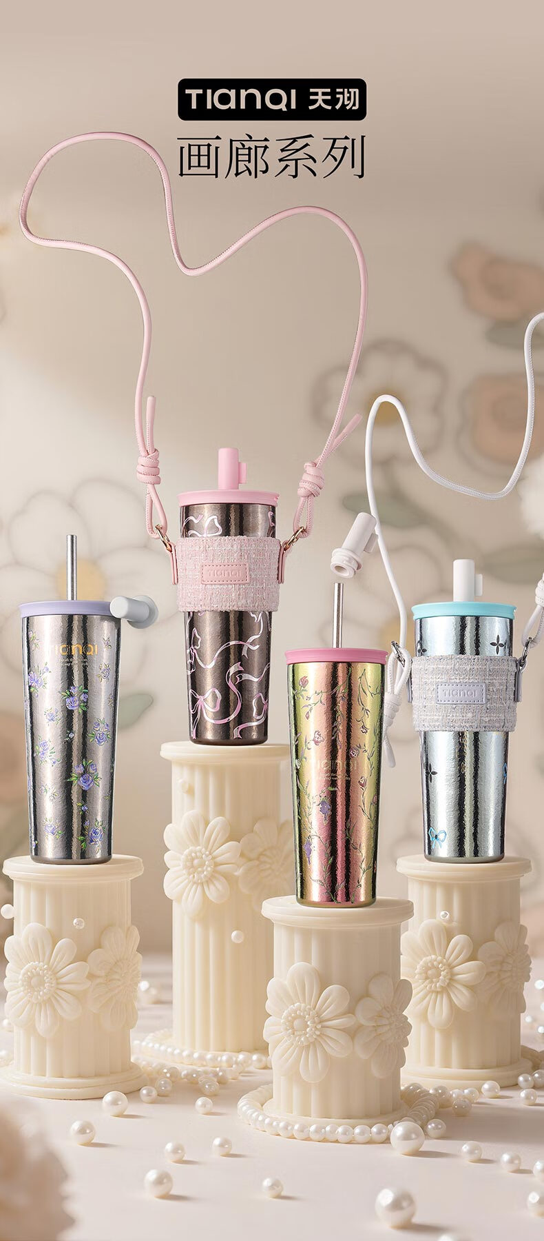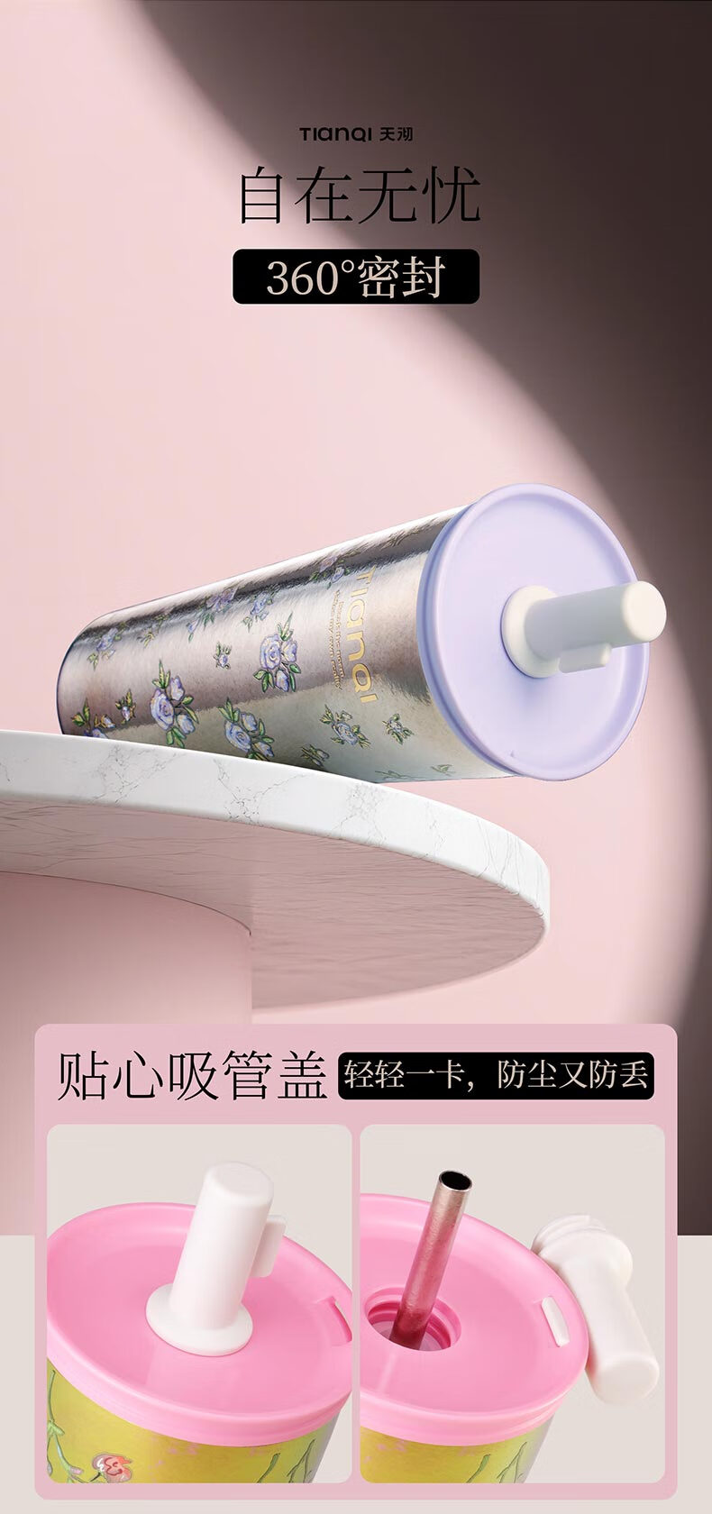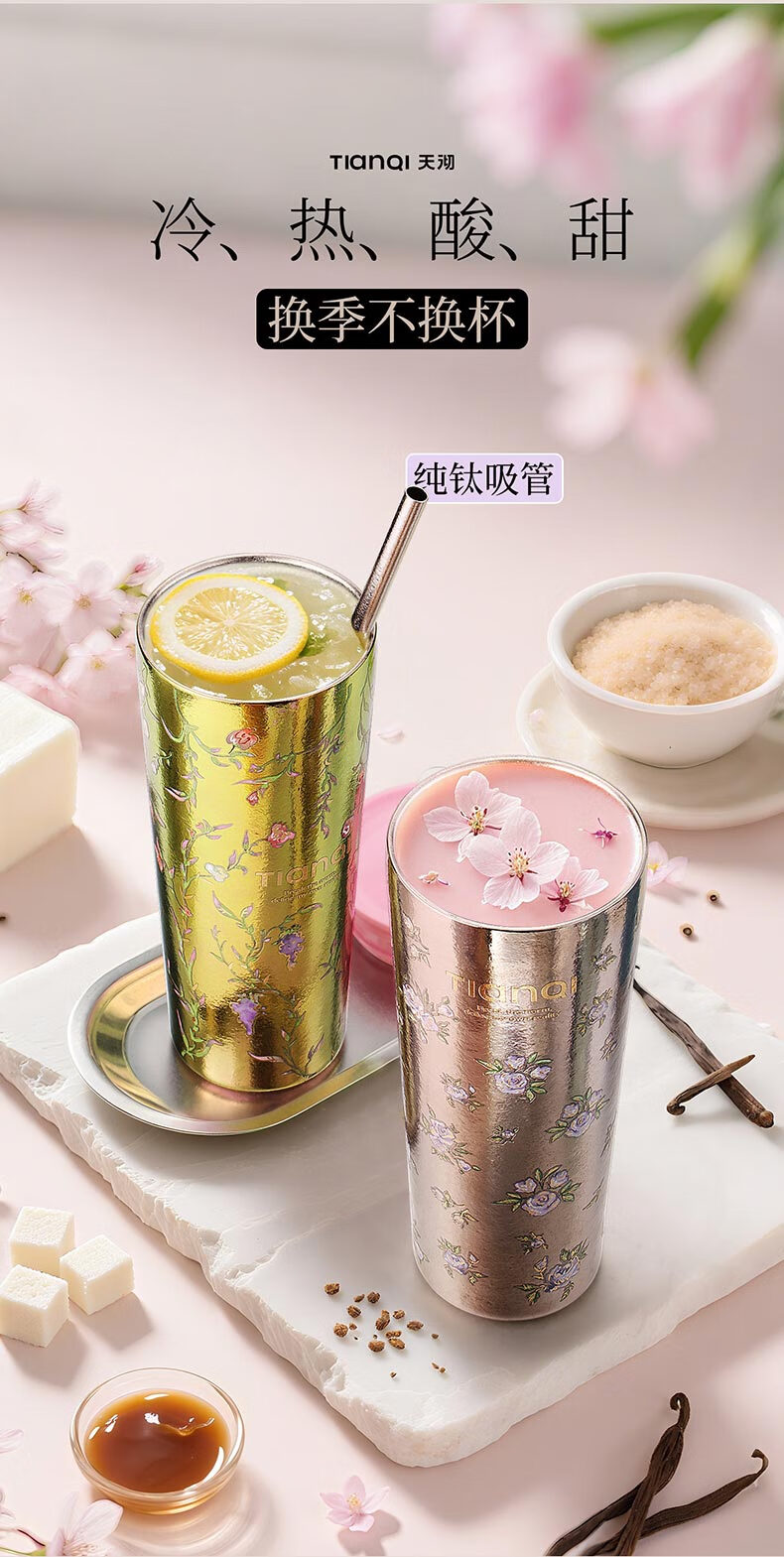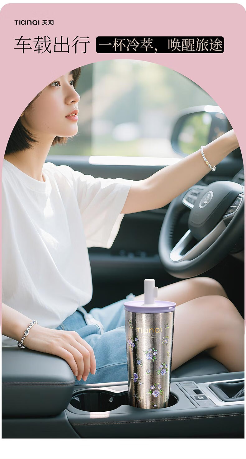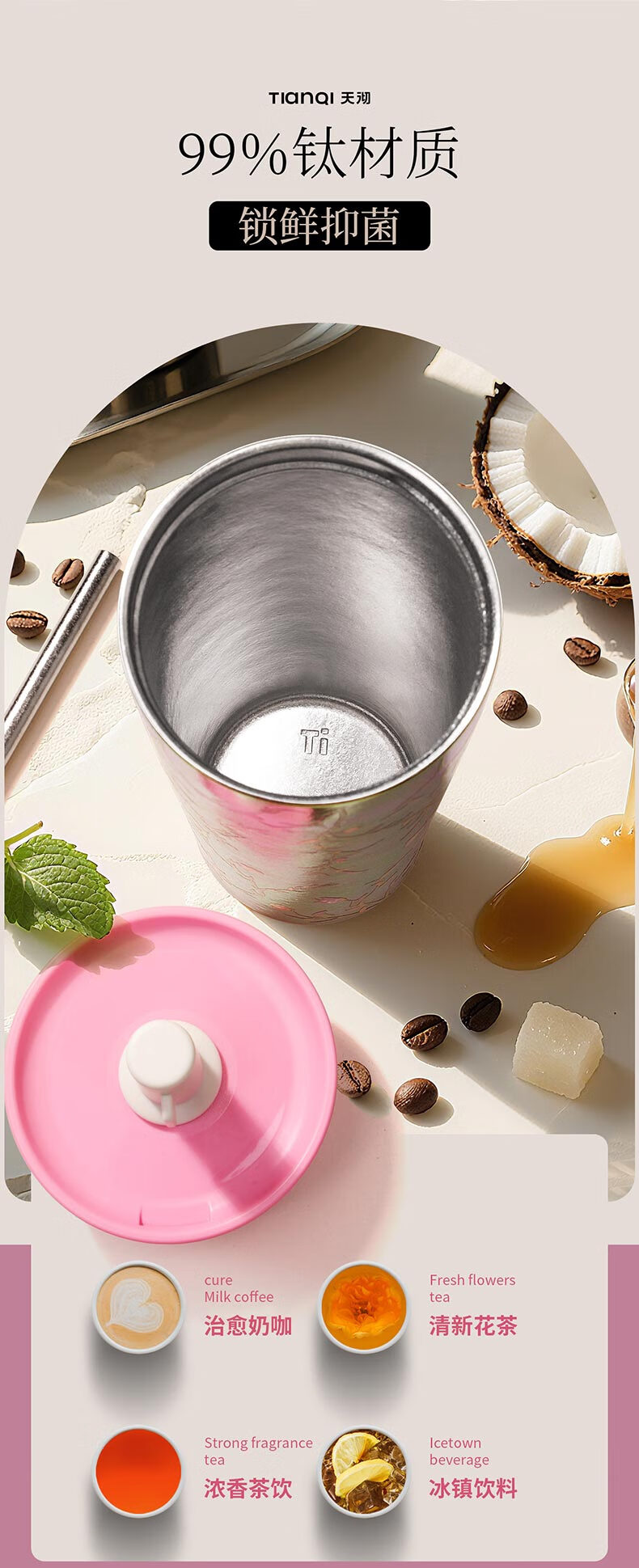 Tianchu pure titanium thermos cup, high appearance, cold insulation coffee cup, tea straw, outdoor titanium cup gallery series rose 570ml