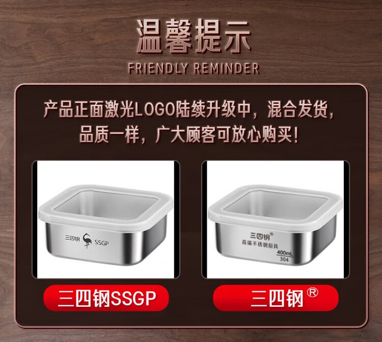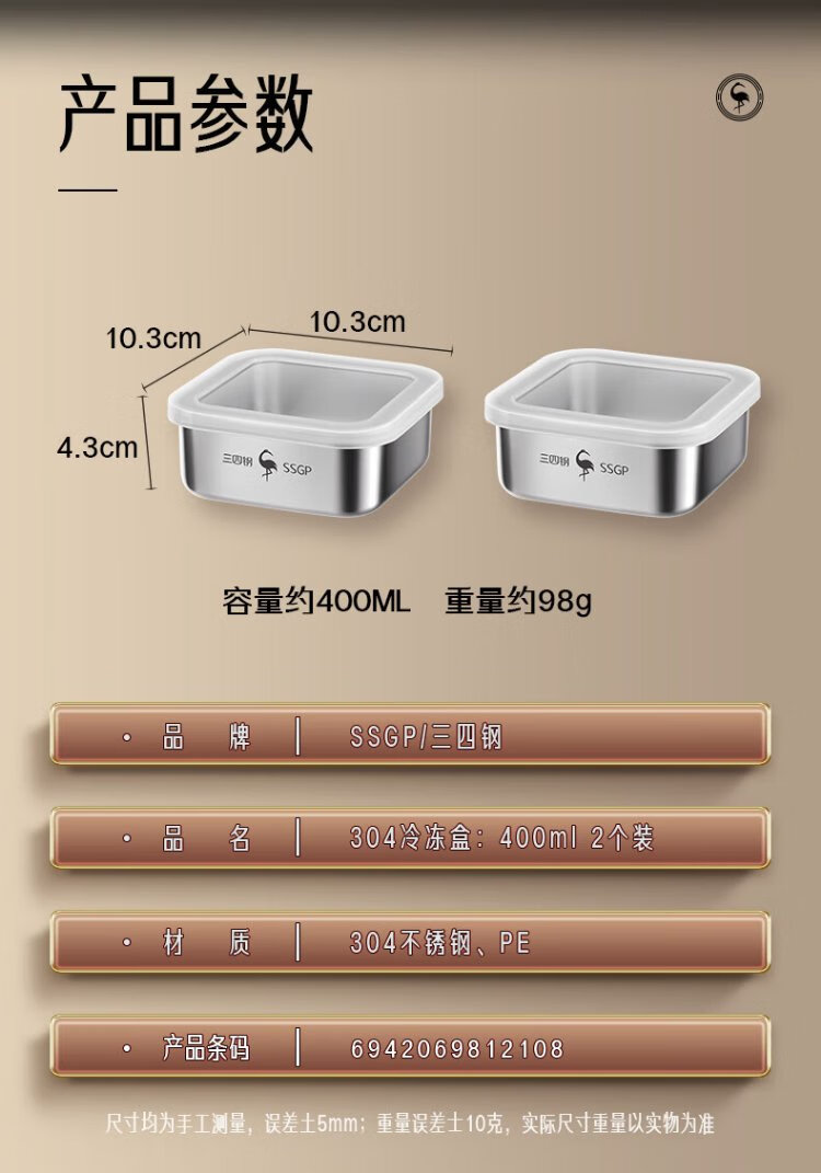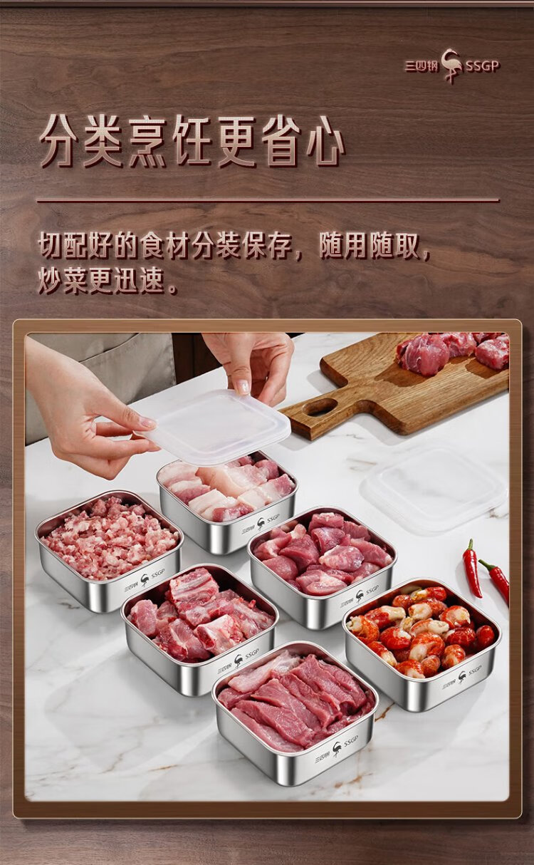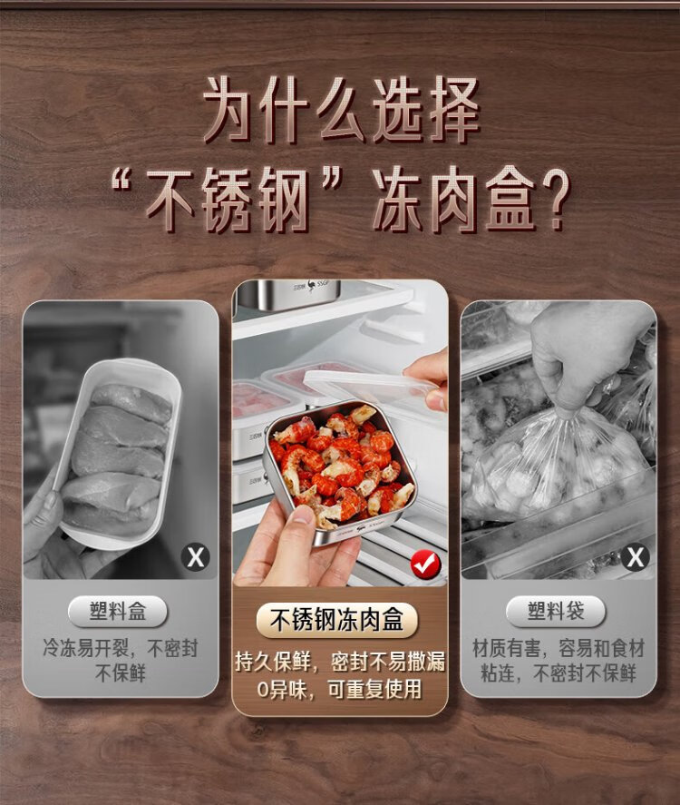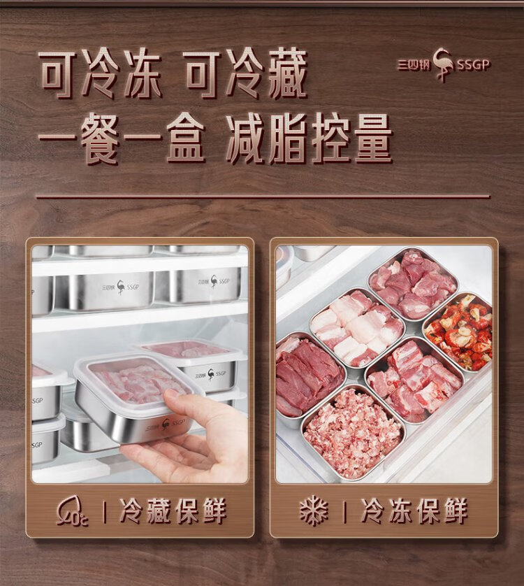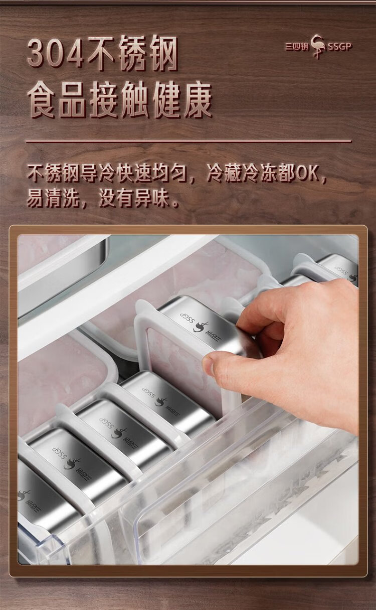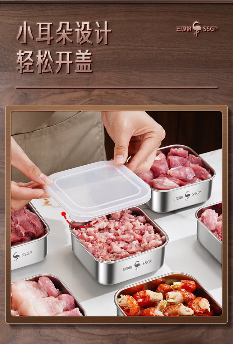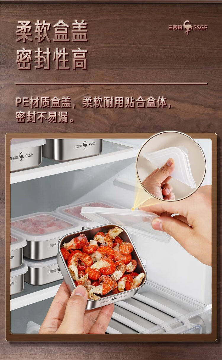 Sansi Steel stainless steel crisper freezer packaging box 304 food grade refrigerator storage box mini 2 pack W38362