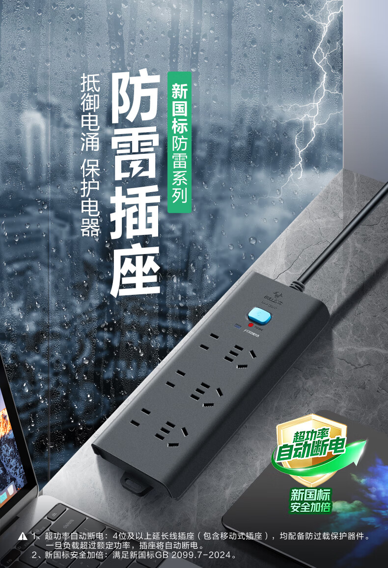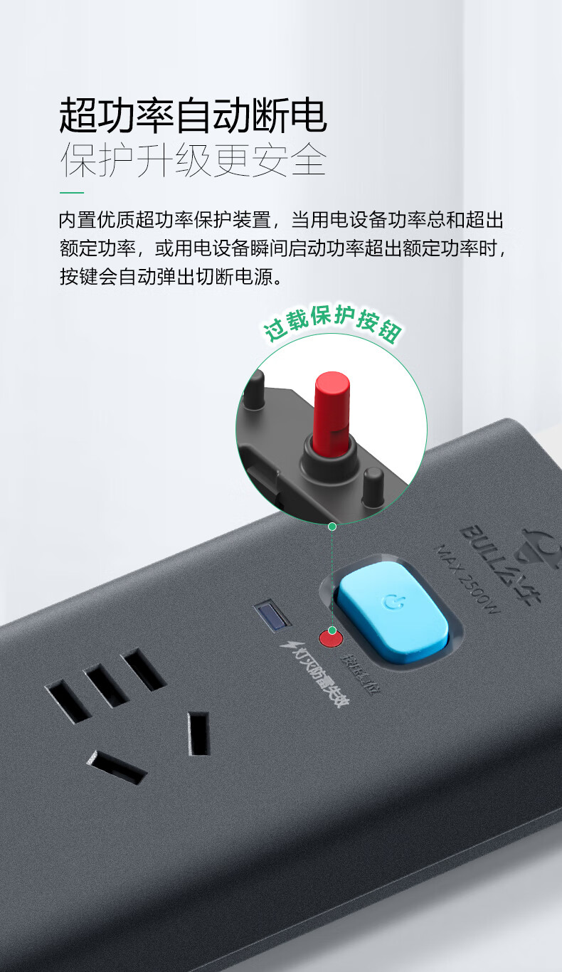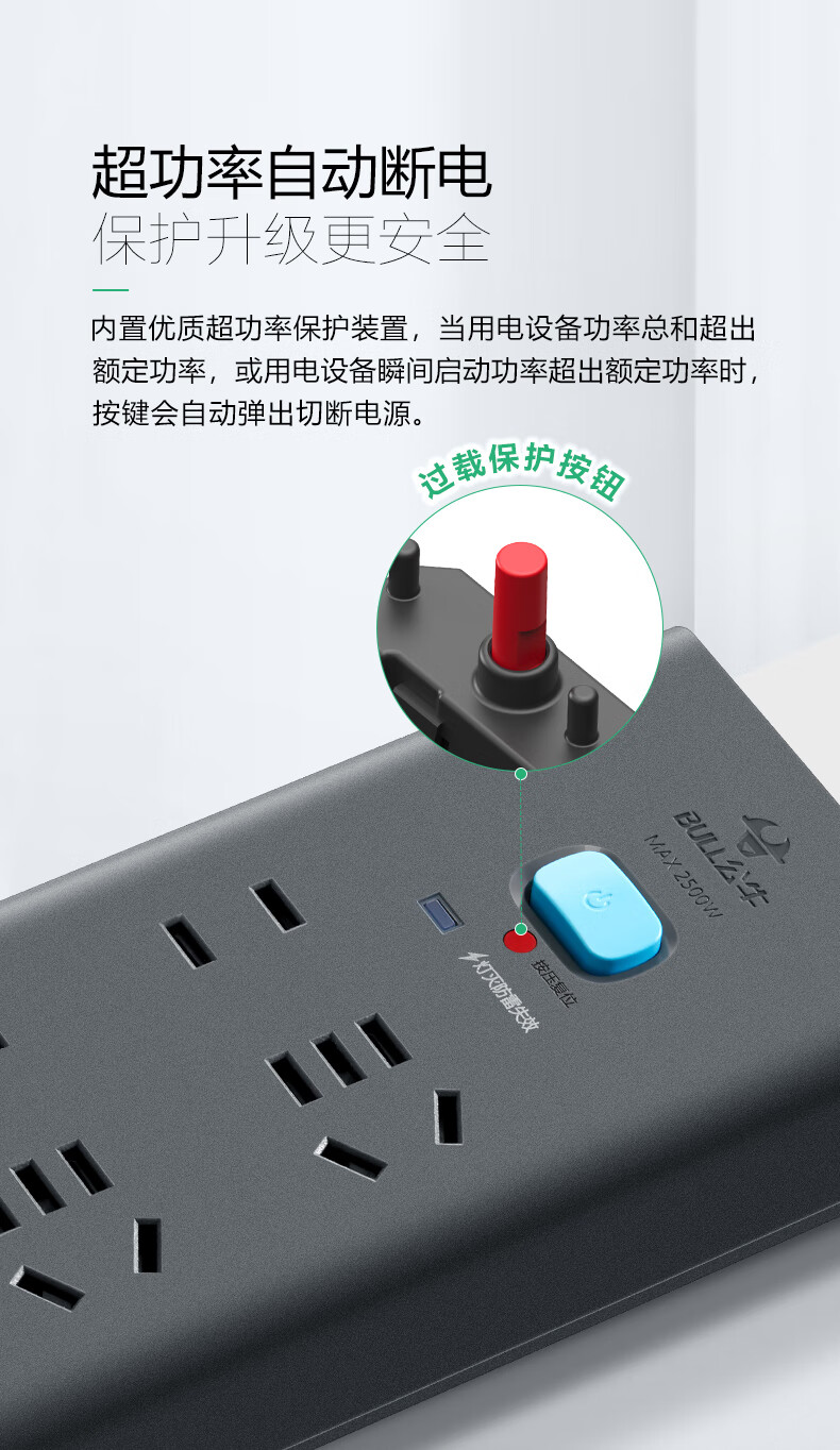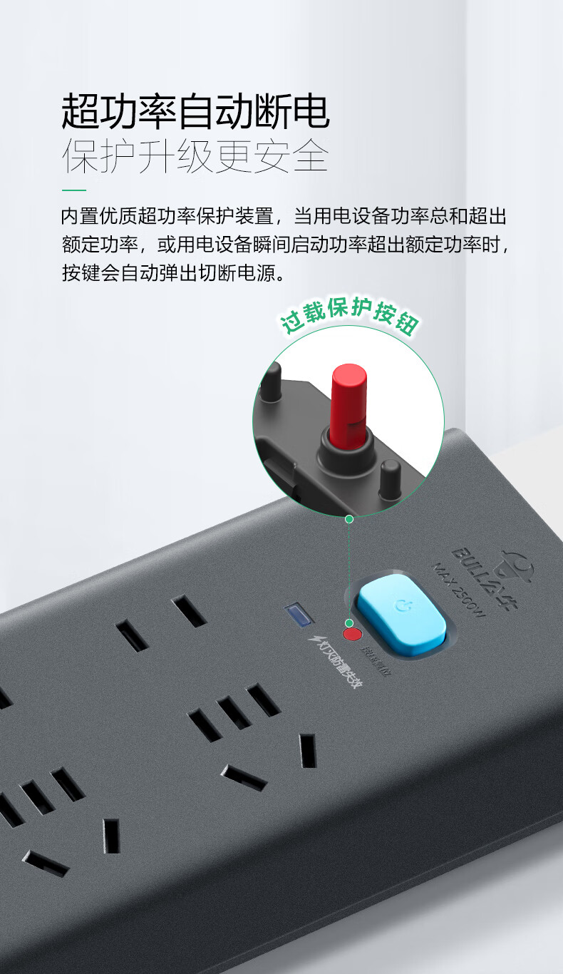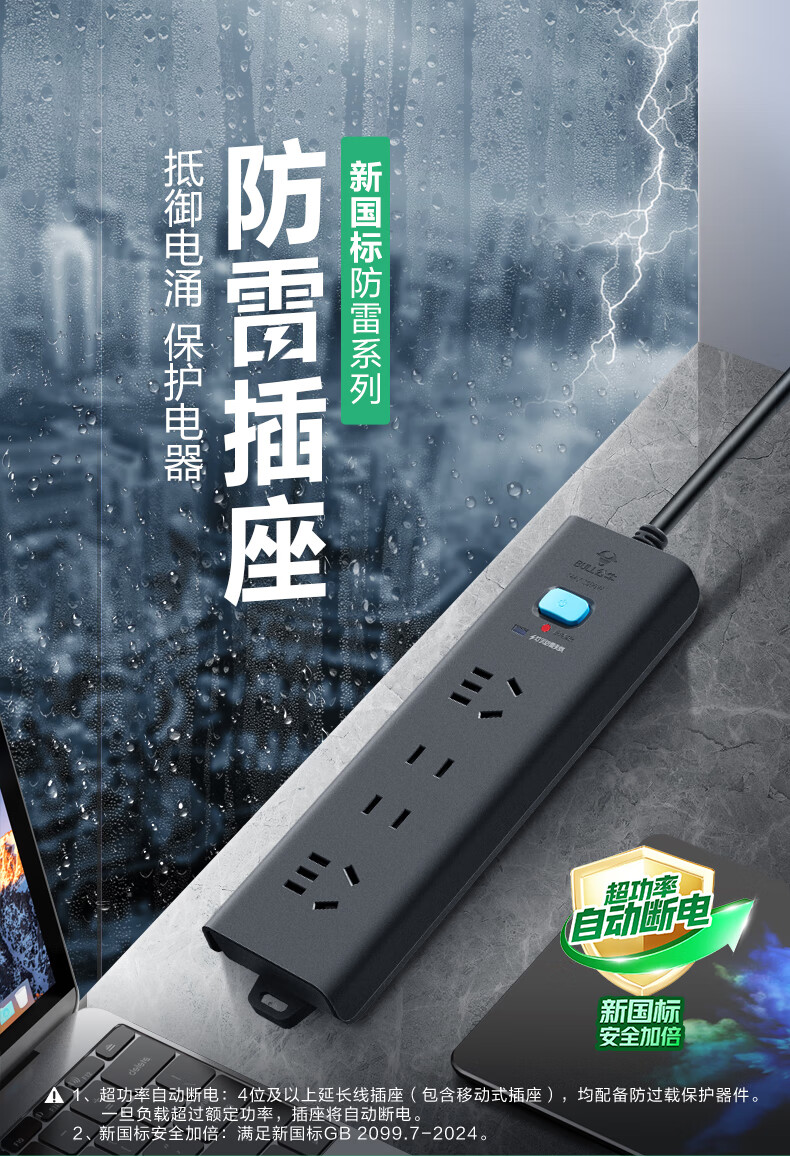 Bull (BULL) lightning protection socket/socket board/socket strip/socket strip/connection board lightning protection model 4-position total control 1.8 meters (new national standard) H5220