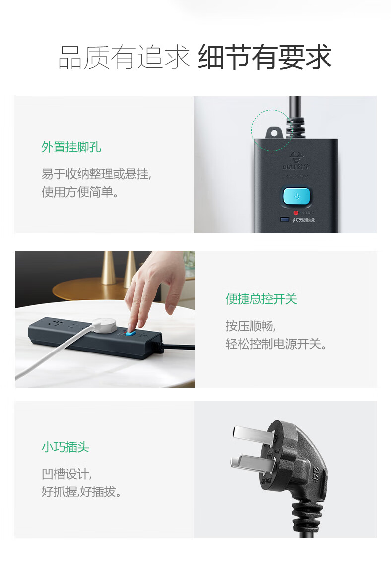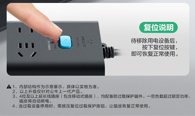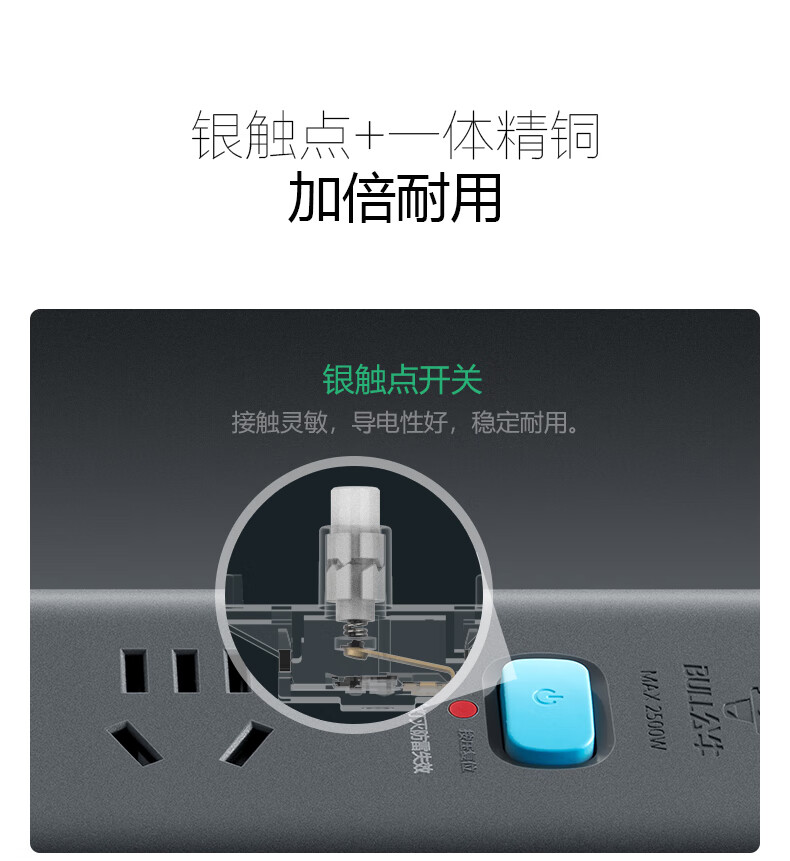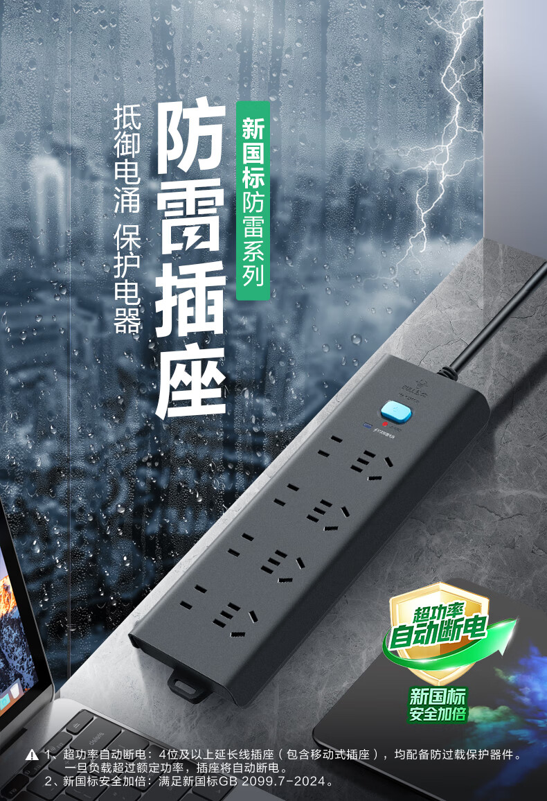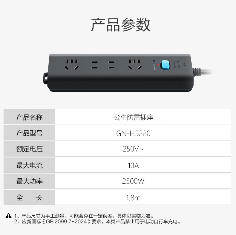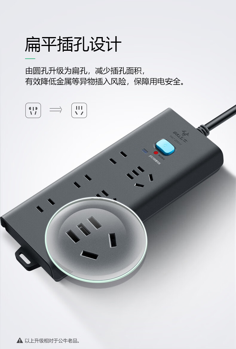 Bull (BULL) lightning protection socket/socket board/socket strip/socket strip/connection board lightning protection model 4-position total control 1.8 meters (new national standard) H5220