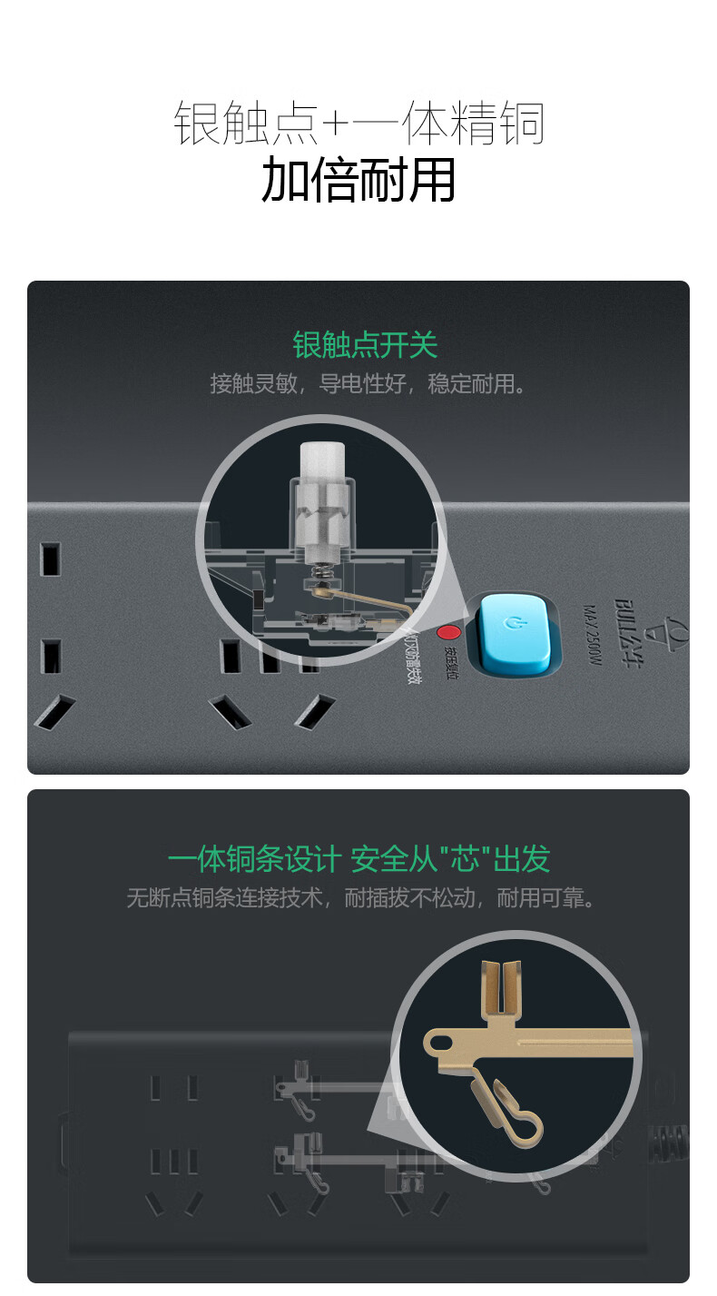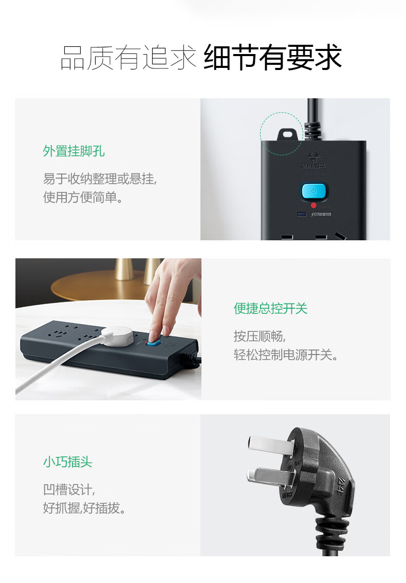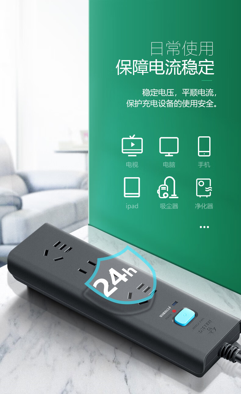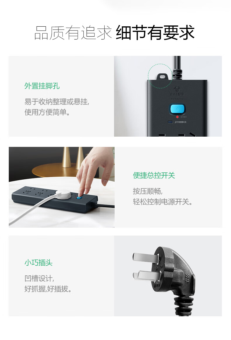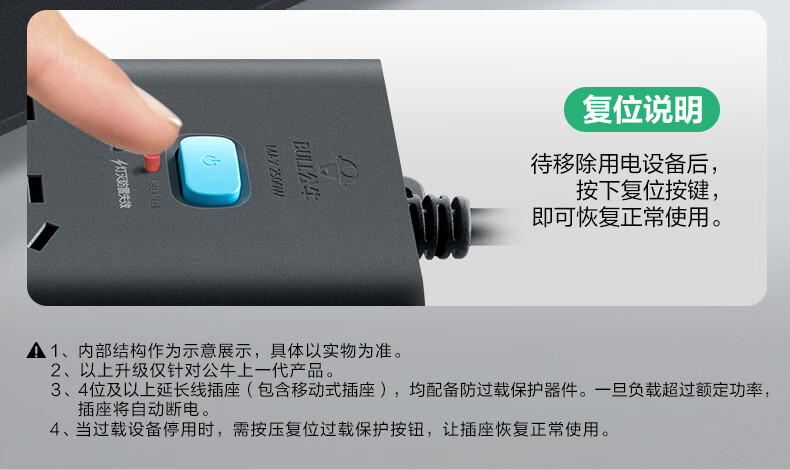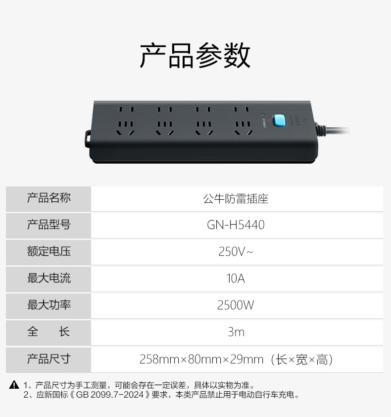 Bull (BULL) lightning protection socket/socket board/socket strip/socket strip/connection board lightning protection model 4-position total control 1.8 meters (new national standard) H5220