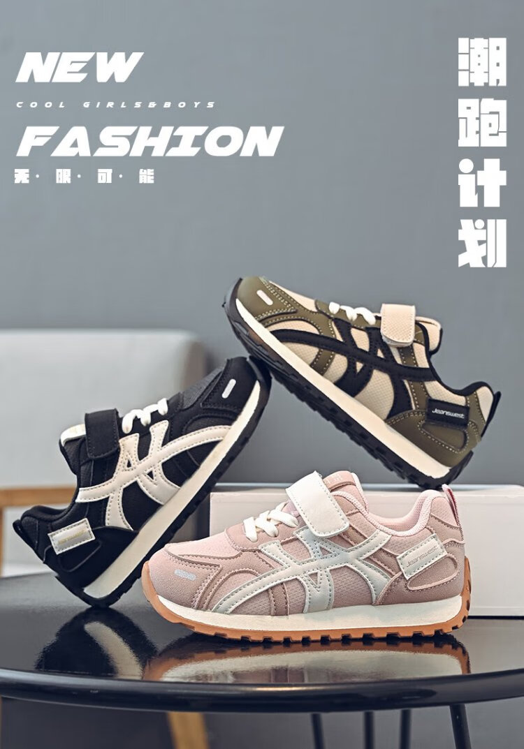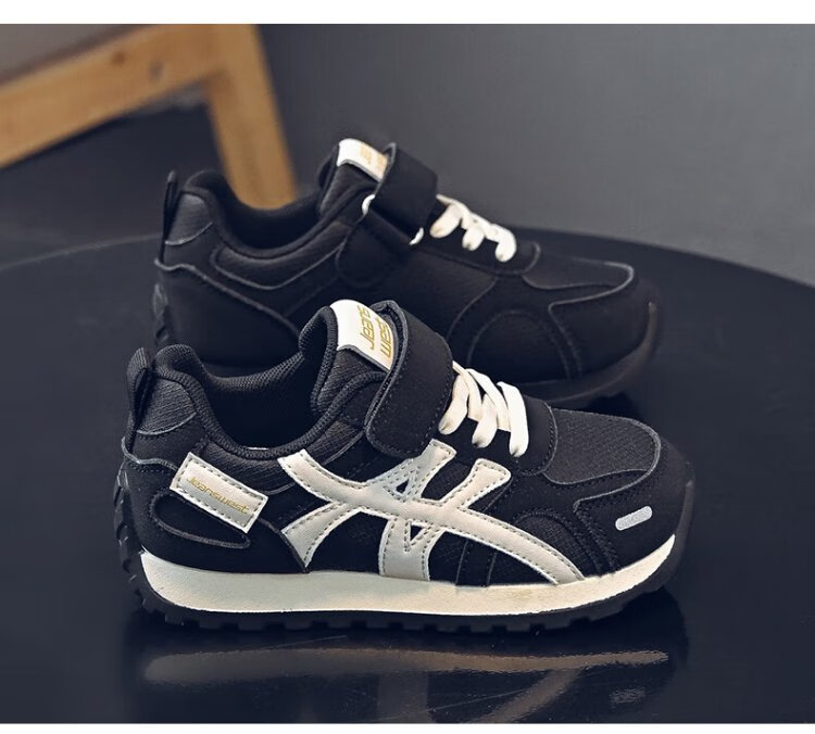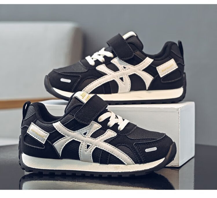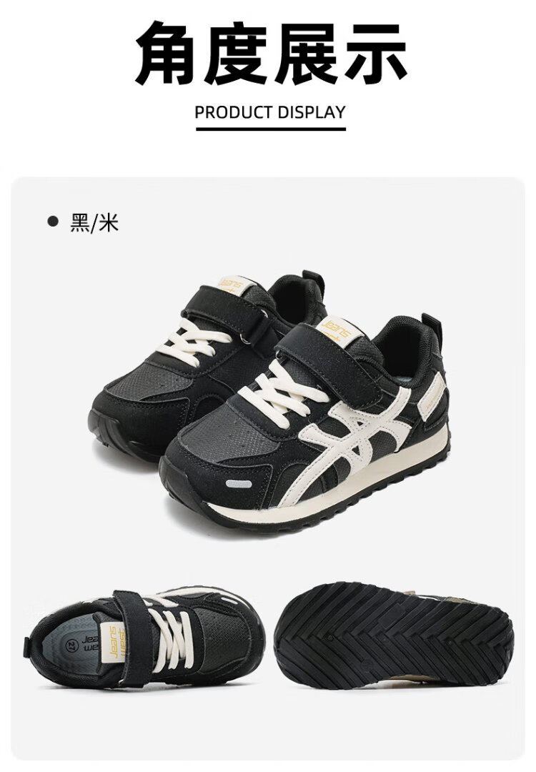 Jeanswest children's shoes, boys' lightweight soft-soled moral training shoes, middle and large children's campus fashion sports casual shoes C1A012 black/meter 34