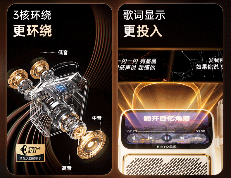 Jinyun First Release丨U Disk Version Lyrics Speaker Karaoke Microphone Speaker All-in-One Microphone Audio All-in-One Family KTV Set Singing Artifact Bluetooth Audio Gift K800