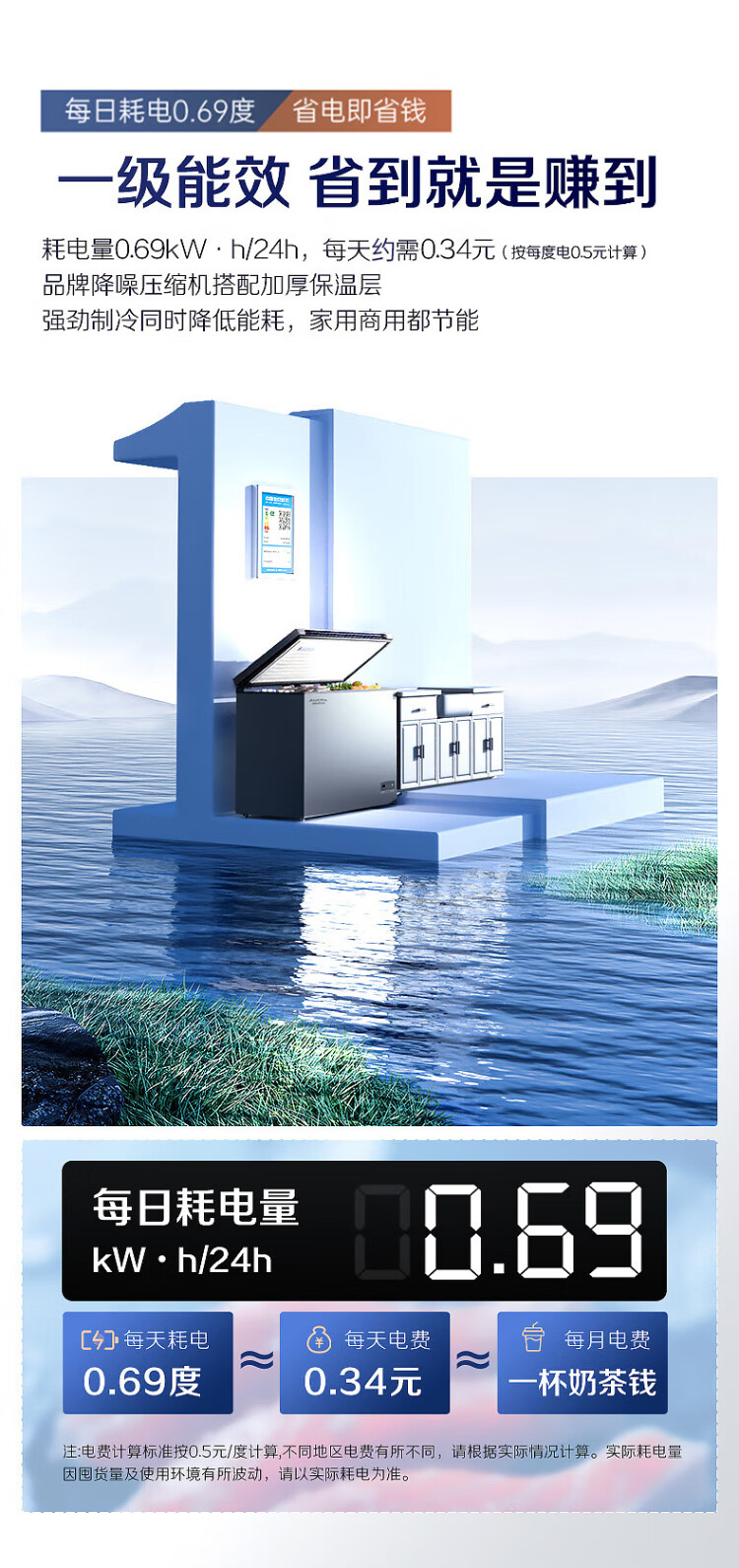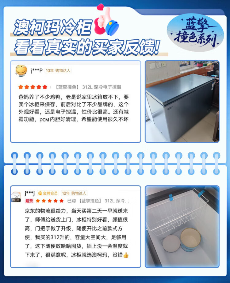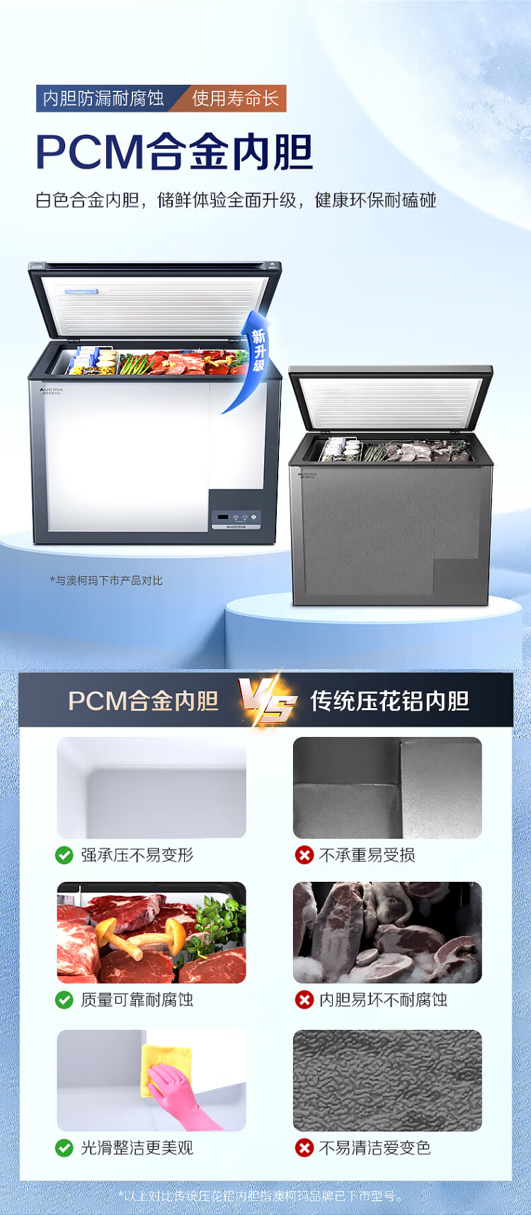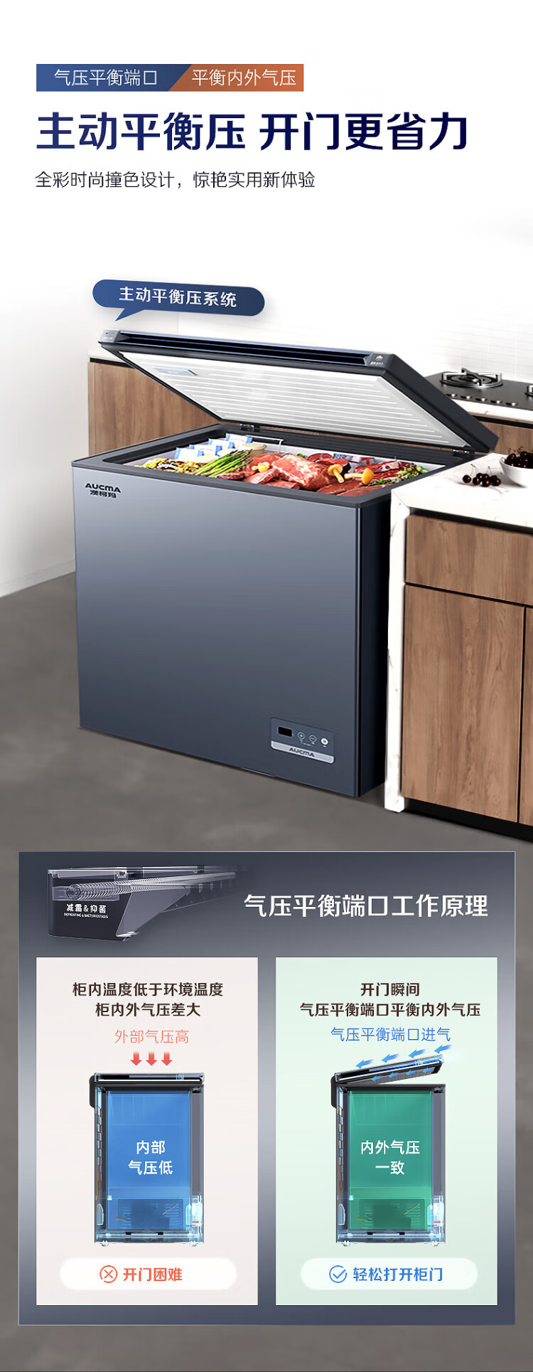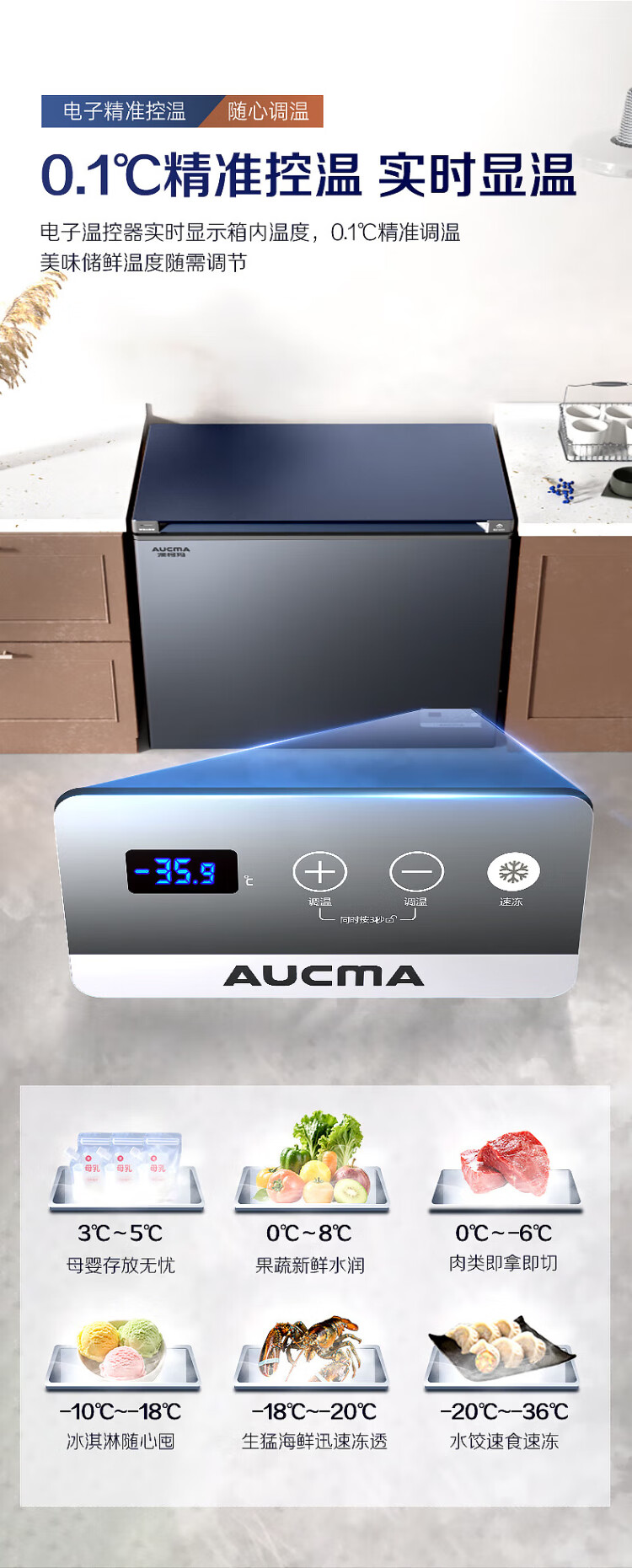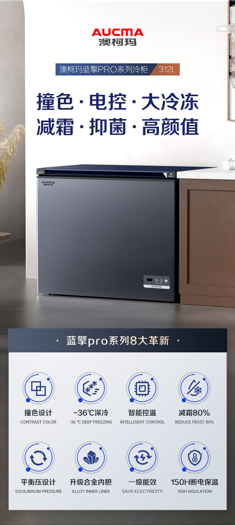 AUCMA 312-liter household frost-reducing freezer, large-capacity commercial refrigerator-freezer, ultra-low temperature electronically controlled horizontal refrigerator, first-class energy efficiency, Lanqing series BC/BD-312DHX