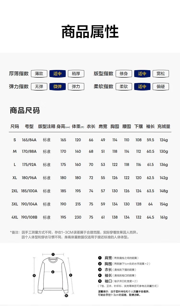 China (cm) 165 / 88-90 170 / 96-98 175 / 108-110 180 / 118-122 185 / 126-130