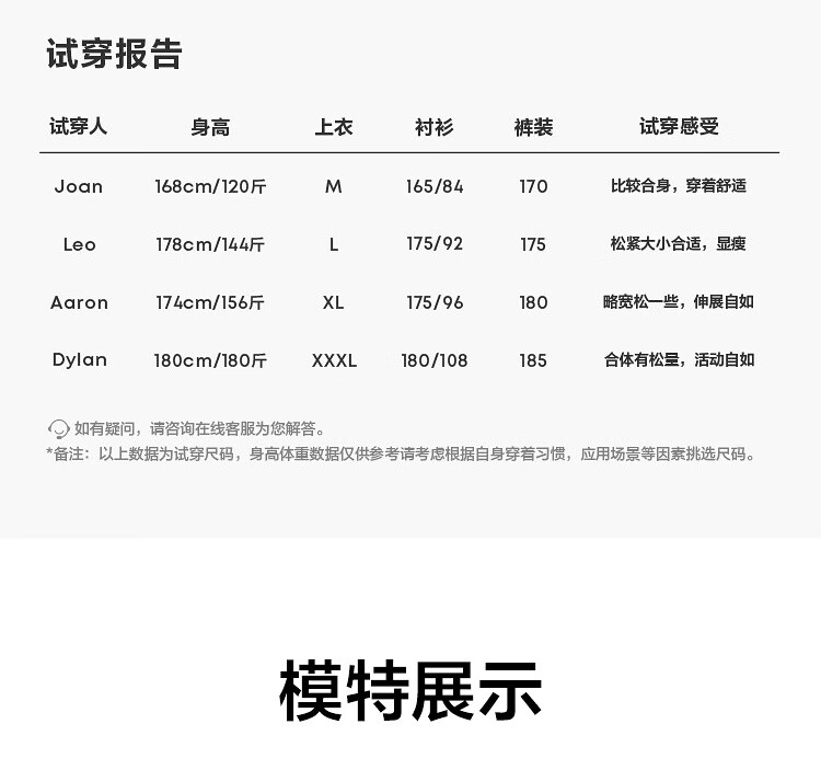 China (cm) 160-165/84-86 165-170 / 88-90 167-172 / 92-96 168-173 / 98-102 170-176 / 106-110