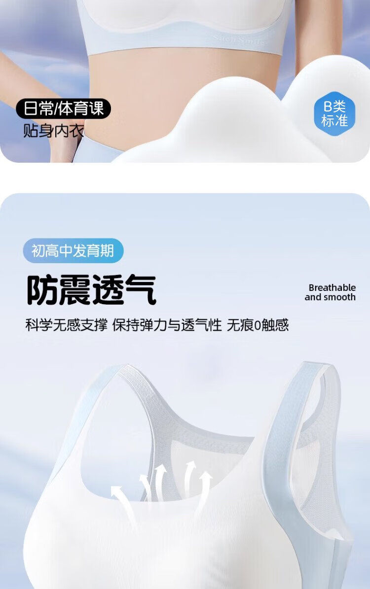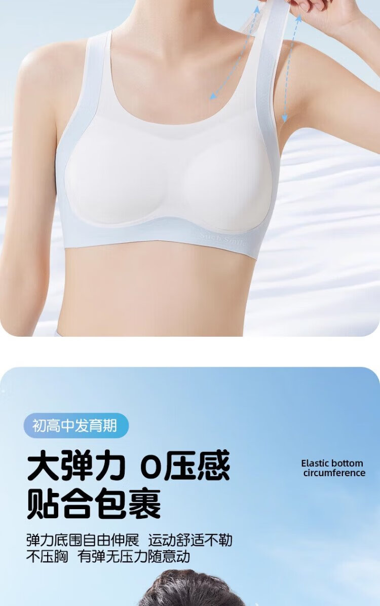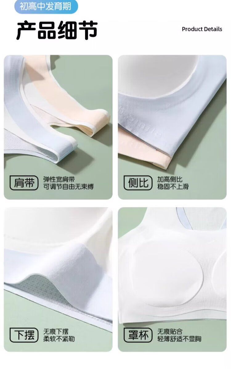 Tingmei (GRACWELL) 2-pack seamless sports bra girls bra puberty early high school students bra 16 girls and older children vest