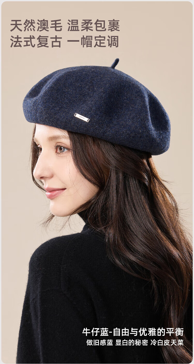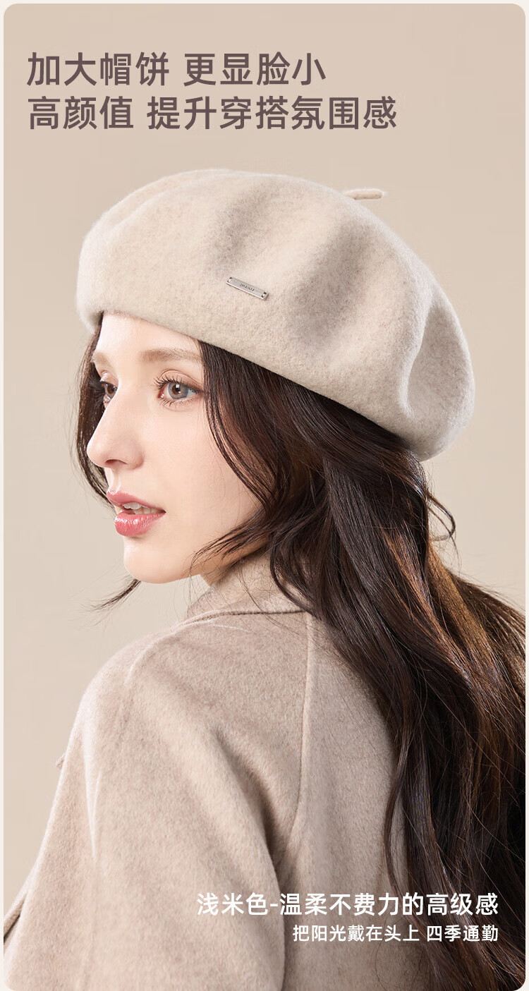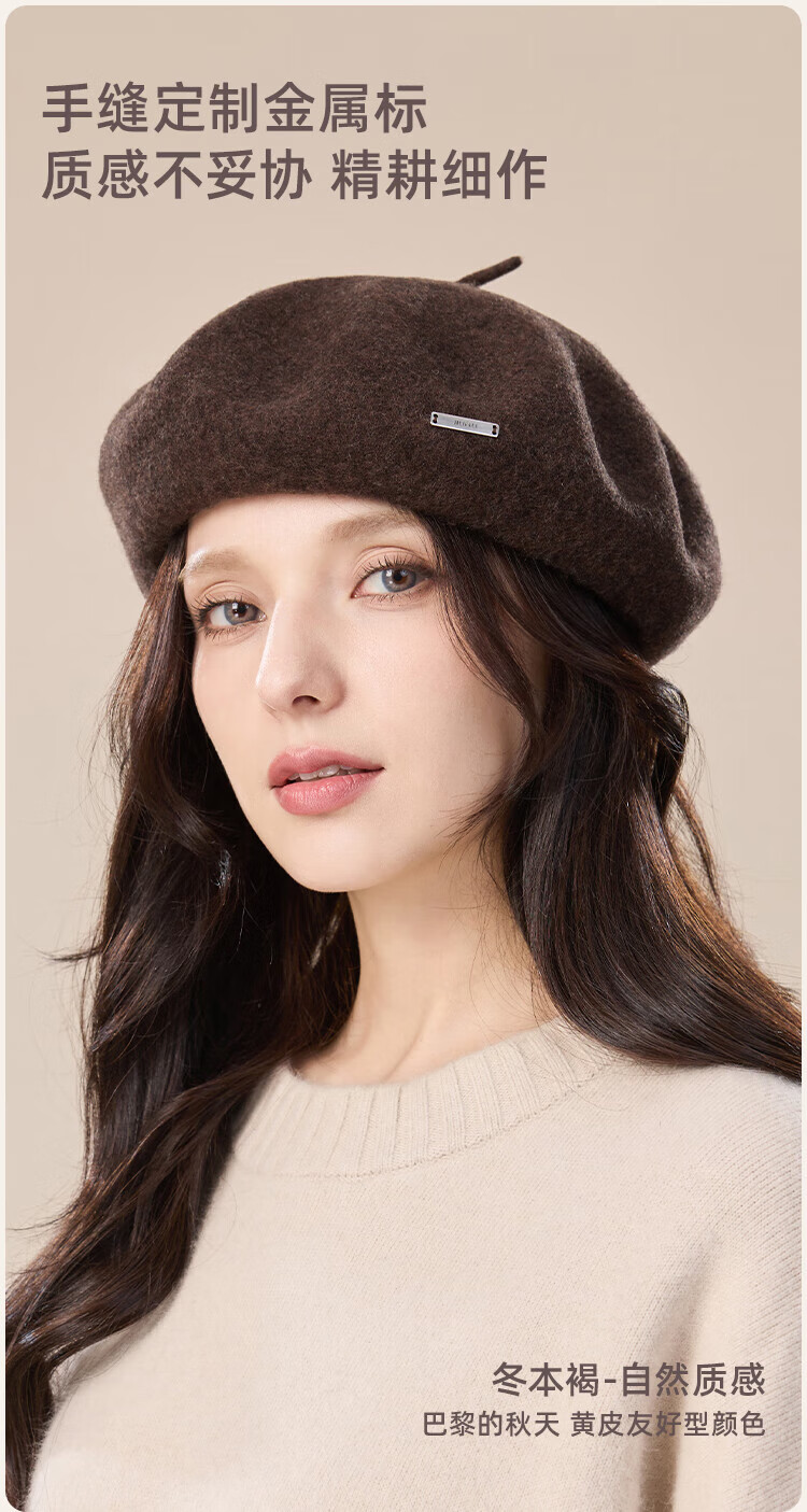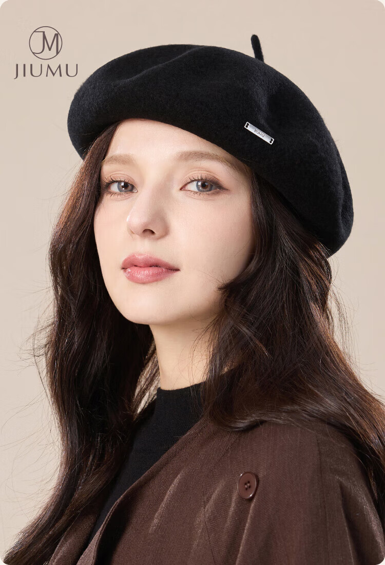 JIUMU pure wool beret autumn and winter warm woolen painter hat Japanese British retro classic versatile hat for women