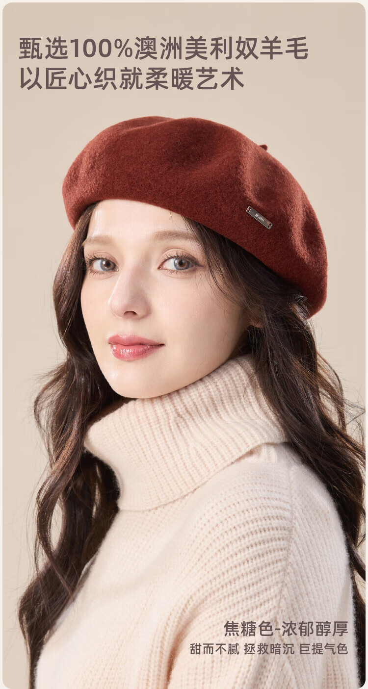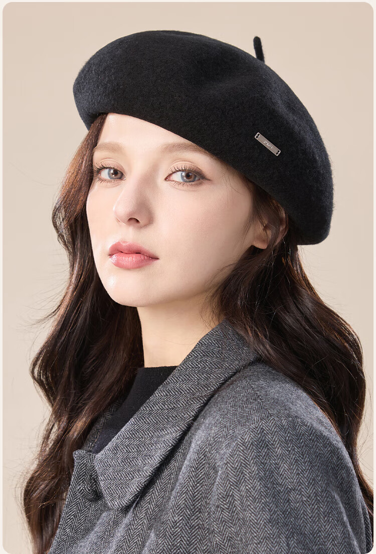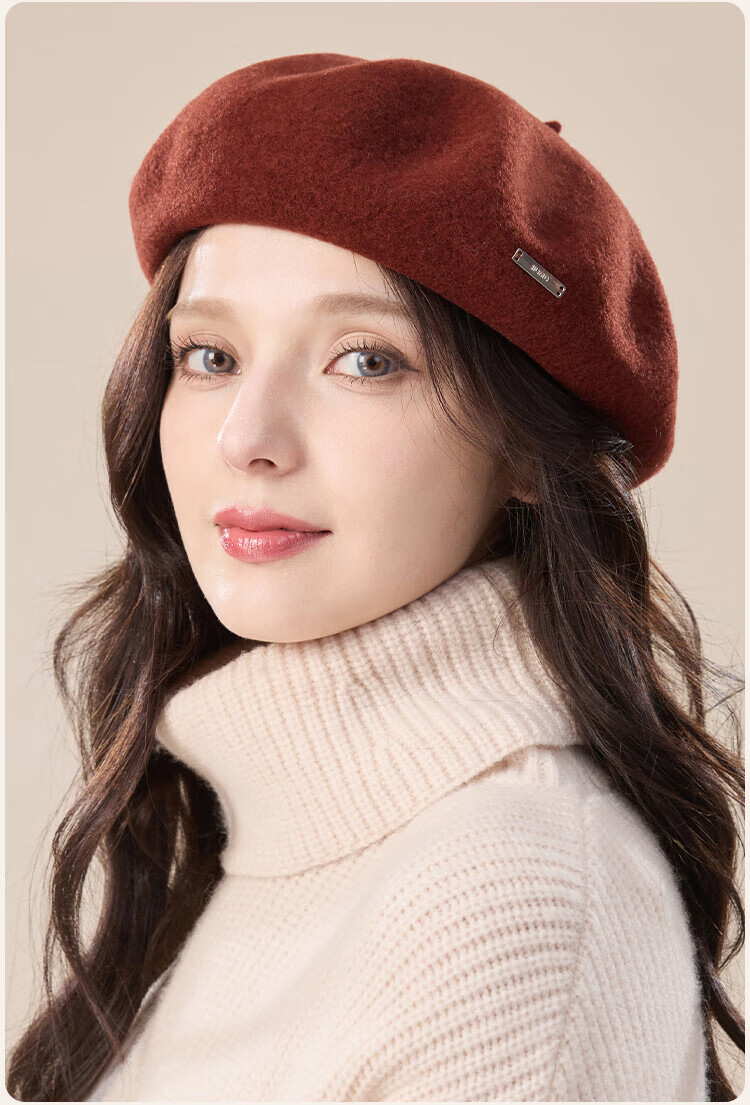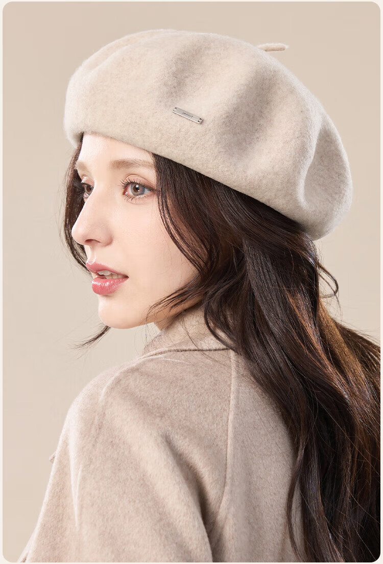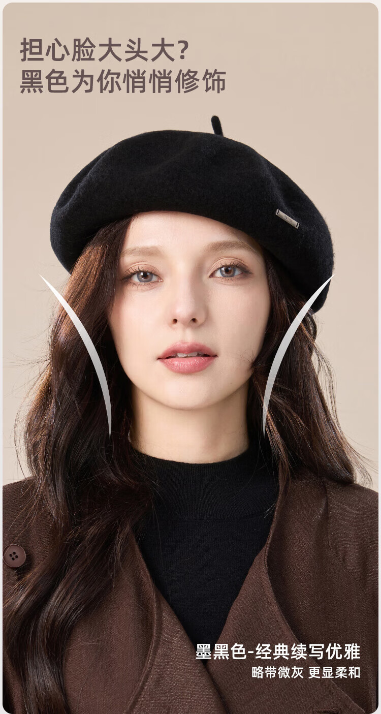 JIUMU pure wool beret autumn and winter warm woolen painter hat Japanese British retro classic versatile hat for women