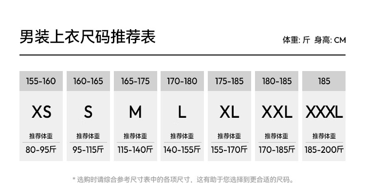China (cm) 165 / 88-90 170 / 96-98 175 / 108-110 180 / 118-122 185 / 126-130