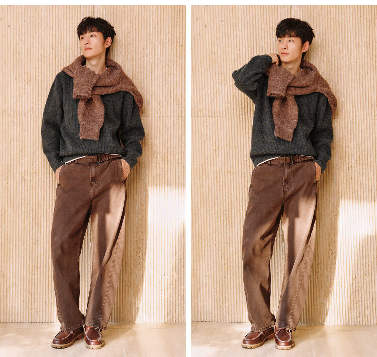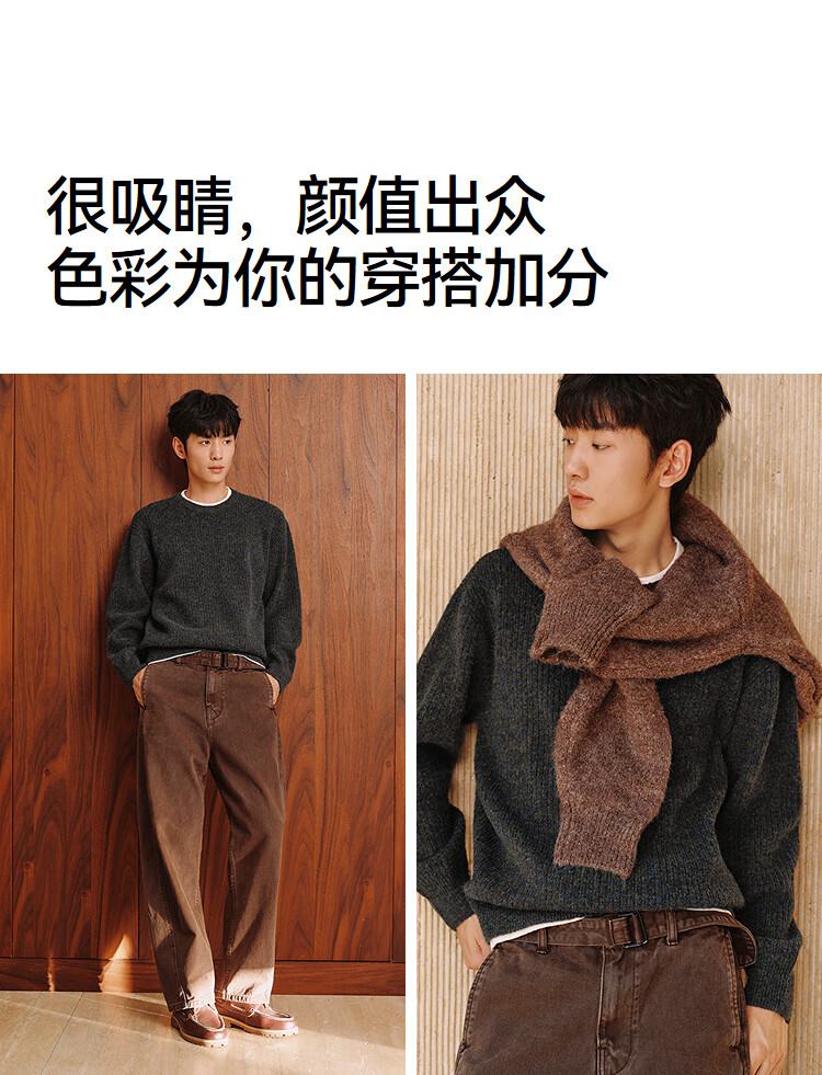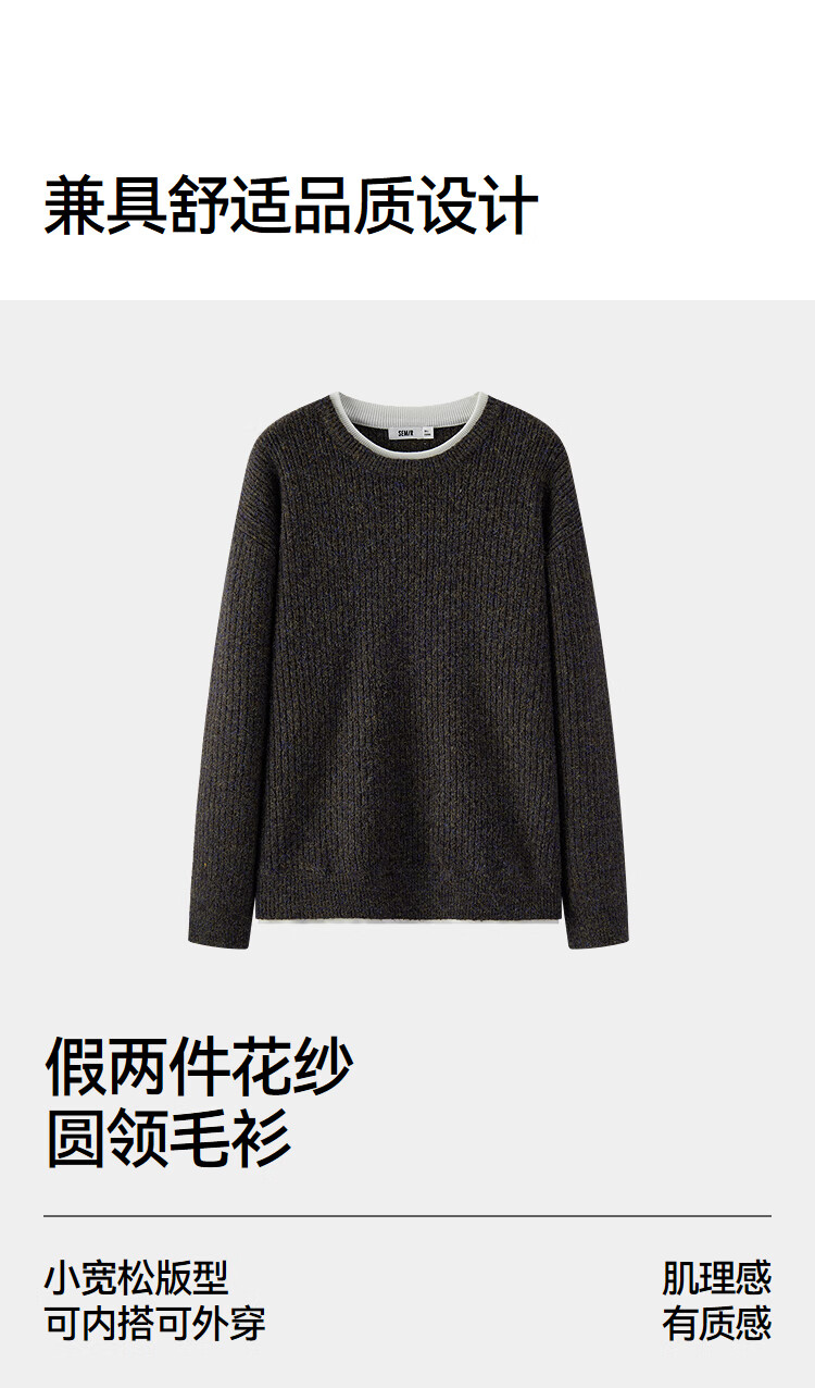 Semir sweater men's winter vacation two-piece knitted sweater base layer 2025 floral yarn sweater round neck sweater 10A725107102