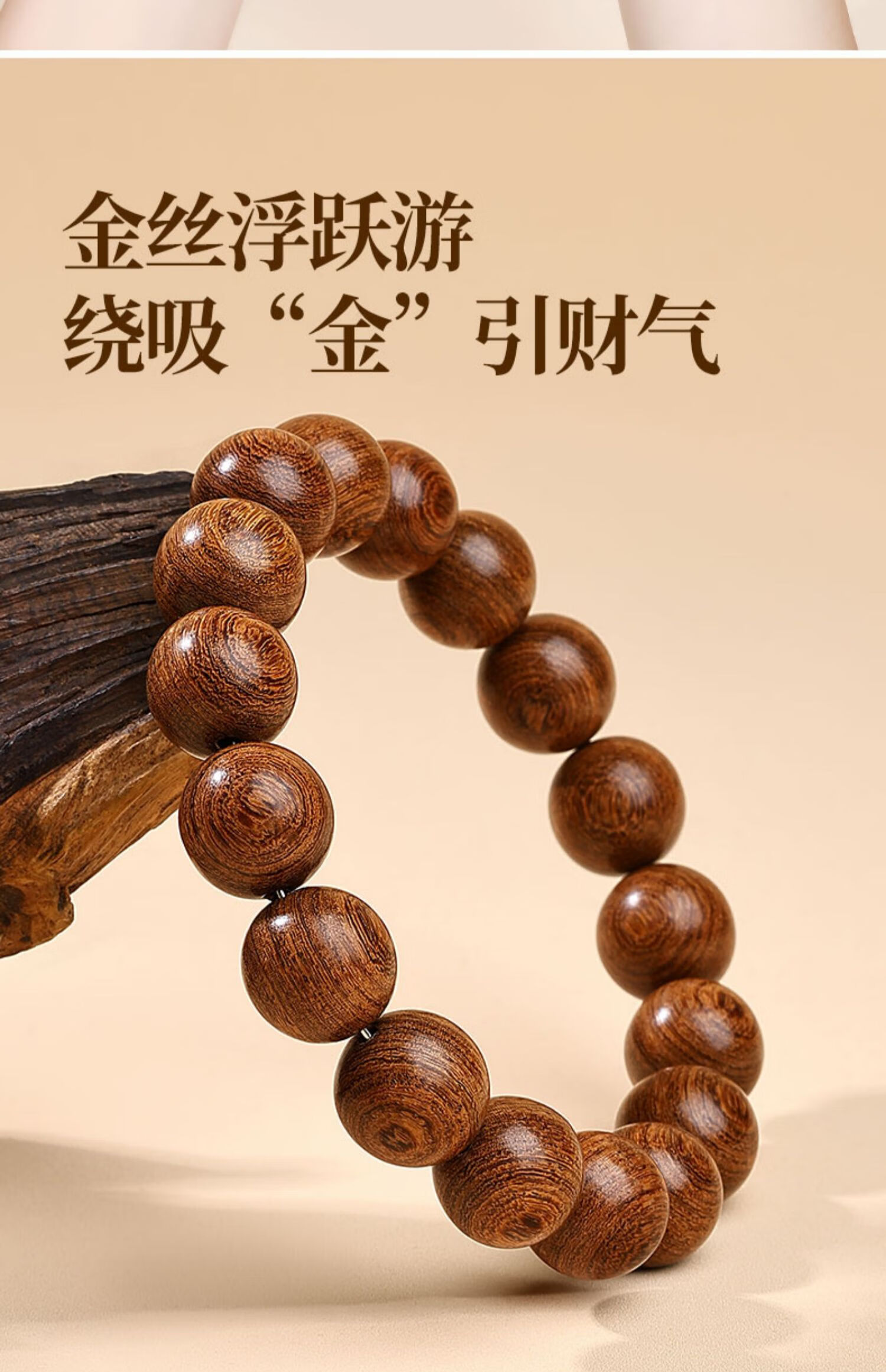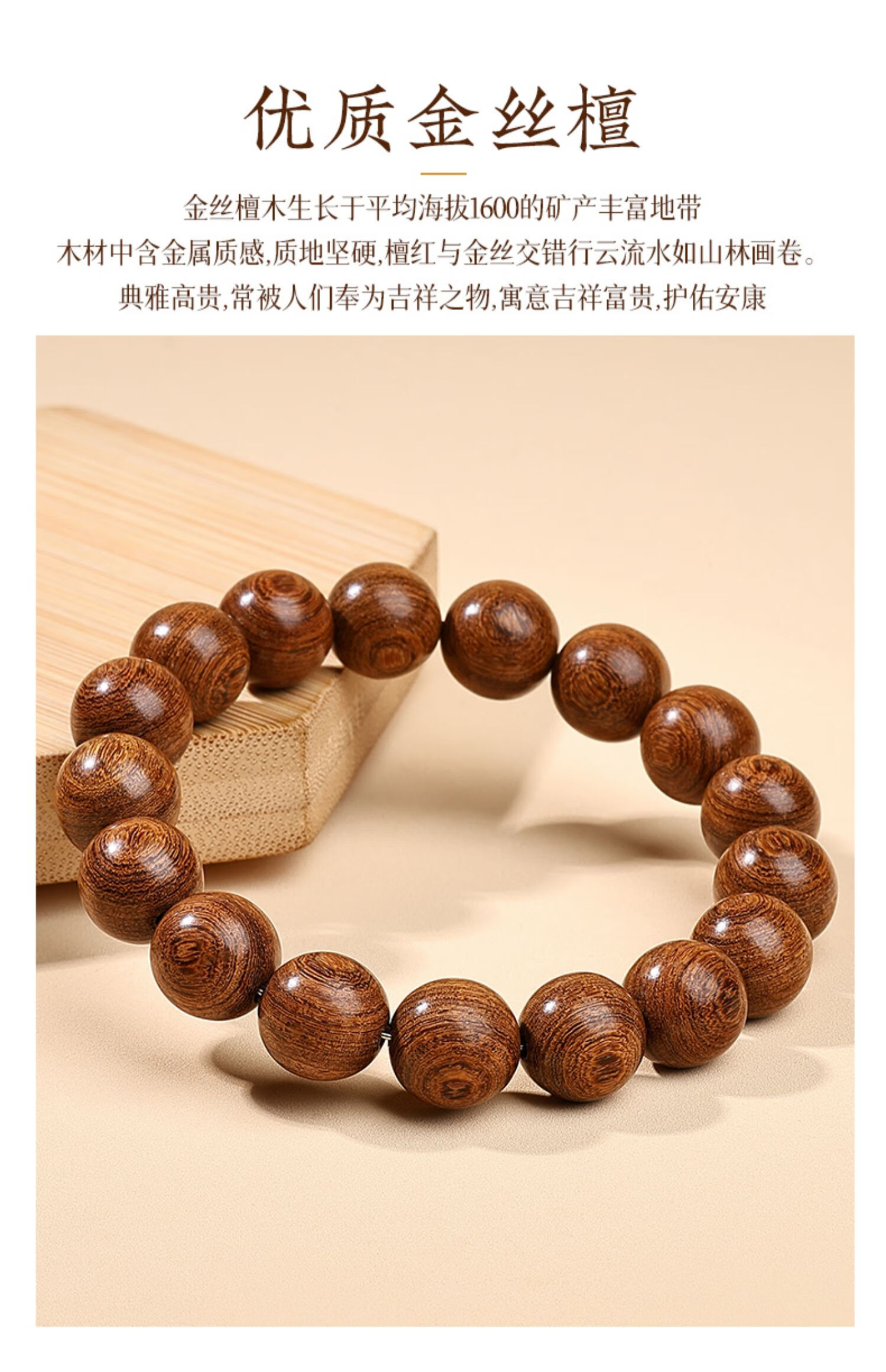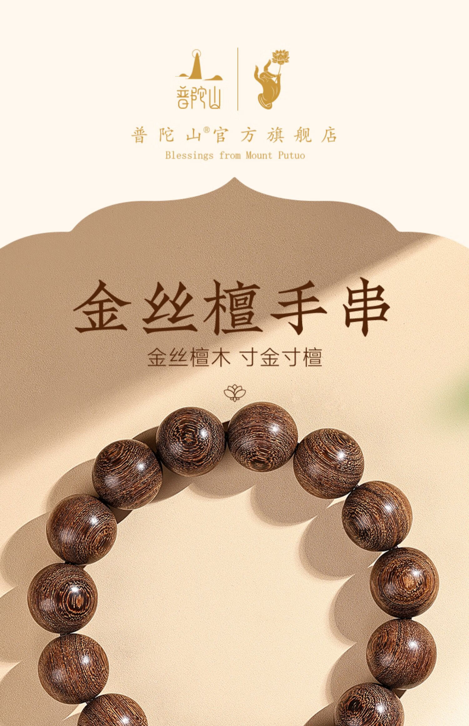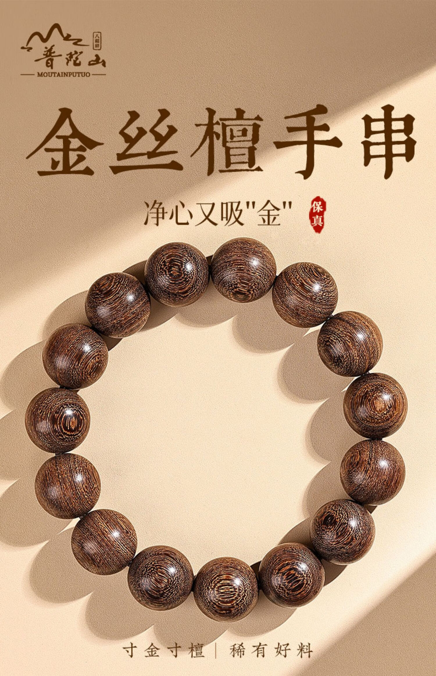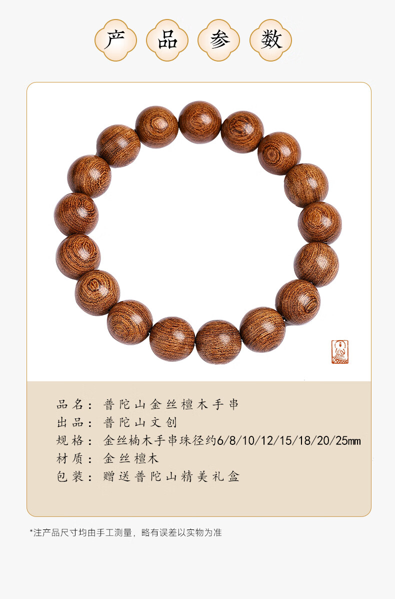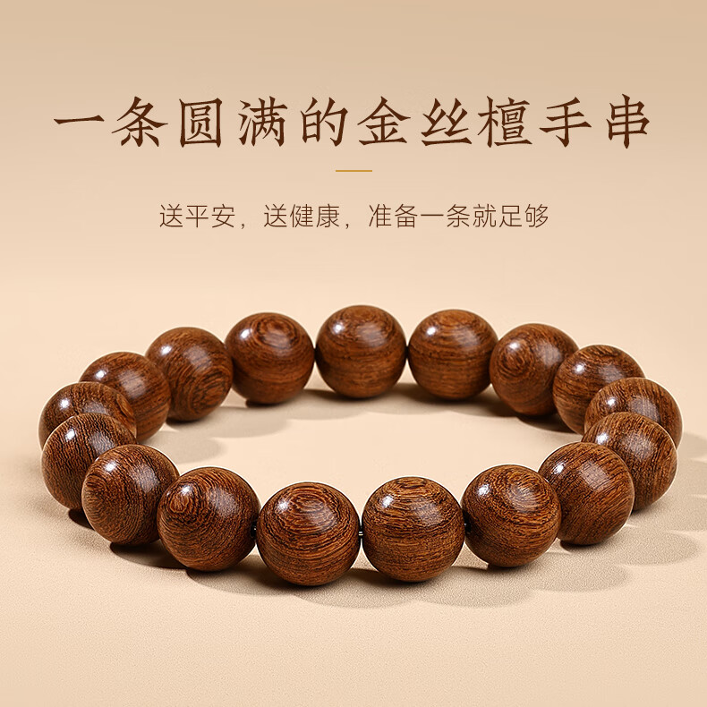 Putuo Mountain Golden Sandalwood Bracelet Men's Wooden Bracelet Buddha Beads Sandalwood Tray Play Men's Couple Birthday Gift 12mm