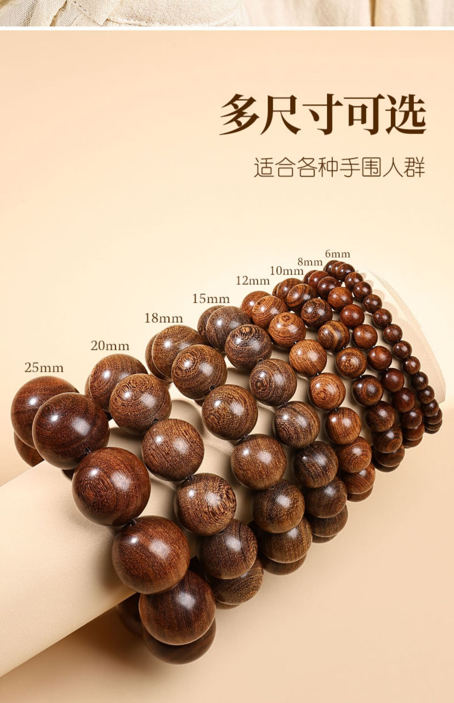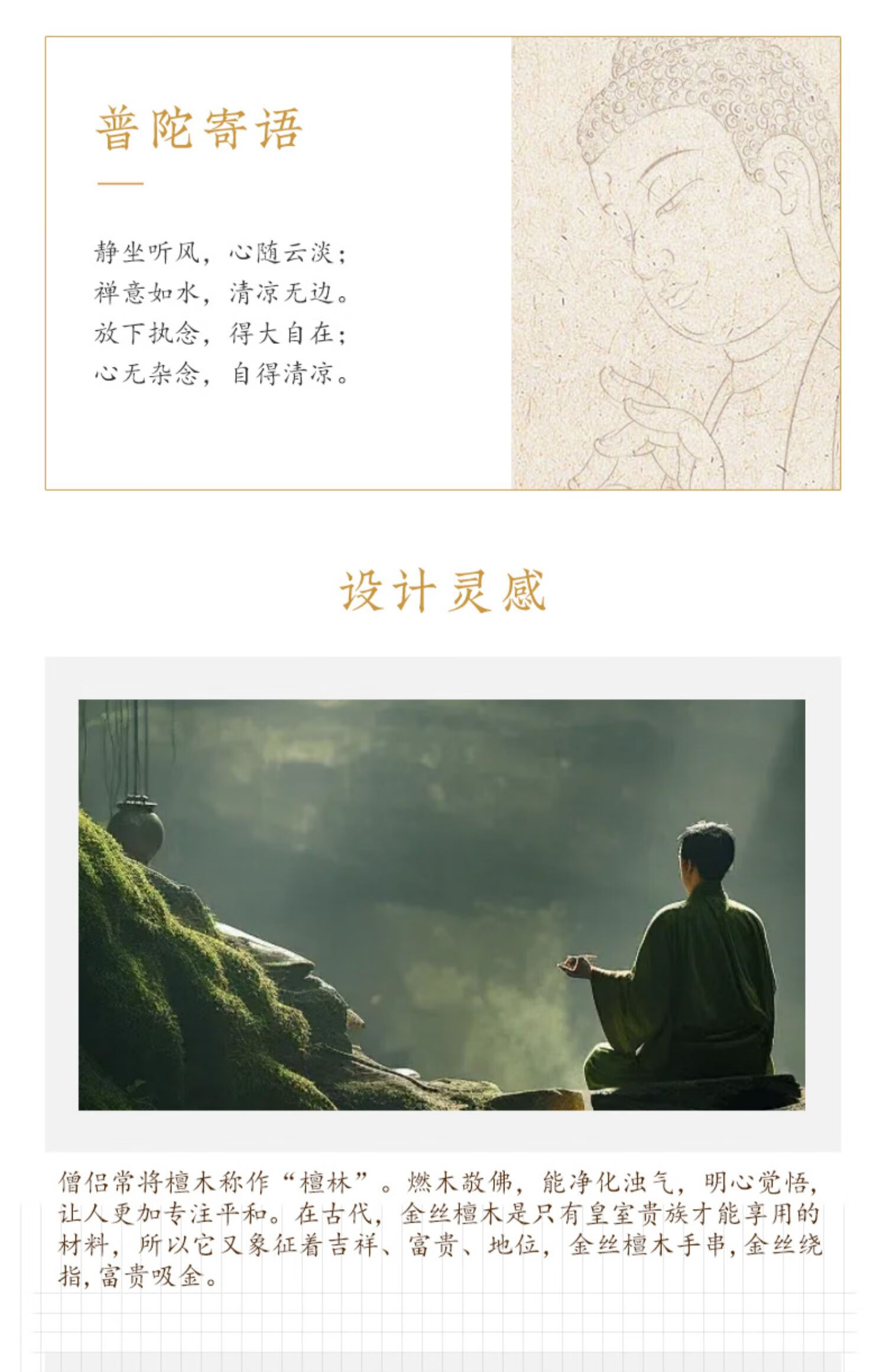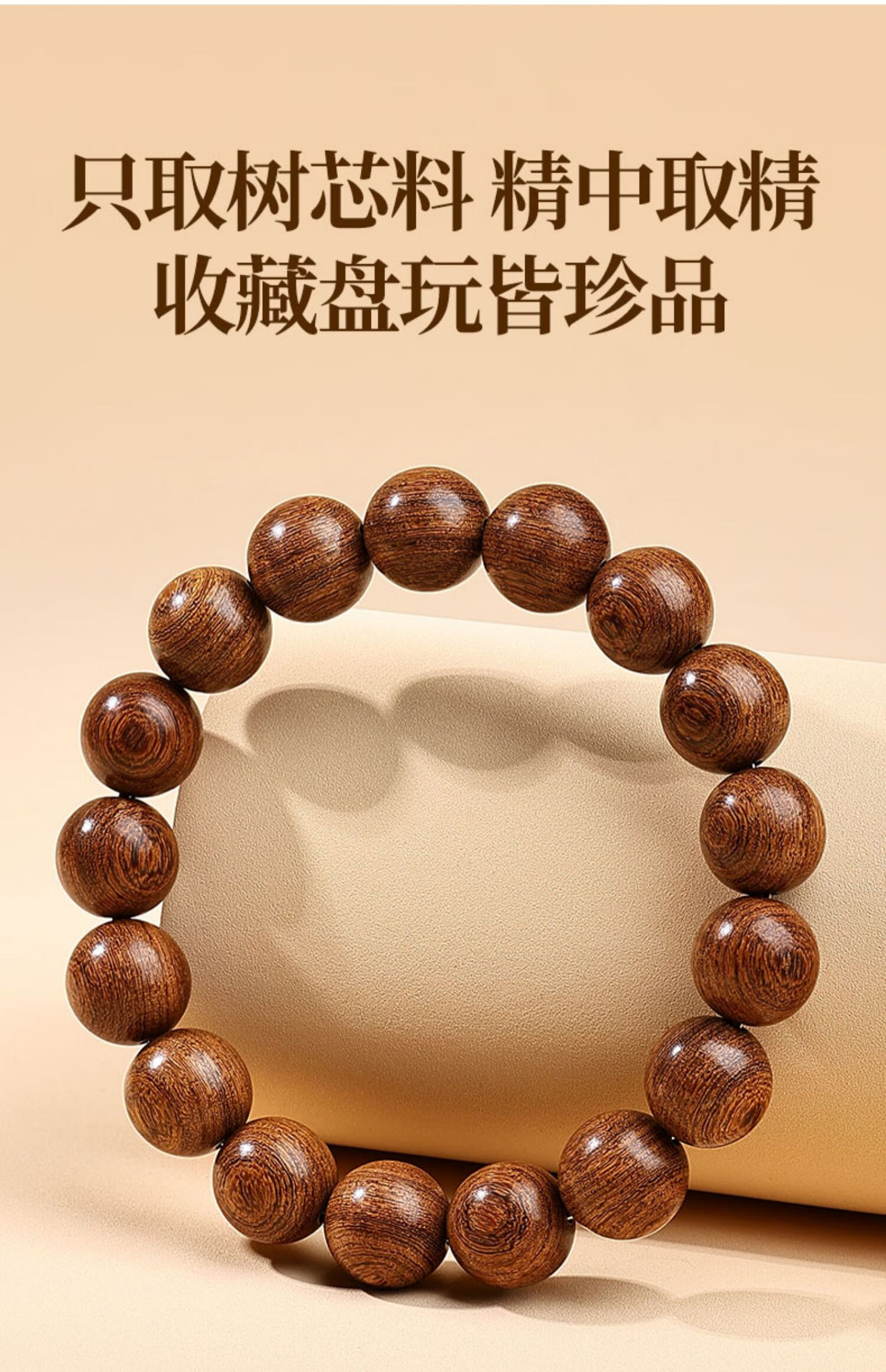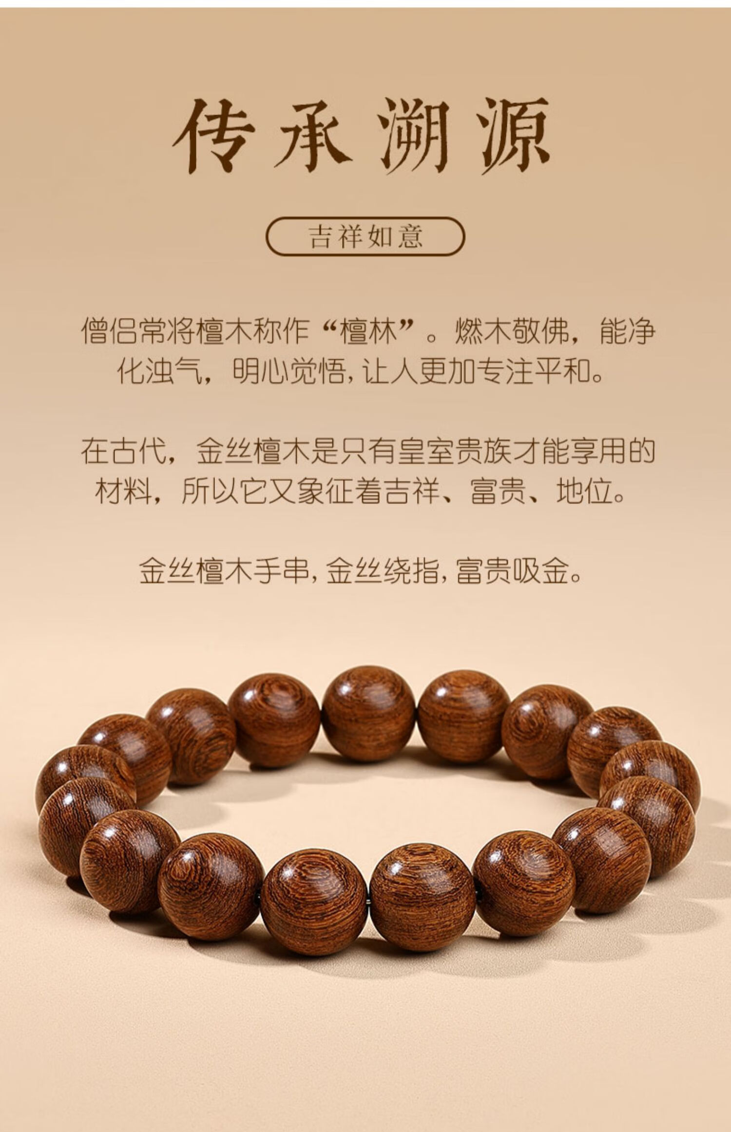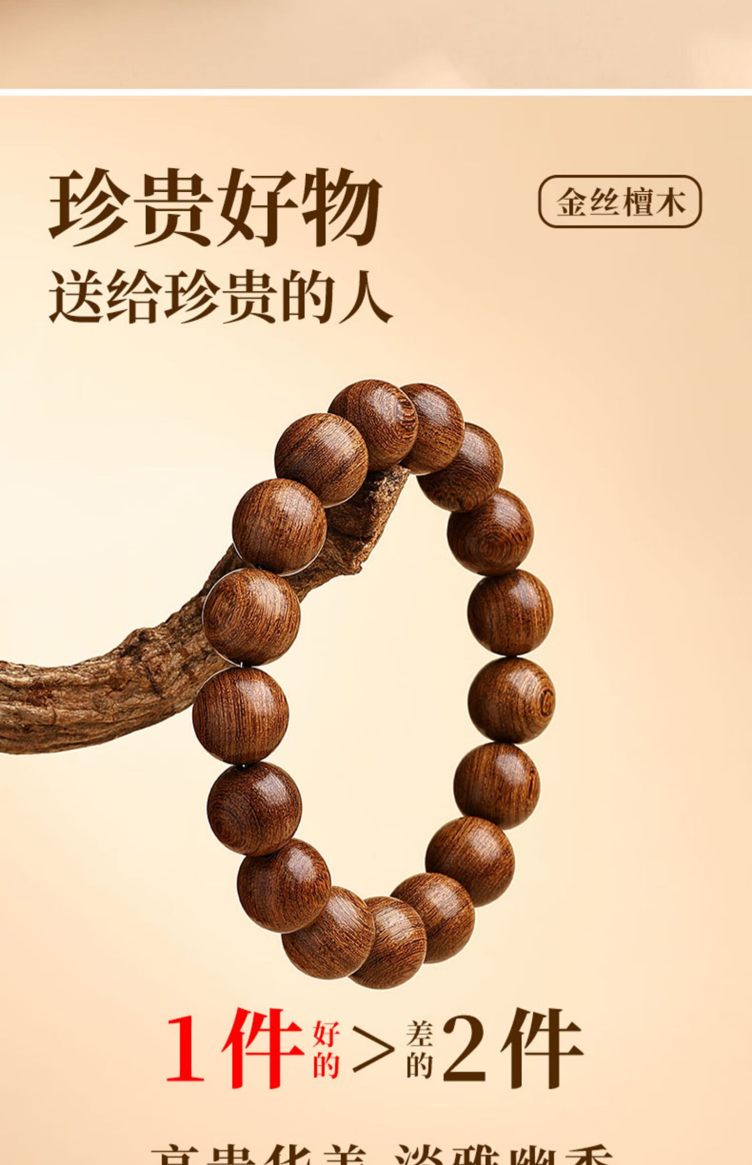 Putuo Mountain Golden Sandalwood Bracelet Men's Wooden Bracelet Buddha Beads Sandalwood Tray Play Men's Couple Birthday Gift 12mm
