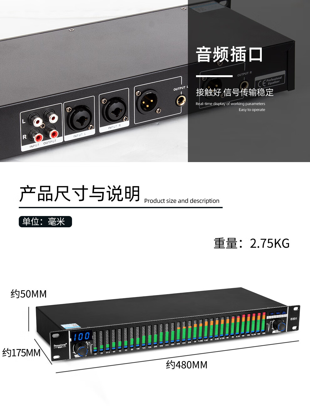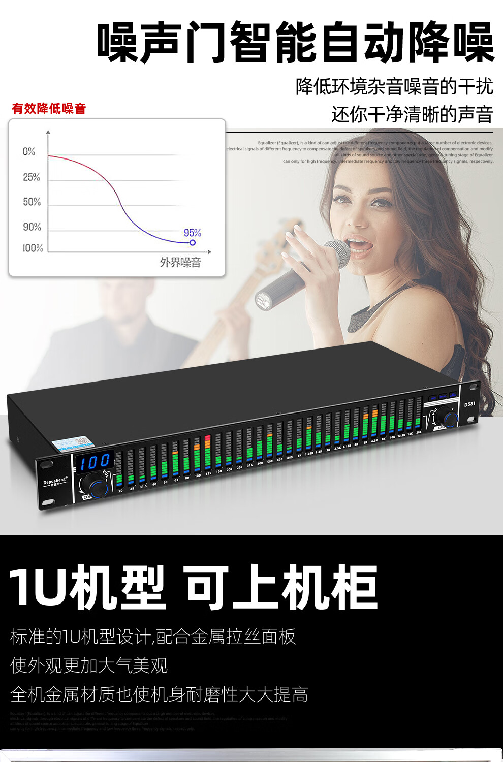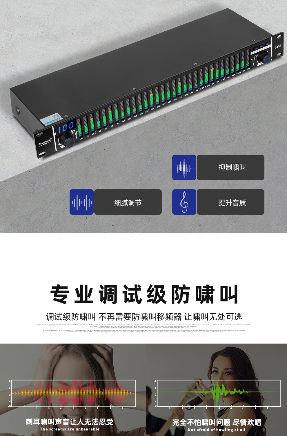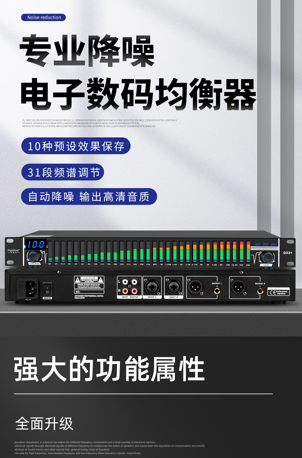 Depusheng D331 digital equalizer, noise reduction, audio processing, home KTV effector, anti-howling electronic spectrum limiter, storable mode, D331 digital equalizer (black)
