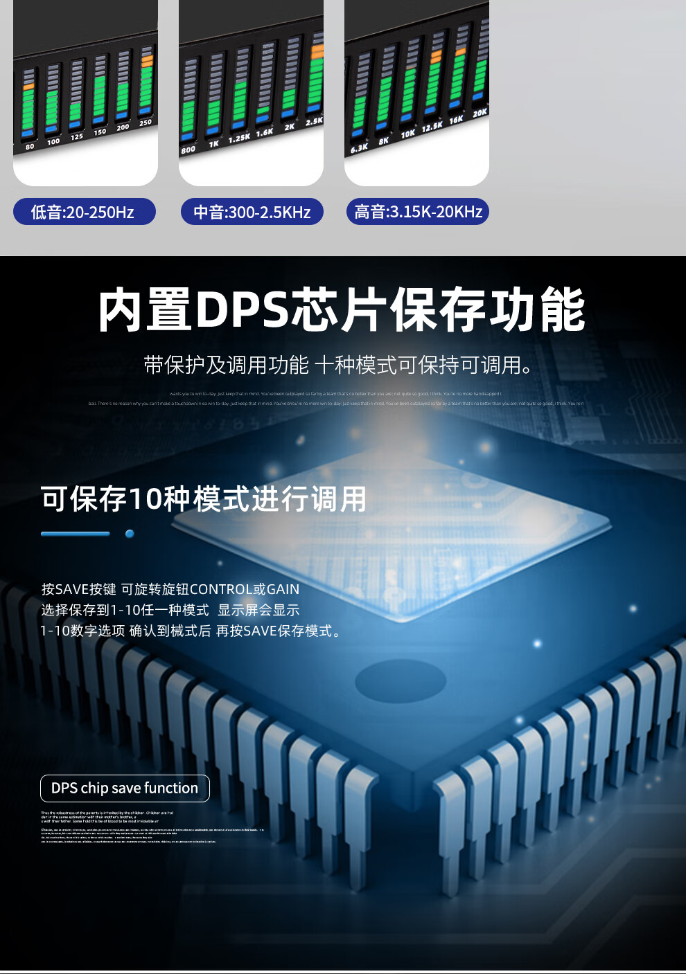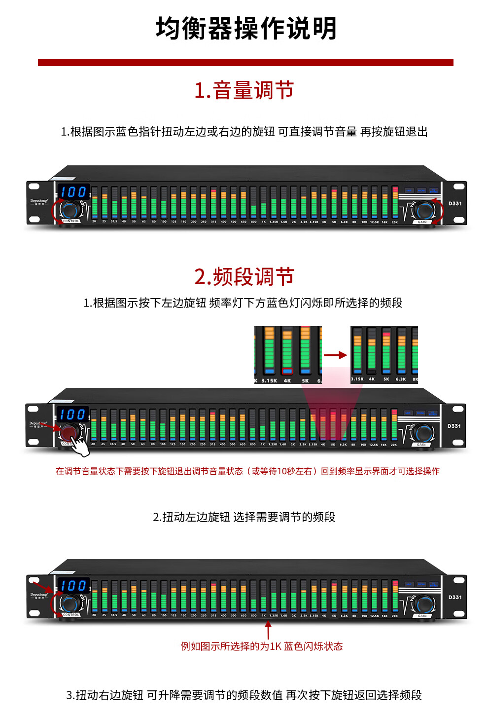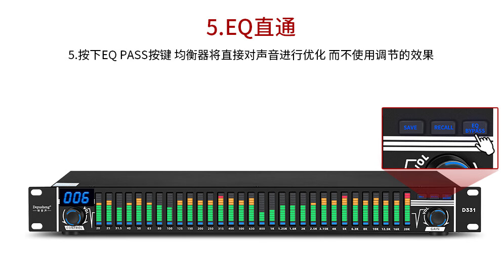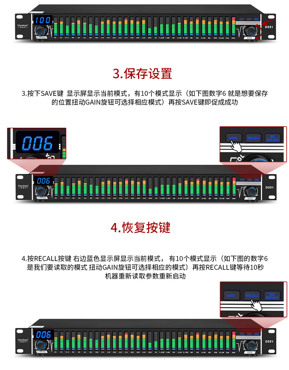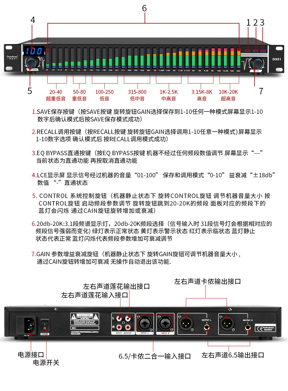 Depusheng D331 digital equalizer, noise reduction, audio processing, home KTV effector, anti-howling electronic spectrum limiter, storable mode, D331 digital equalizer (black)