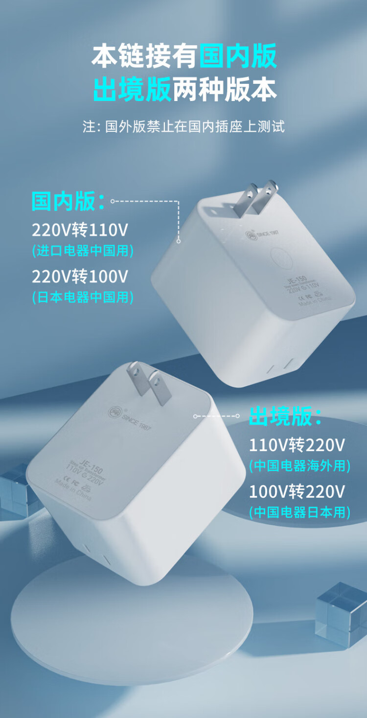 Shun 150VA pure copper coil transformer 220V to 100V small portable power voltage converter wireless with switch Japanese electrical appliances transformer socket JDZY-E1503