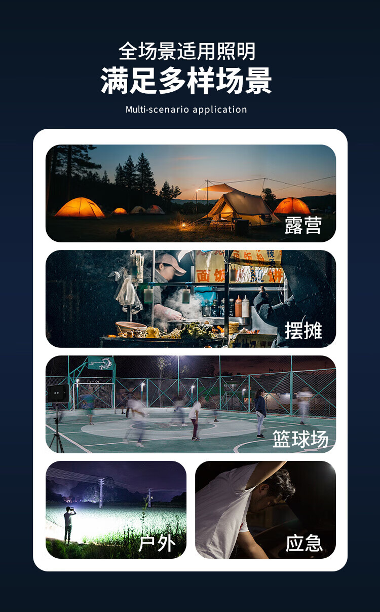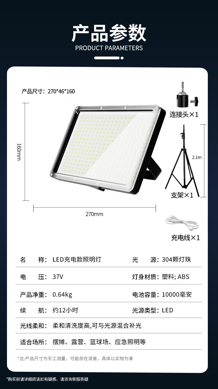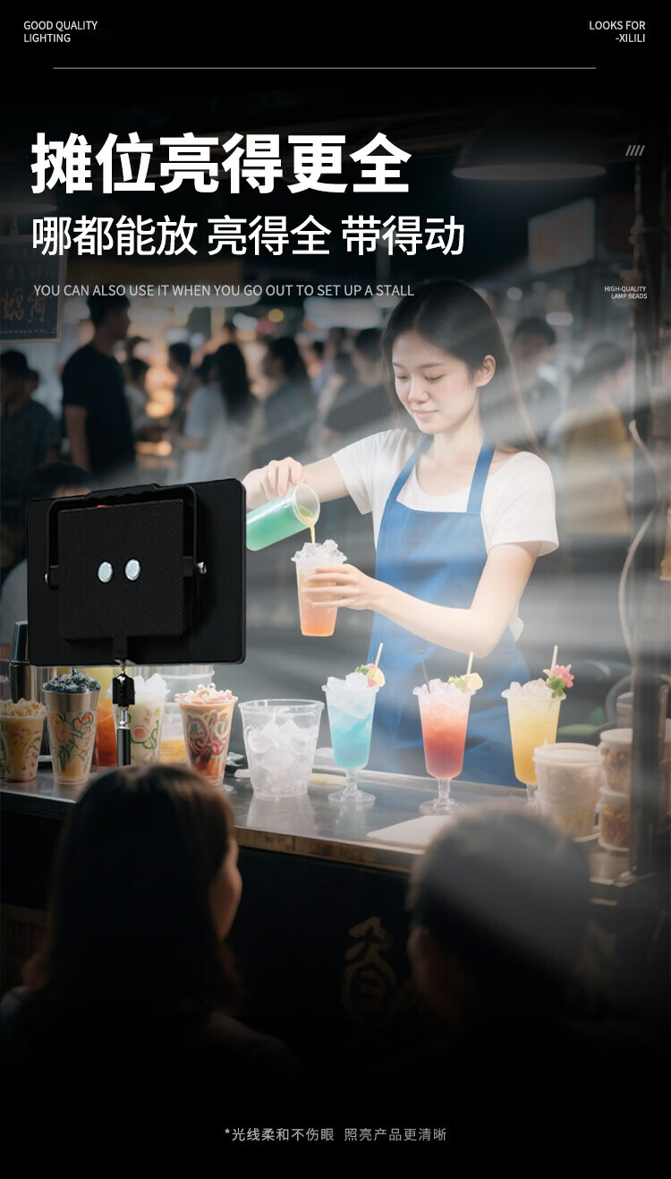 Xirili night market lamp, street stall lamp, rechargeable stall lamp, outdoor lighting, camping lamp, floodlight emergency lamp, 12h battery life + bracket
