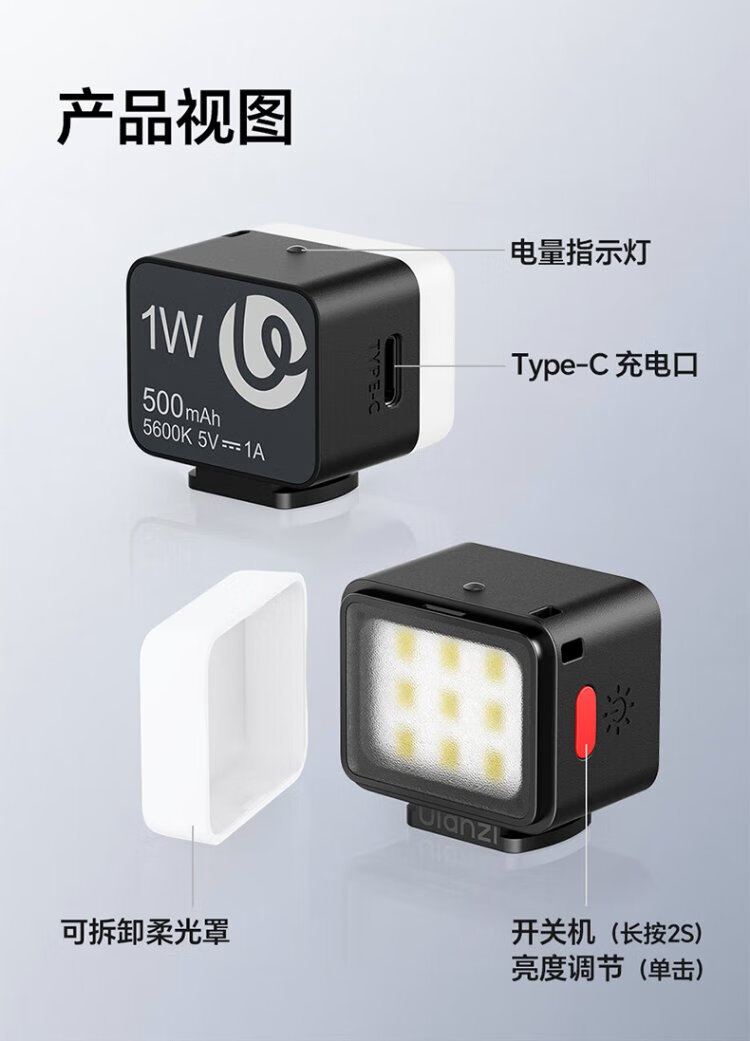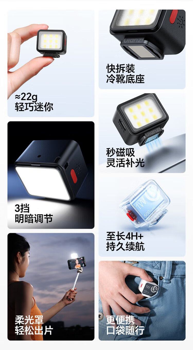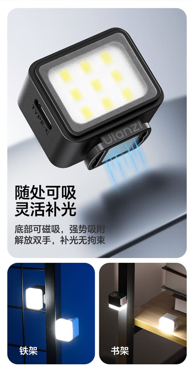 Ulanzi excellent basket DG01 small cold shoe light camera fill light small photo light pocket mini magnetic light iPhone16 light action5pro/4 photography soft light