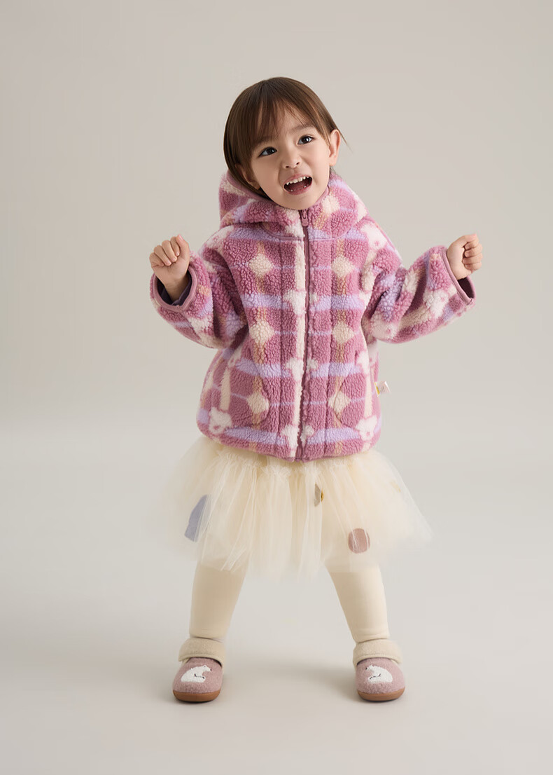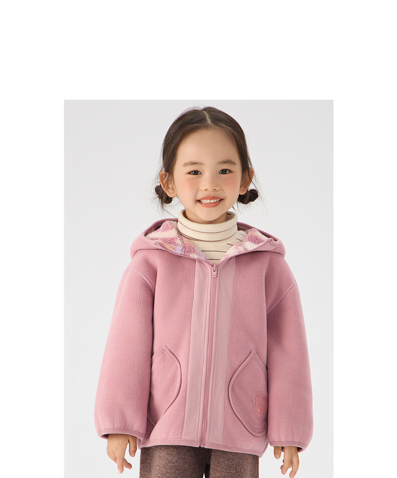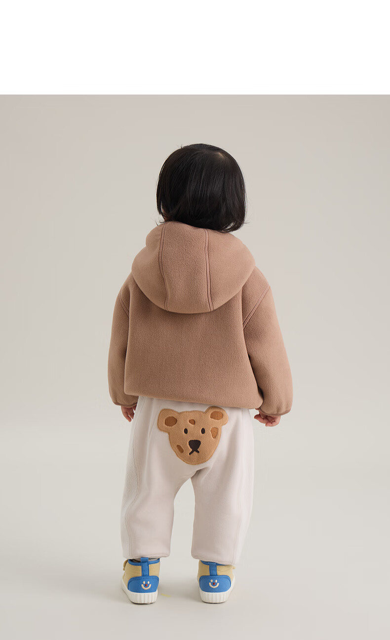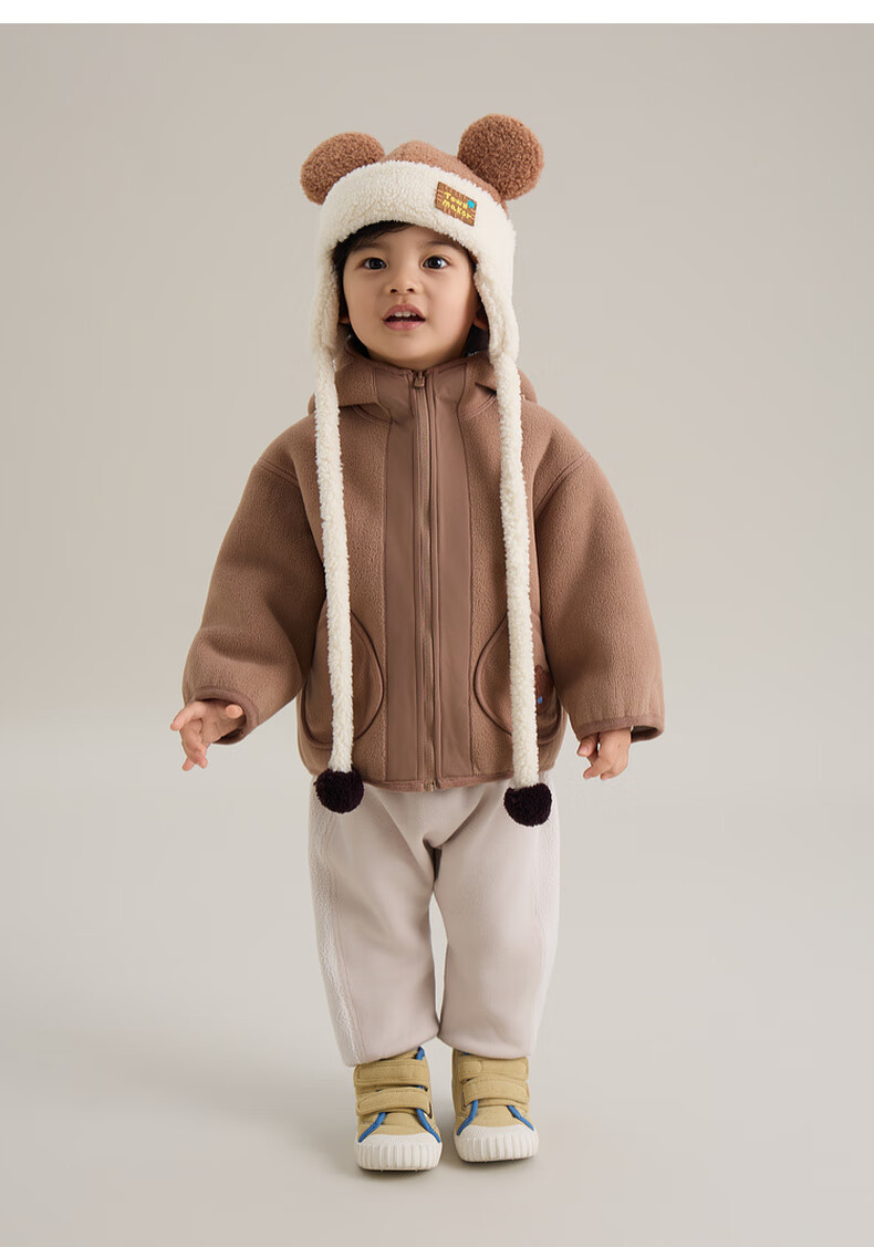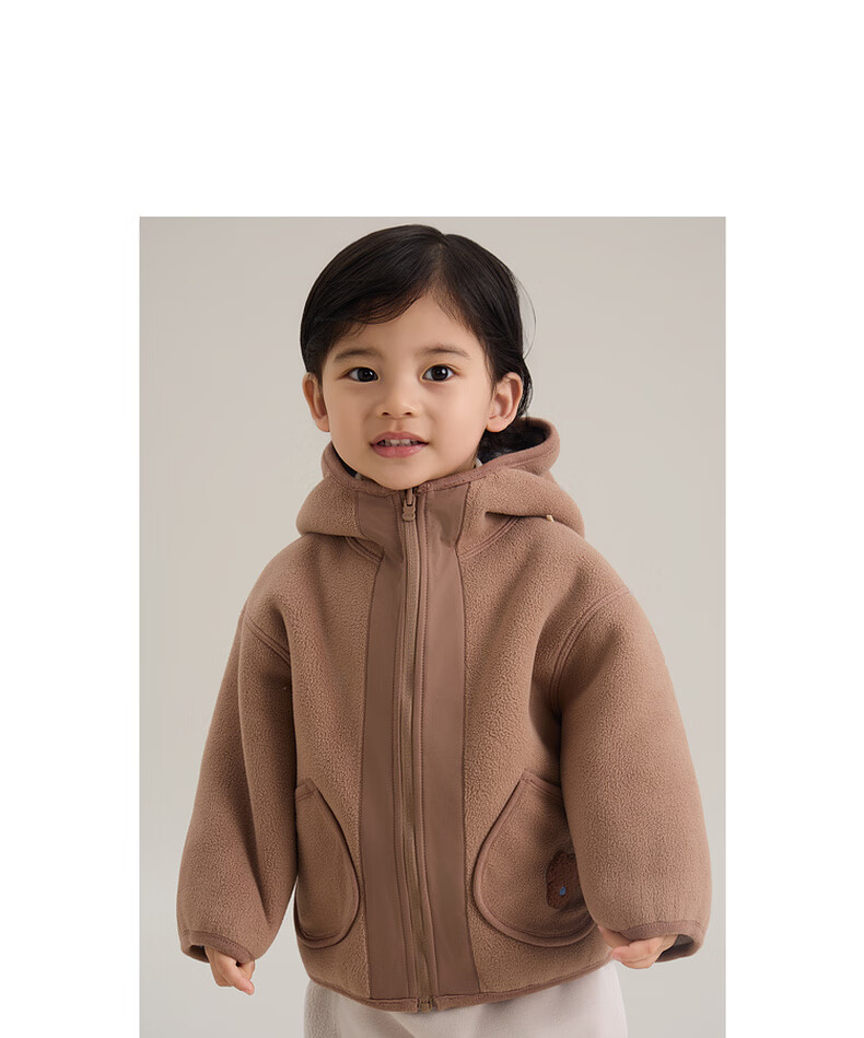 Papa crawling autumn and winter new polar fleece double-sided jacket hooded boys and girls versatile for going out brown 130