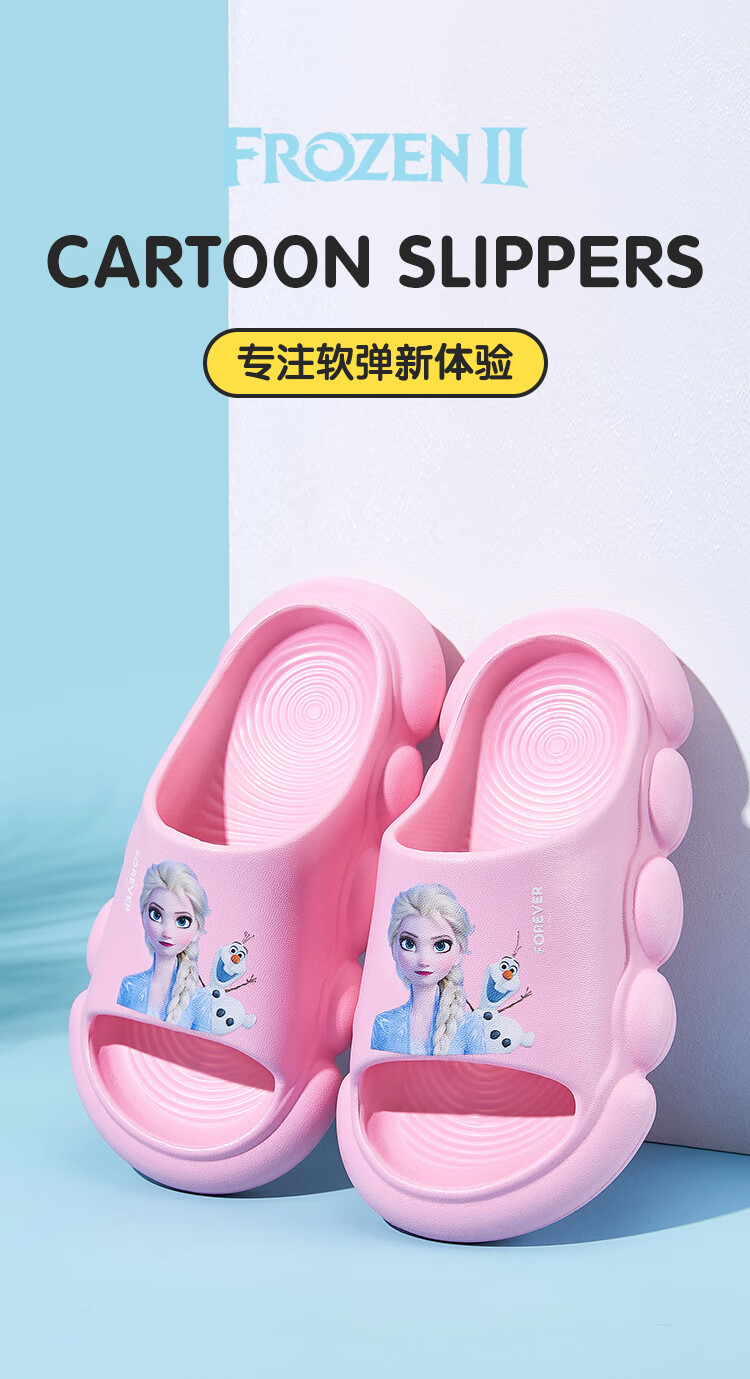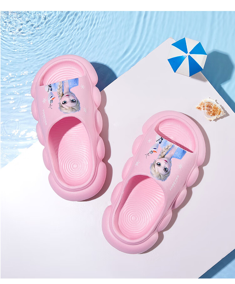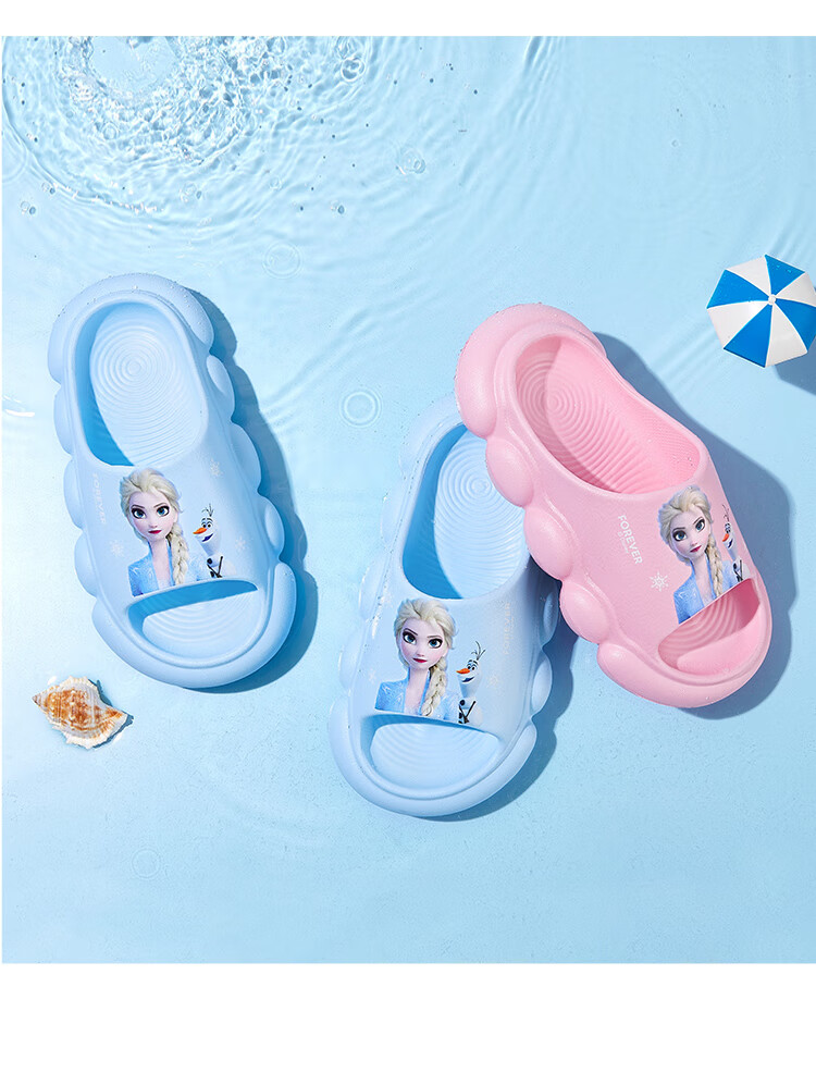 Disney Children's Shoes Summer Bathroom Sandals Girls Princess Elsa Outdoor Non-Slip Flop F1361 Orange Pink