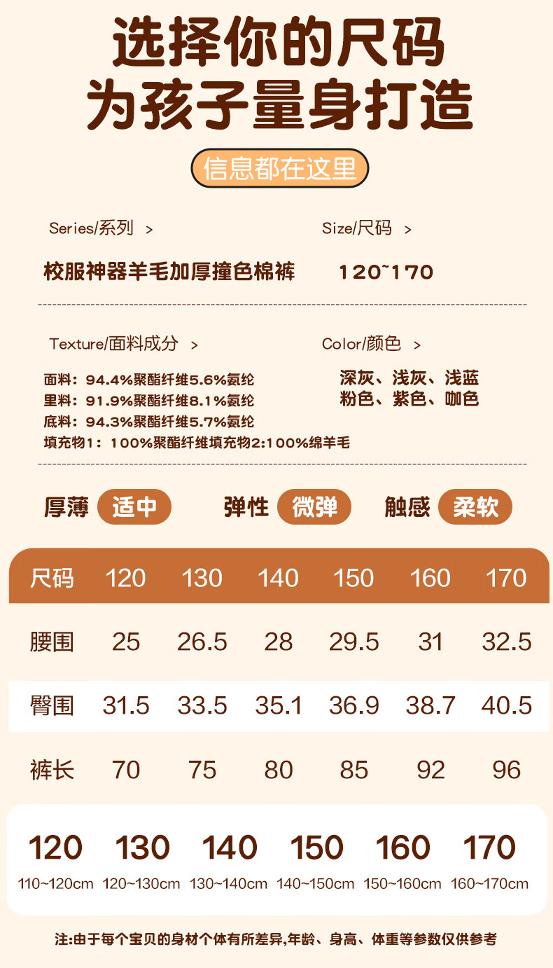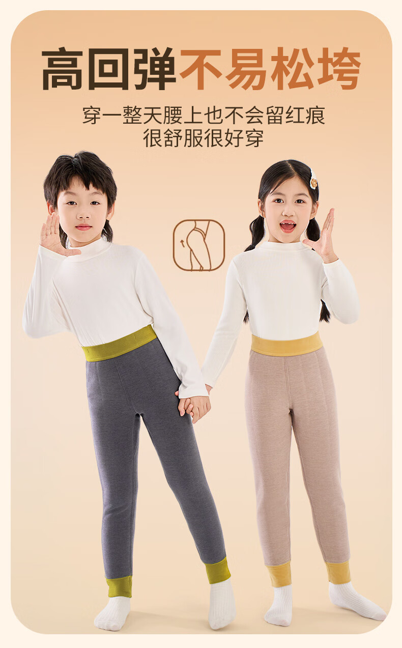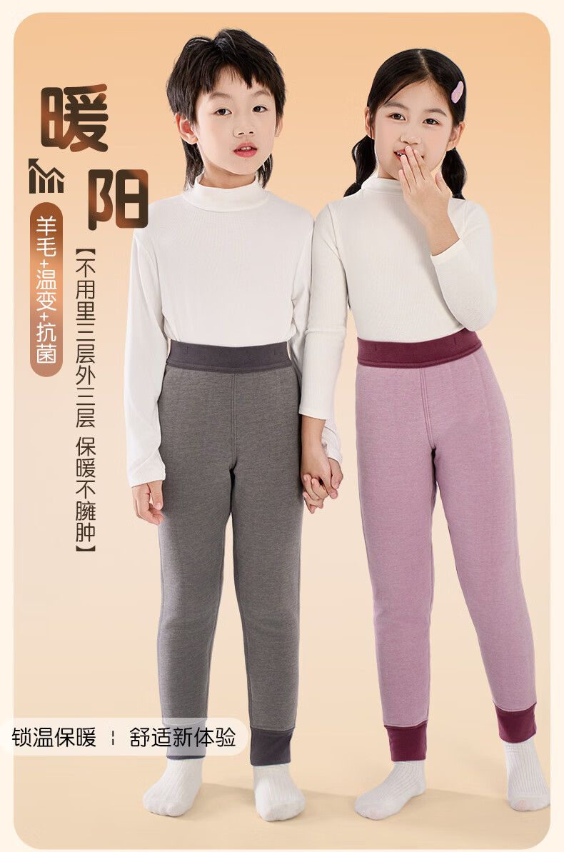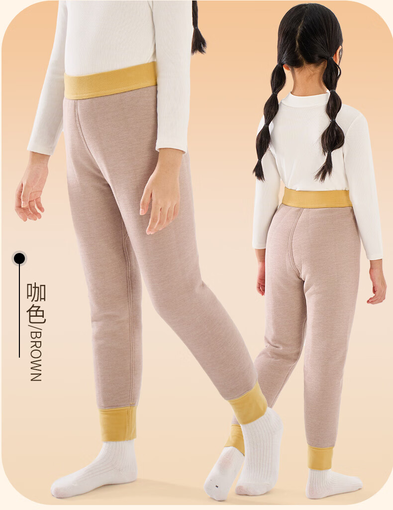 Catman 100% wool children's school uniform artifact winter velvet thickened thermal pants for boys and girls, medium and large children's cotton pants