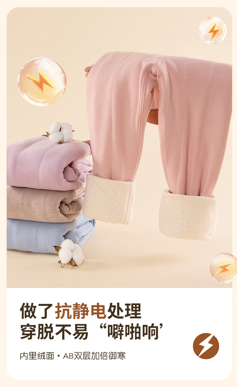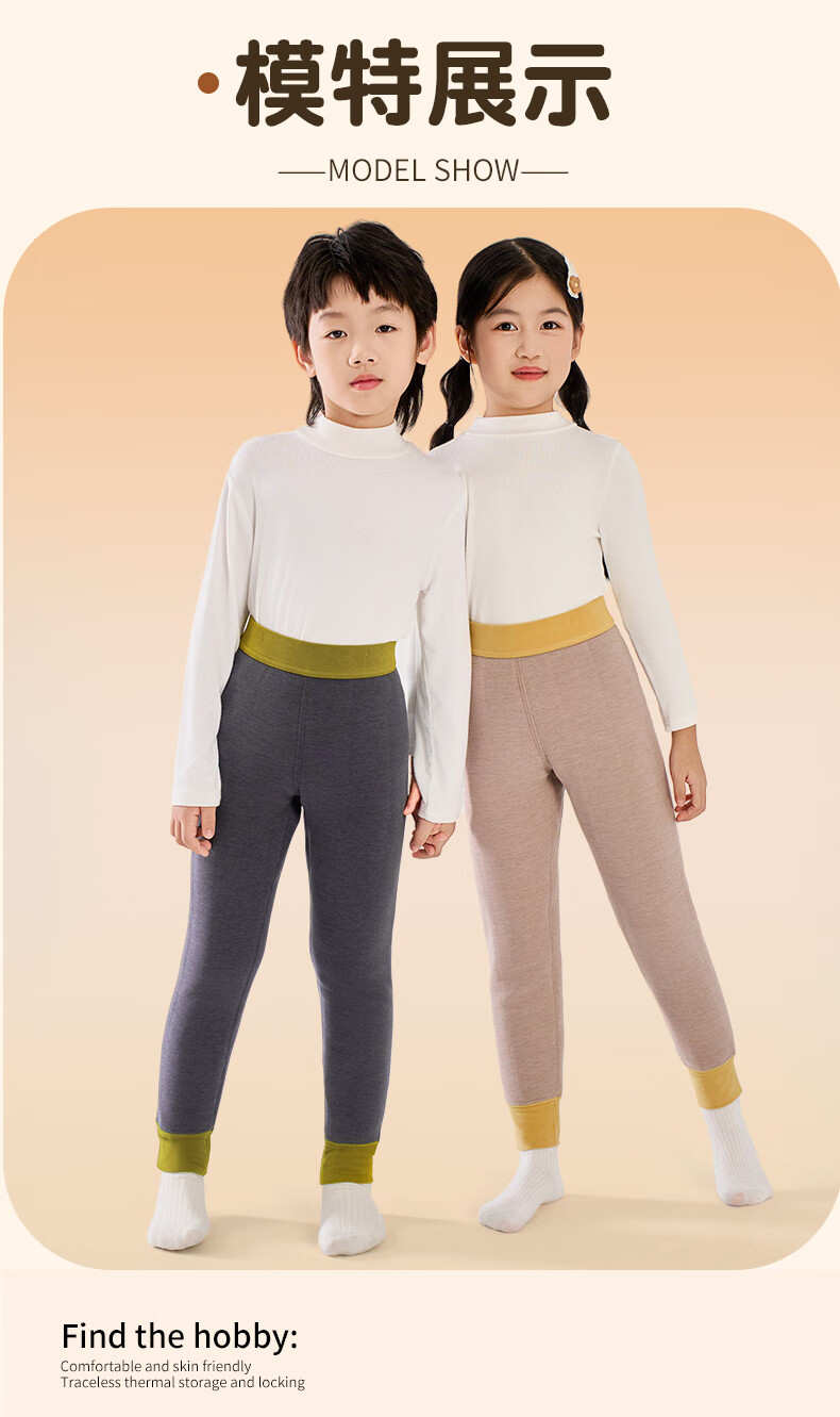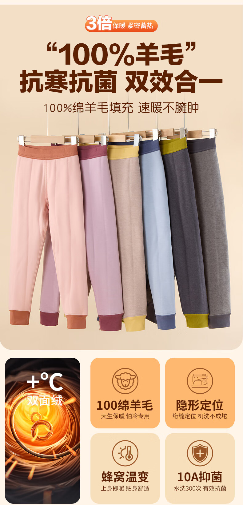 Catman 100% wool children's school uniform artifact winter velvet thickened thermal pants for boys and girls, medium and large children's cotton pants