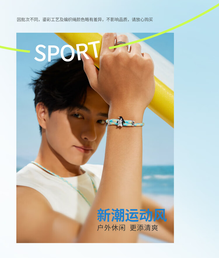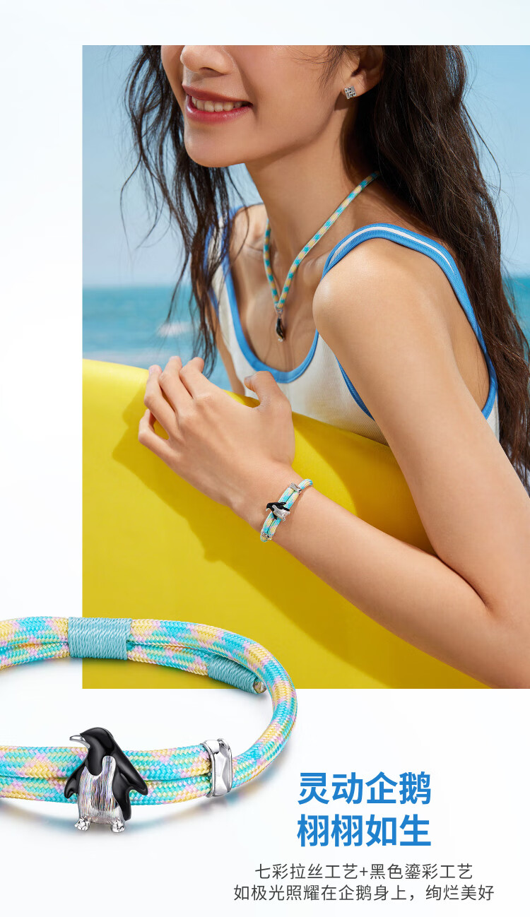Lukfook Jewelry Platinum Bracelet Gilt Ocean Penguin Colorful Brushed Platinum 950 Men's and Women's Bracelet Gold Weight Approximately 8.80 Grams