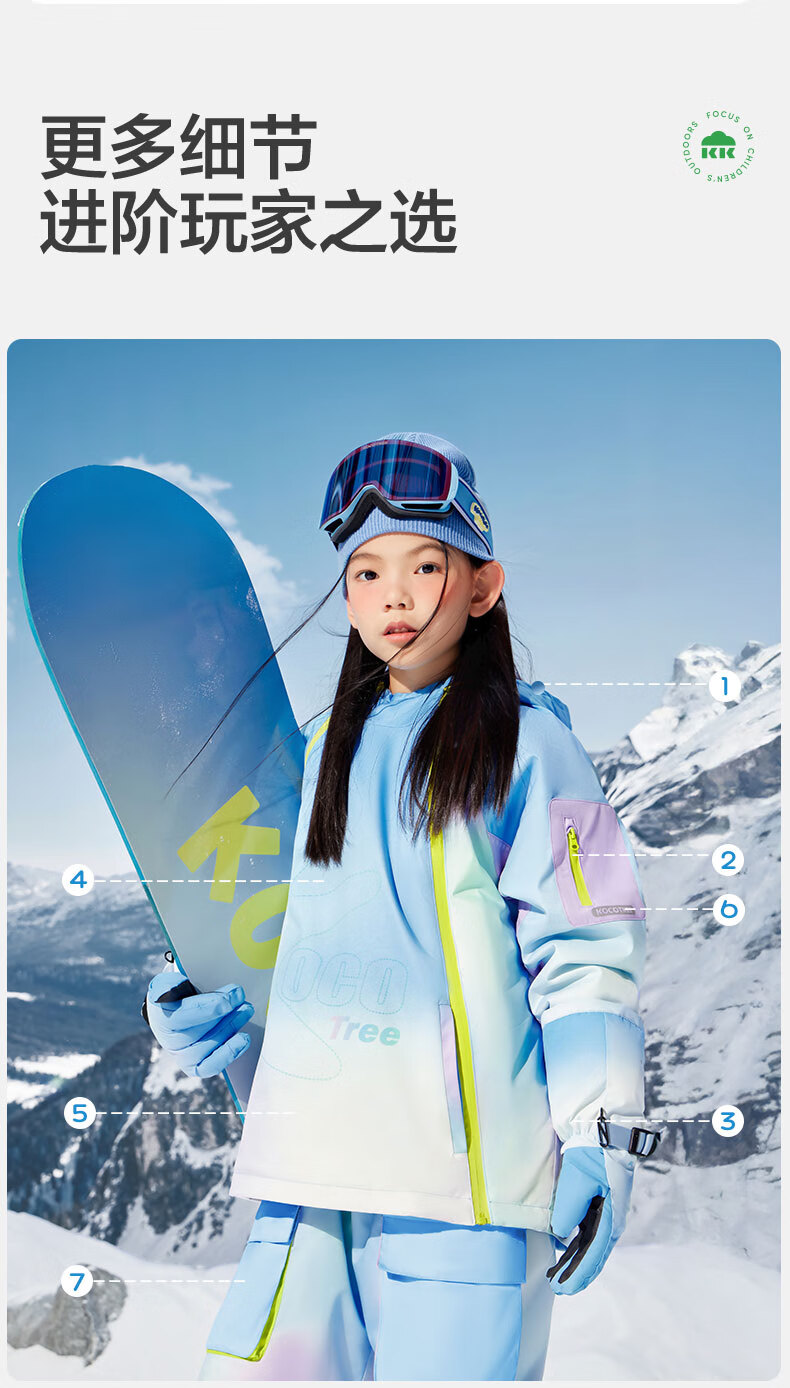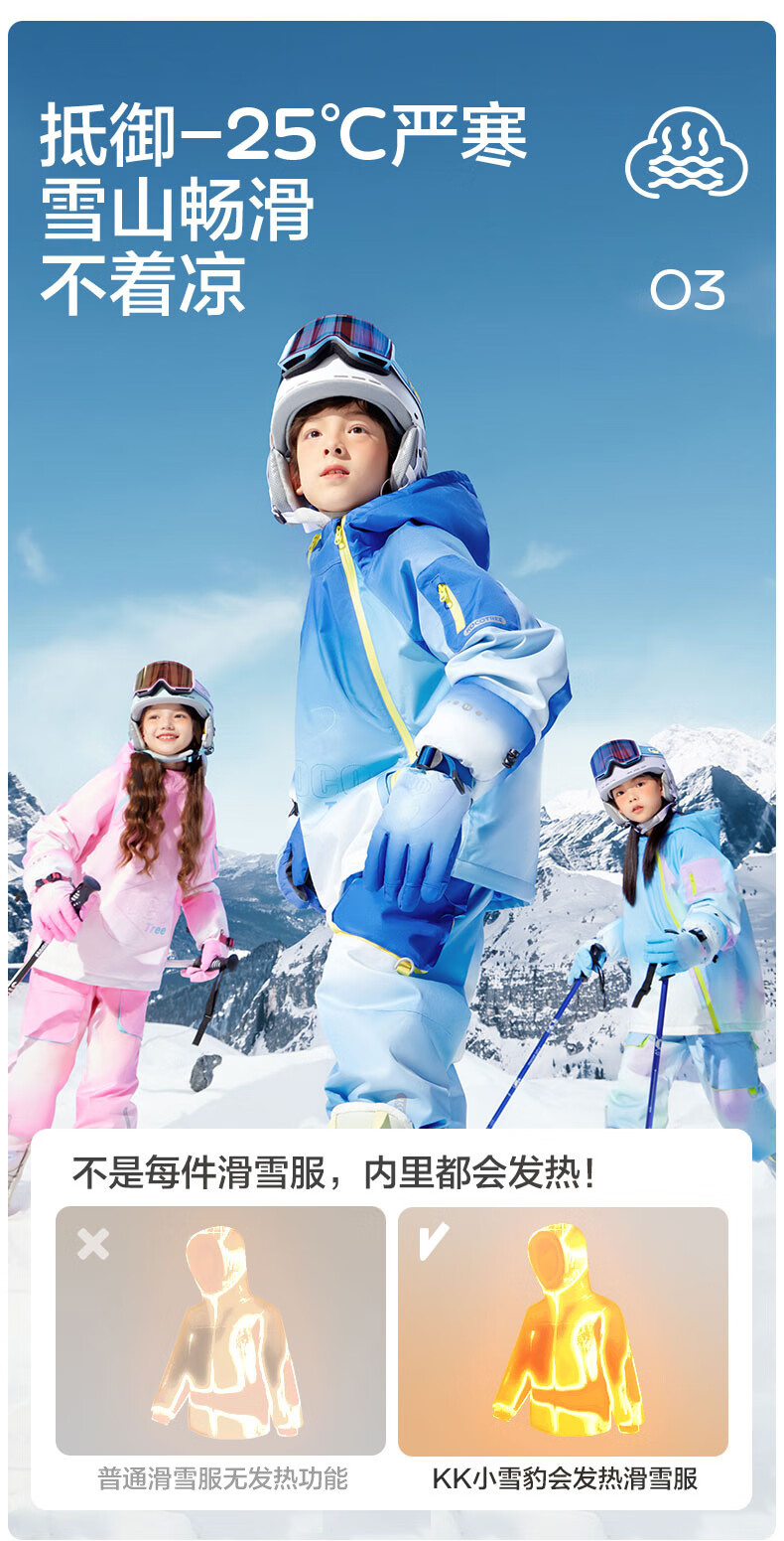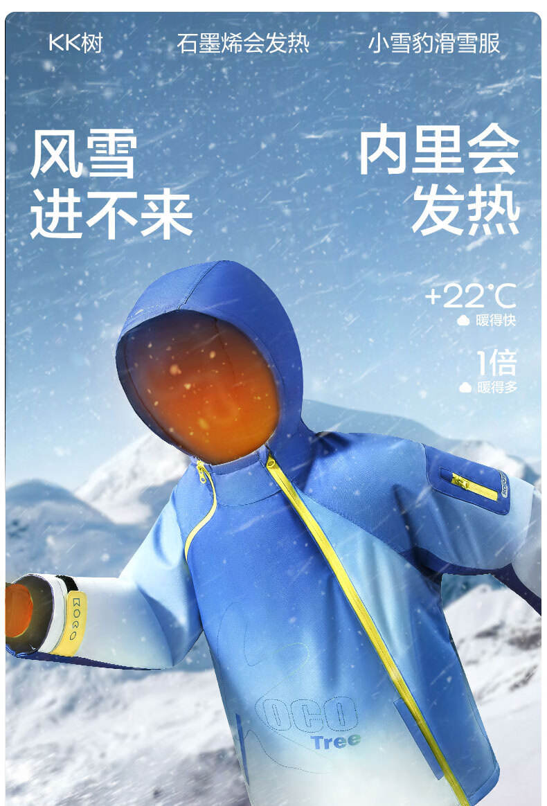 Kocotreekk tree children's ski clothing heated windproof and snowproof jacket boys and girls outdoor warm ski tops