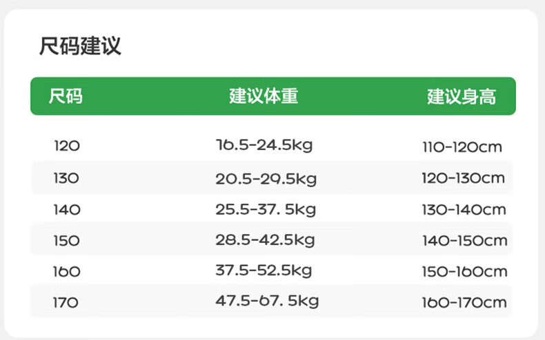 China (cm) 165 / 88-90 170 / 96-98 175 / 108-110 180 / 118-122 185 / 126-130