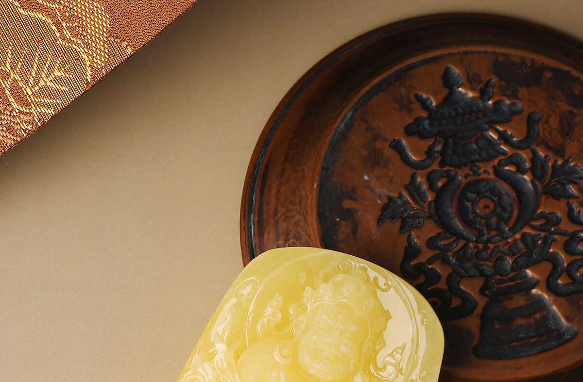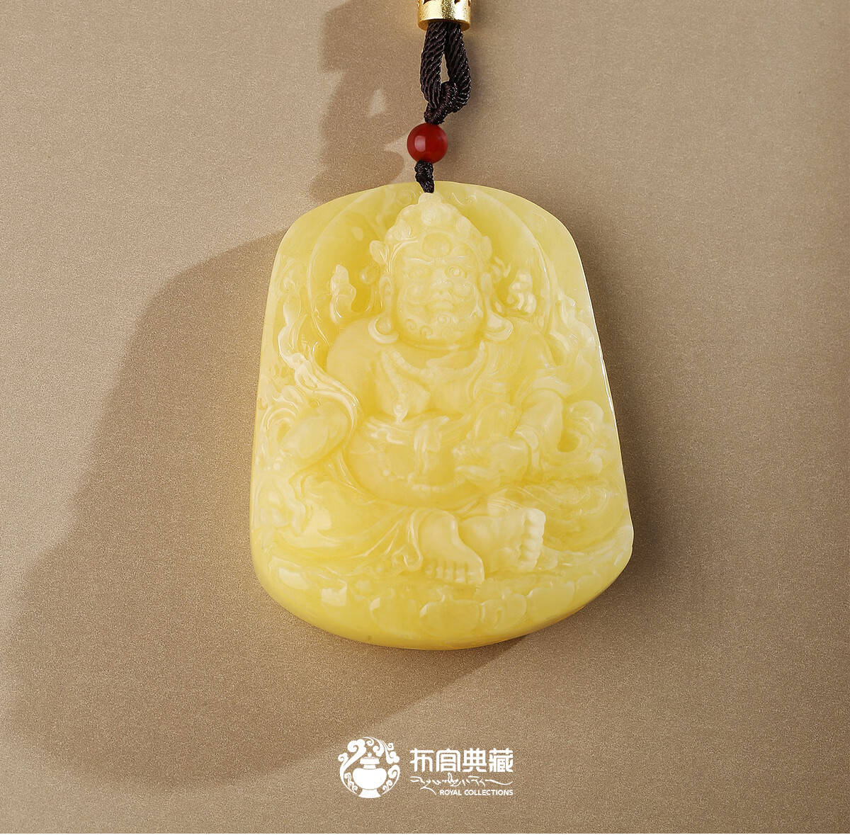 The Potala Palace's unique beeswax yellow carving pendant, braided rope, necklace, necklace, pendant for men and women, birth year gift for boyfriend