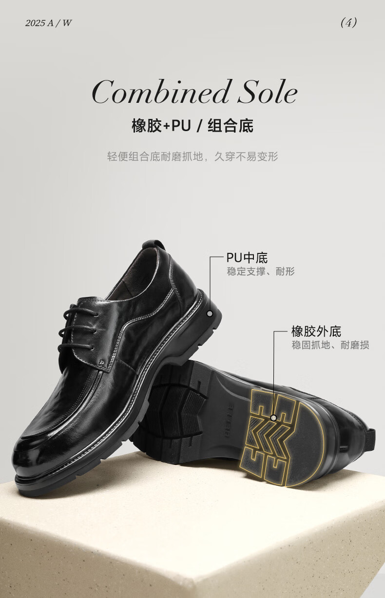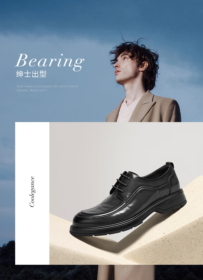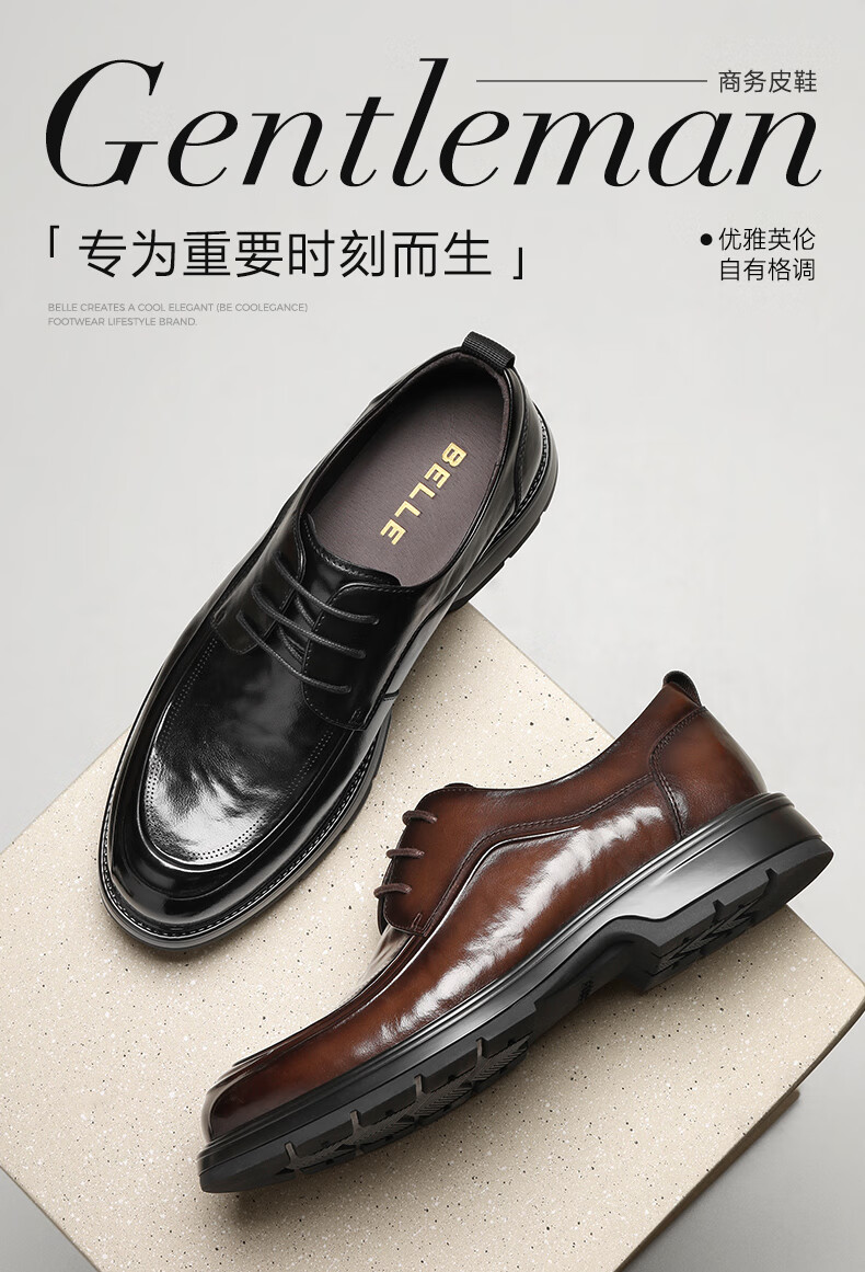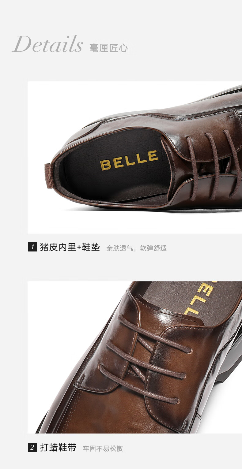 Belle Work Business Shoes Men's 25 Autumn Cow Leather Simple Casual Leather Shoes A2039CM5 Brown 43