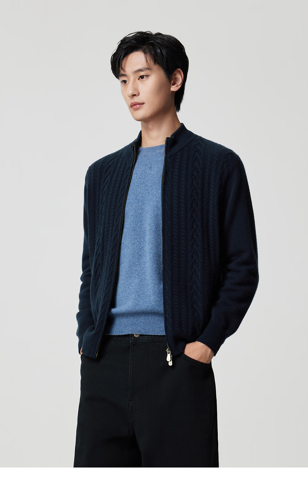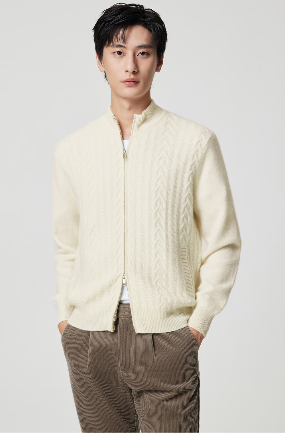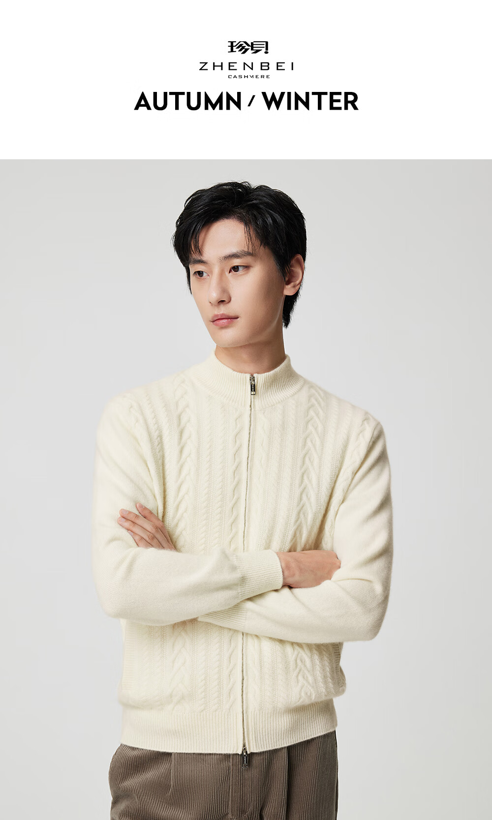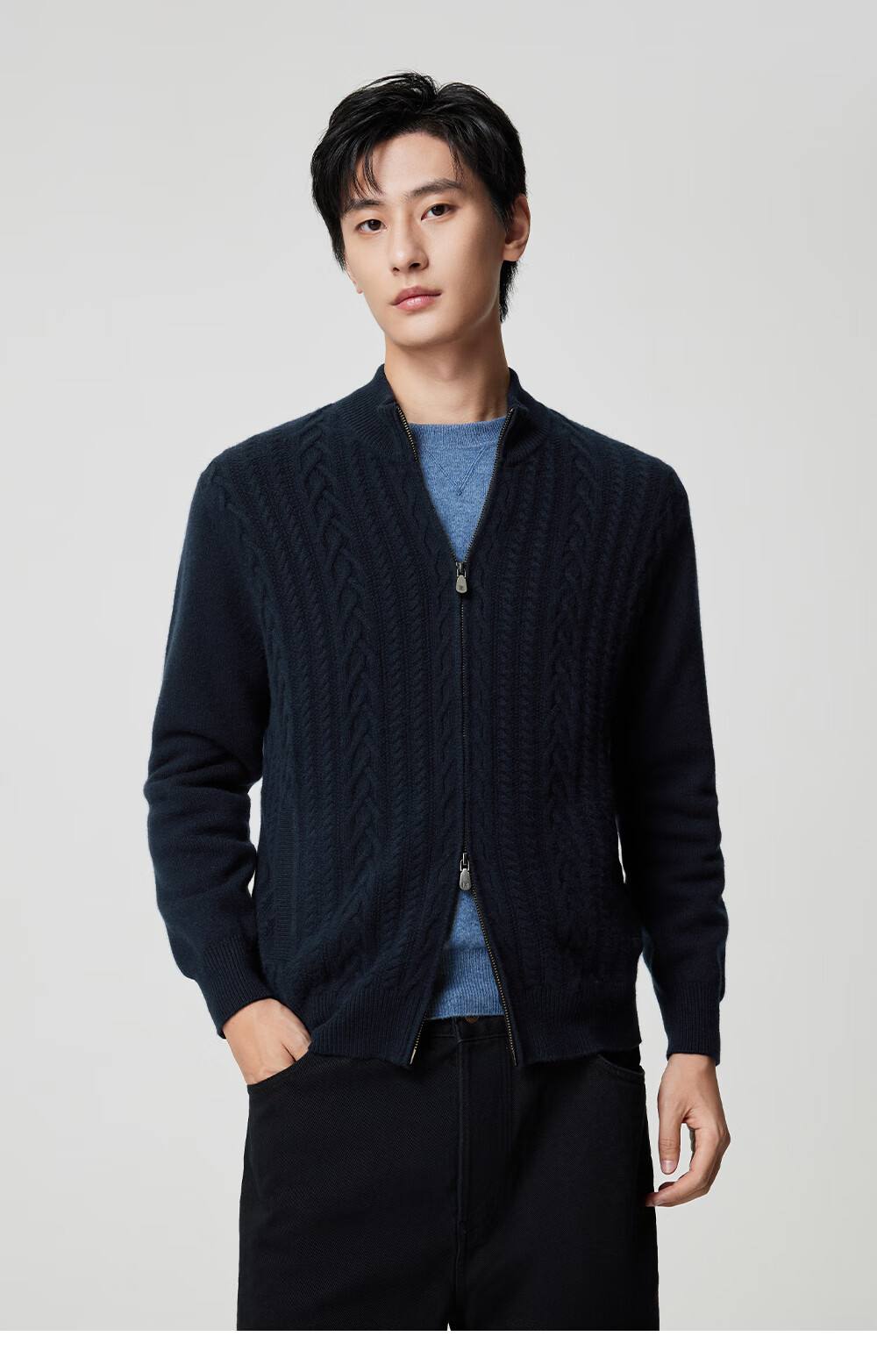 Zhenbei men's half-high collar double zipper thick cashmere knitted cardigan jacket winter new style 31820