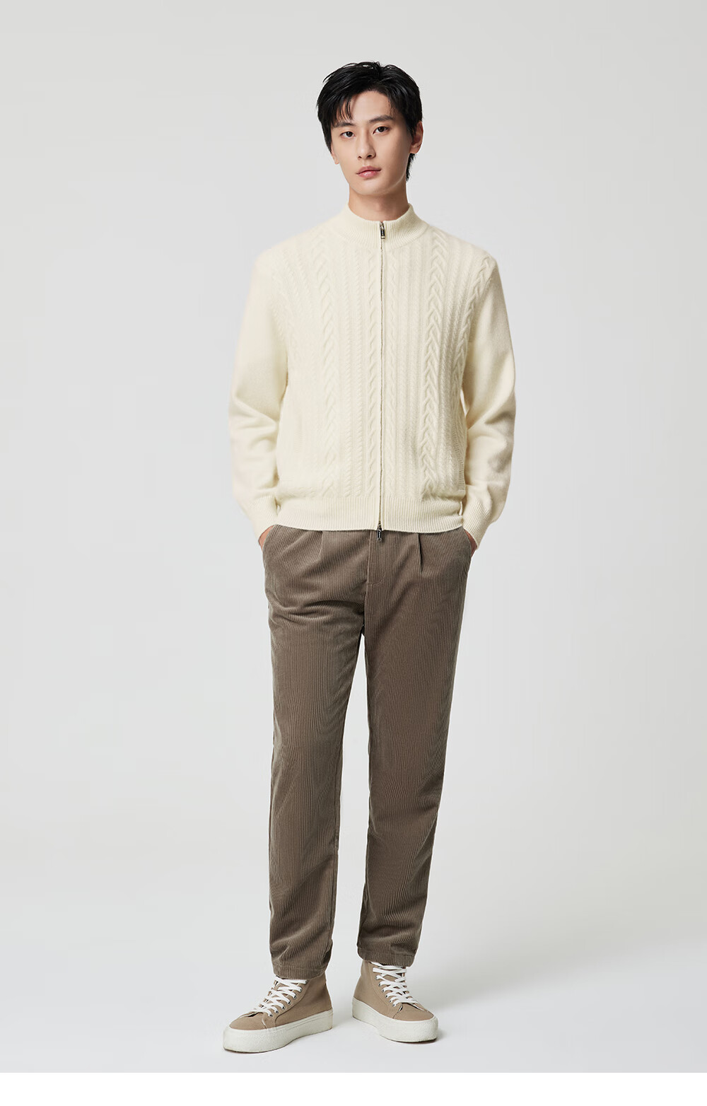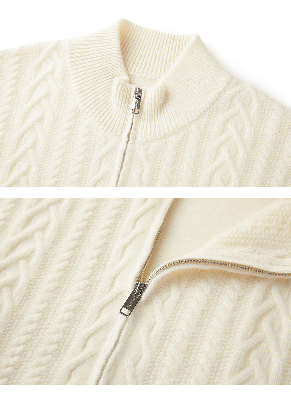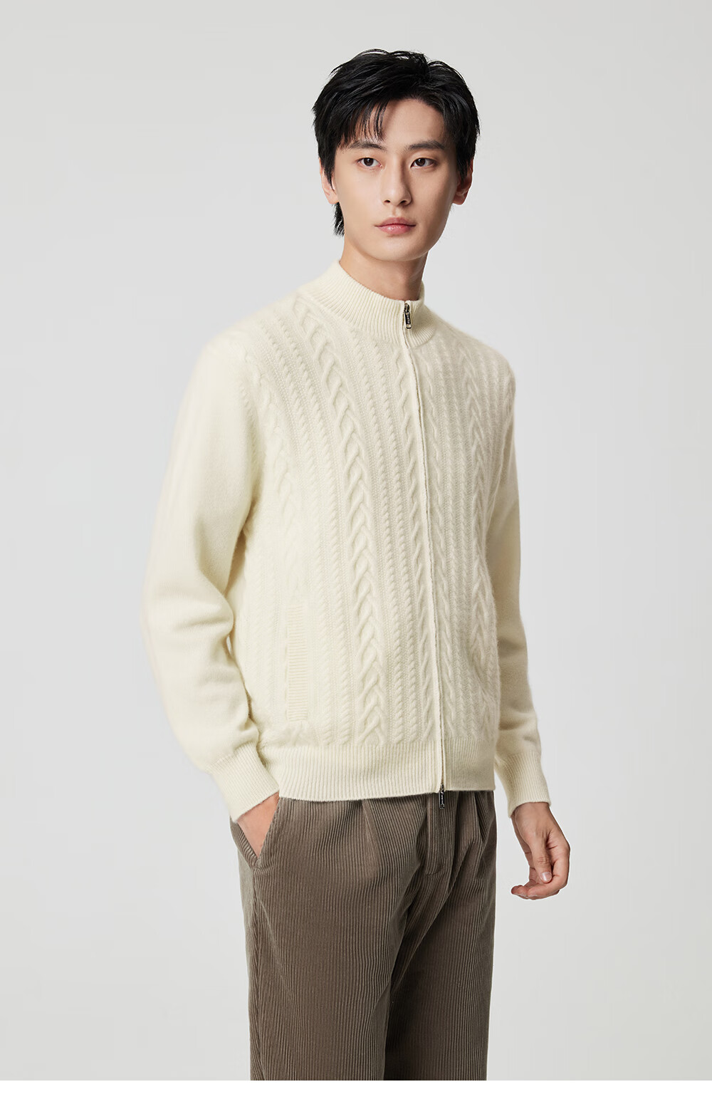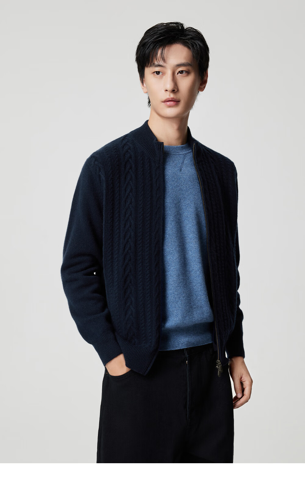 Zhenbei men's half-high collar double zipper thick cashmere knitted cardigan jacket winter new style 31820