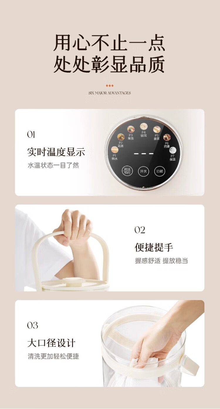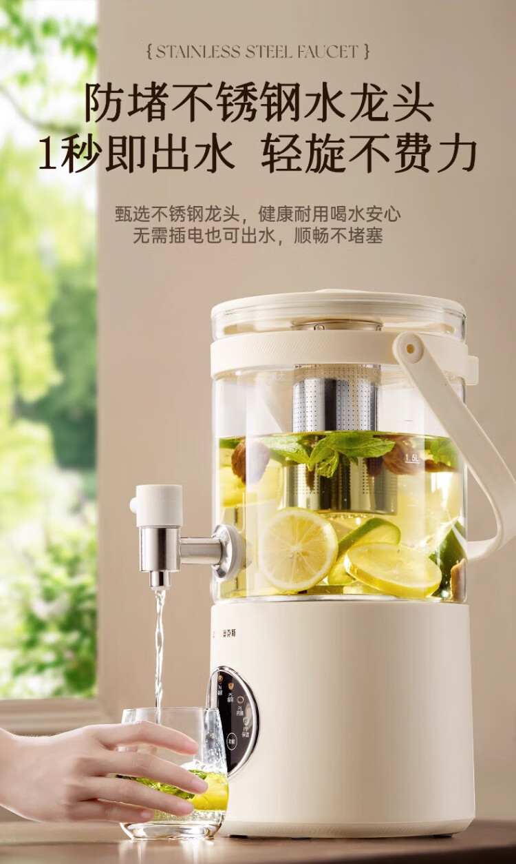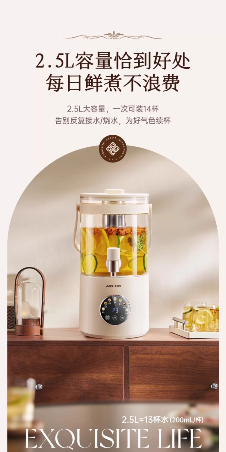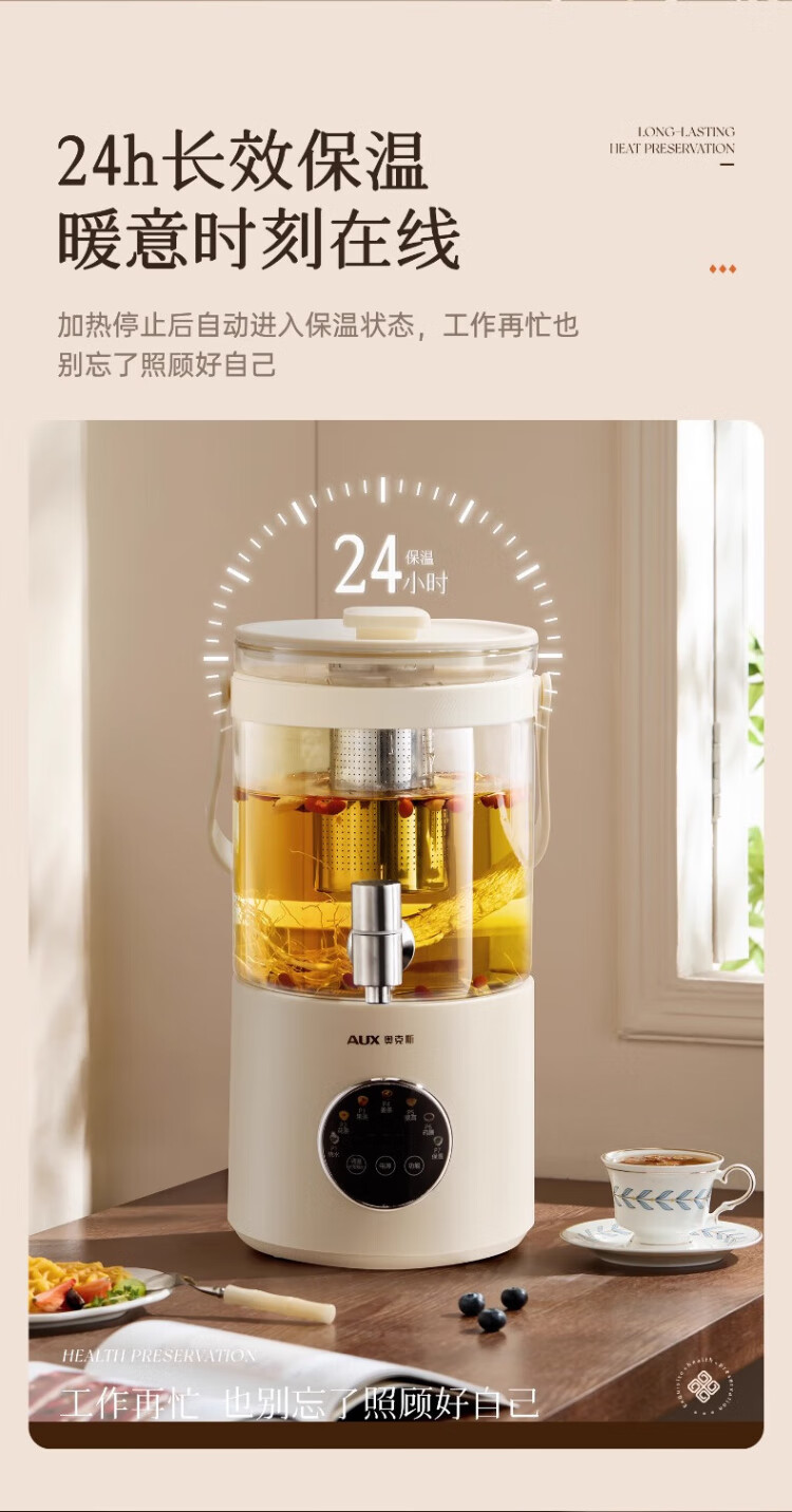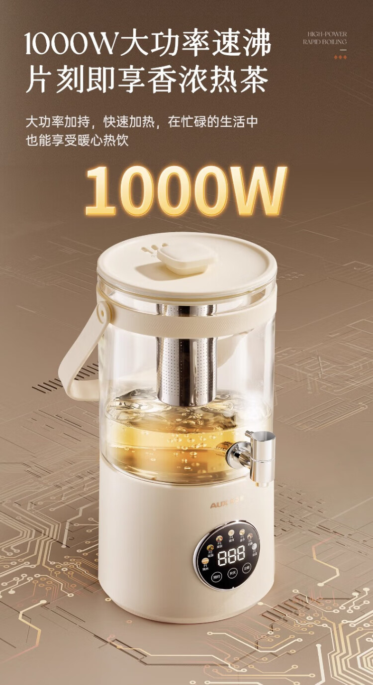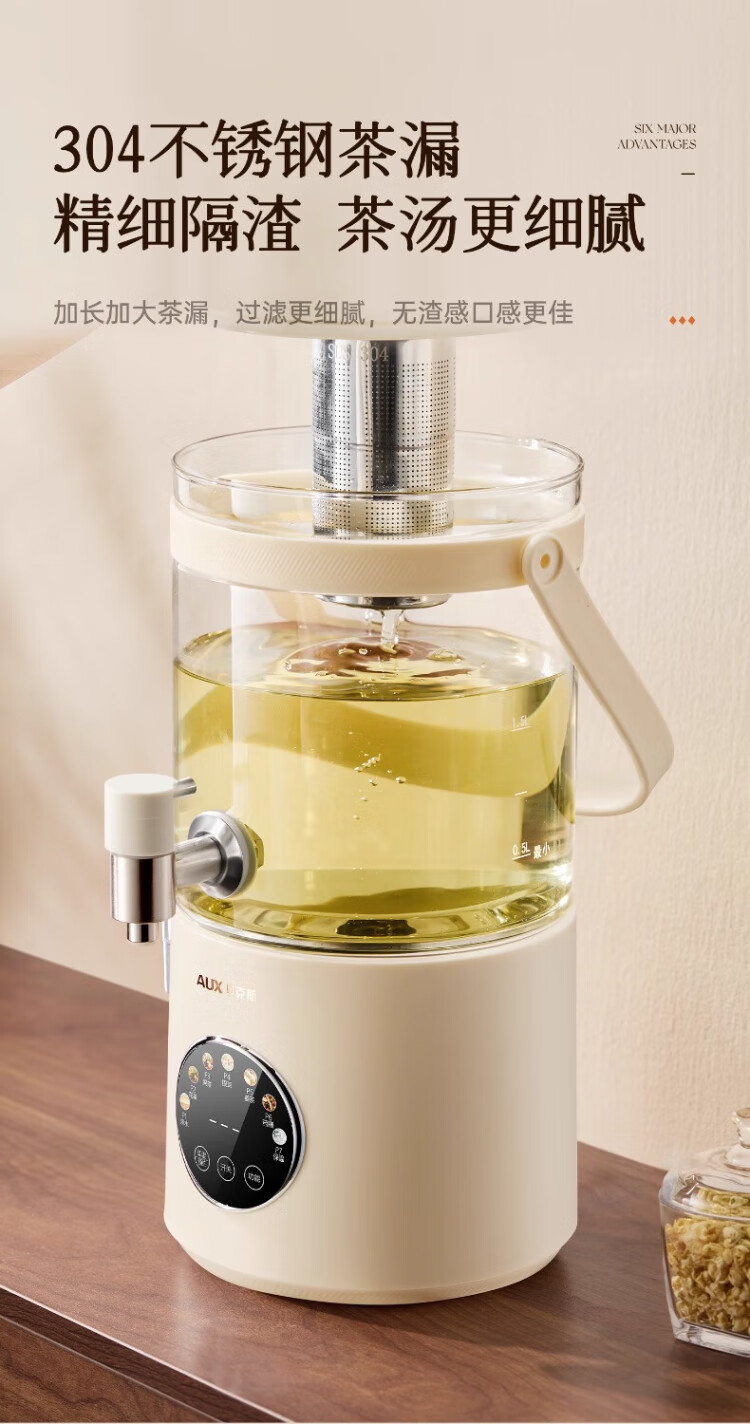 AUX Health Pot Flower Tea Bucket 3L Multifunctional Glass 0 Glue Household Water Boiling Thermostatic Kettle Large Capacity Tea Kettle with Faucet YS133 Filter Model