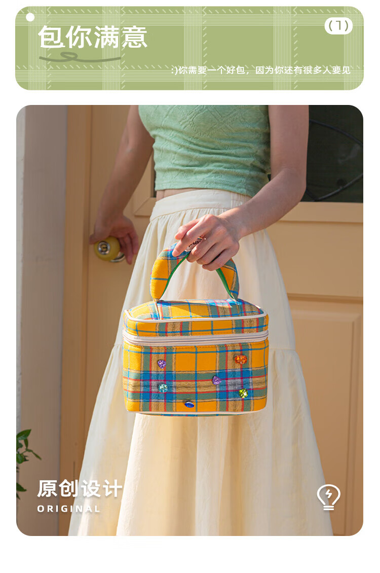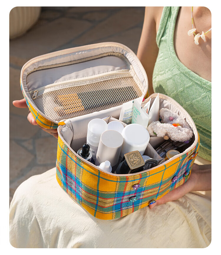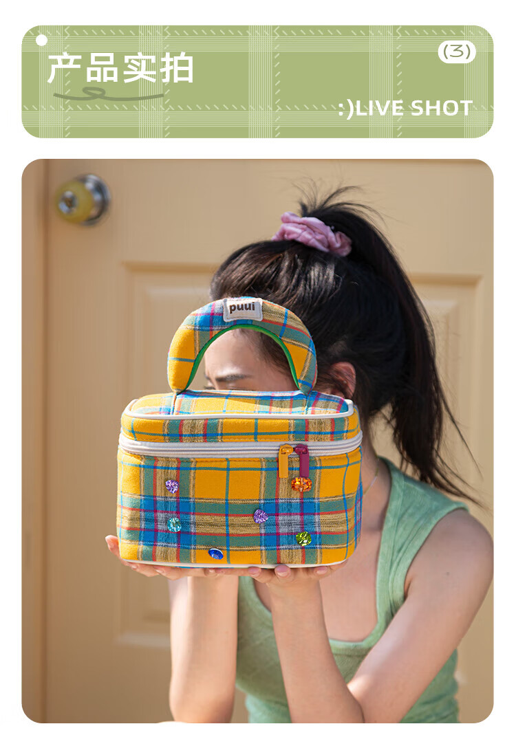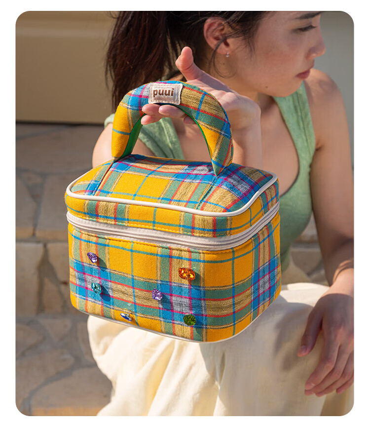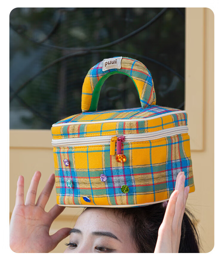 PUUI cosmetic bag portable large-capacity gem plaid storage bag high-end travel toiletry bag