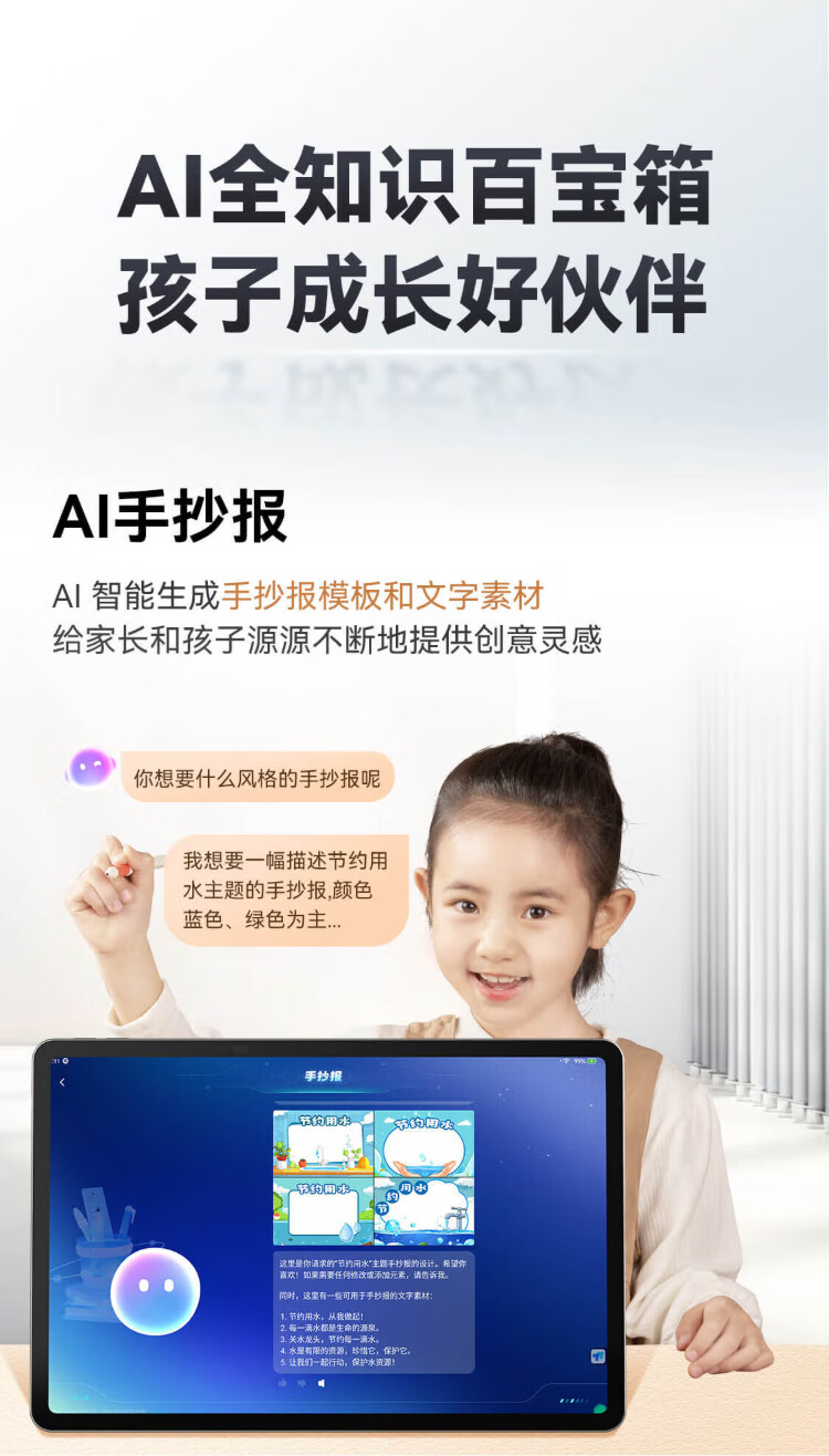 Xiaoyuan AI learning machine R1, national subsidy of 500 yuan, all-round AI treasure box, AI emotional companionship, 1v1 full-scenario tutoring, tablet eye protection screen 13.2 8+256