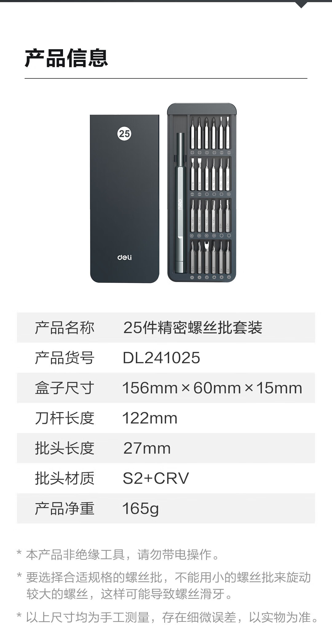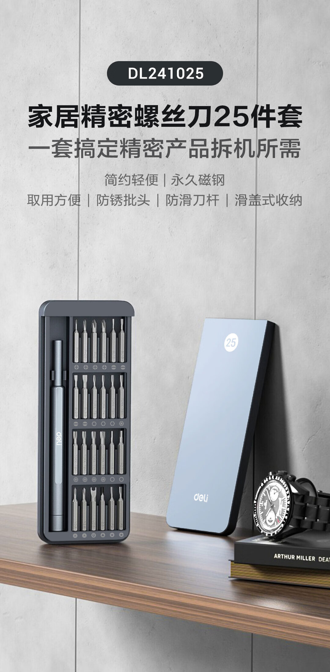 Deli Precision Screwdriver Set Slotted Cross Screwdriver Eyewear Watch Dimensional Correcting Cone 25 Pieces DL241025