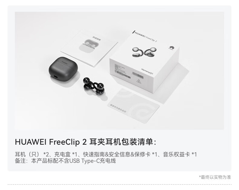Huawei FreeClip 2 ear clip headphones, modern black, open wireless Bluetooth headphones, new C-shaped bridge, comfortable and stable/powerful dual-engine