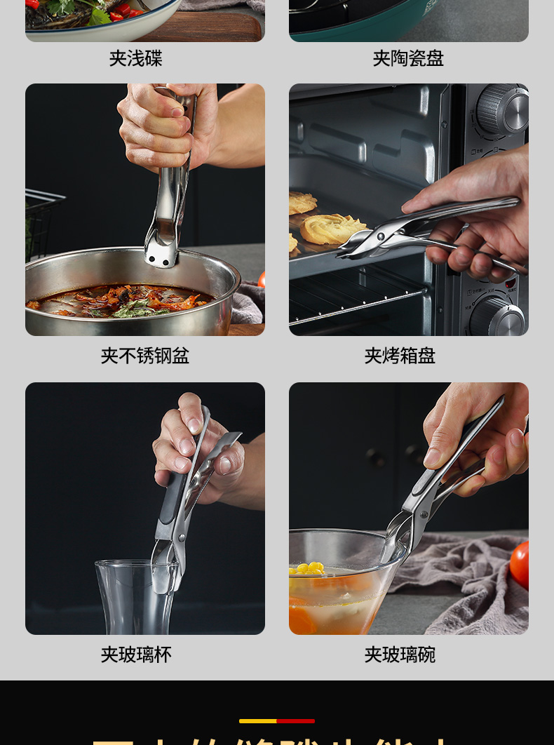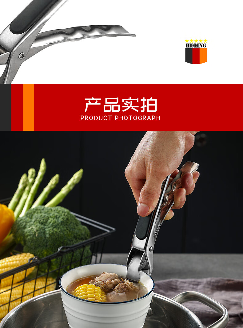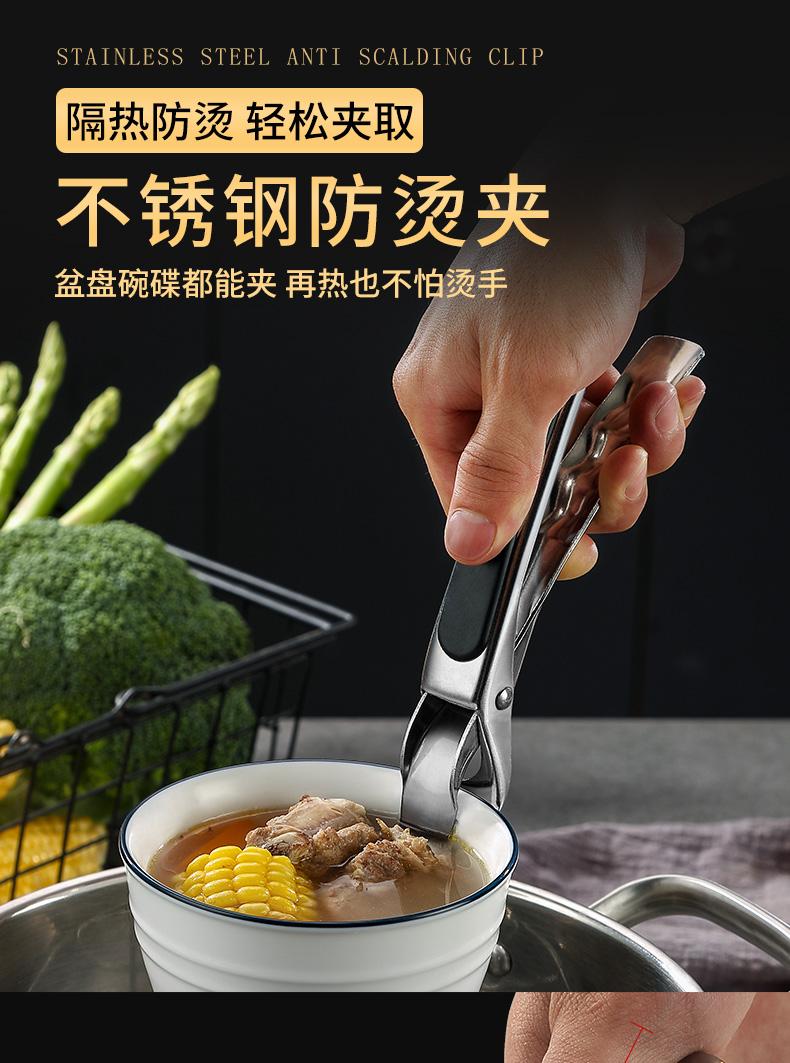 Heqing stainless steel anti-scalding dish clamp, bowl clamp, plate kitchen anti-slip, anti-scalding portable bowl clamp, bowl remover, bowl remover, anti-scalding clip, silicone handle