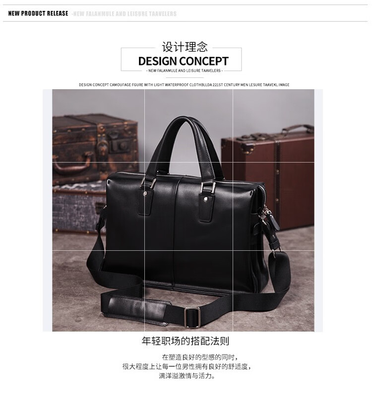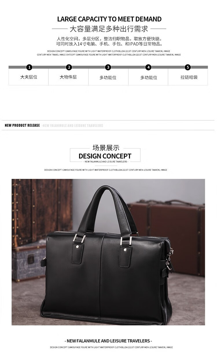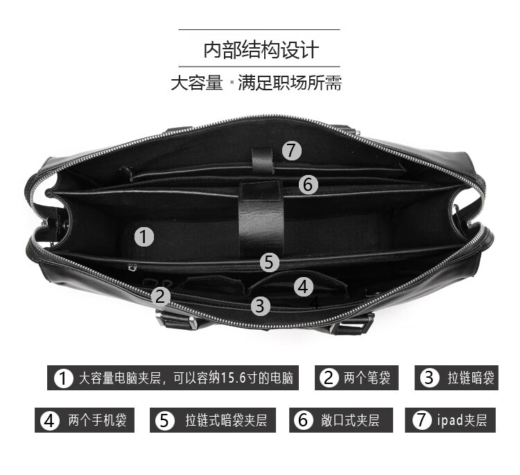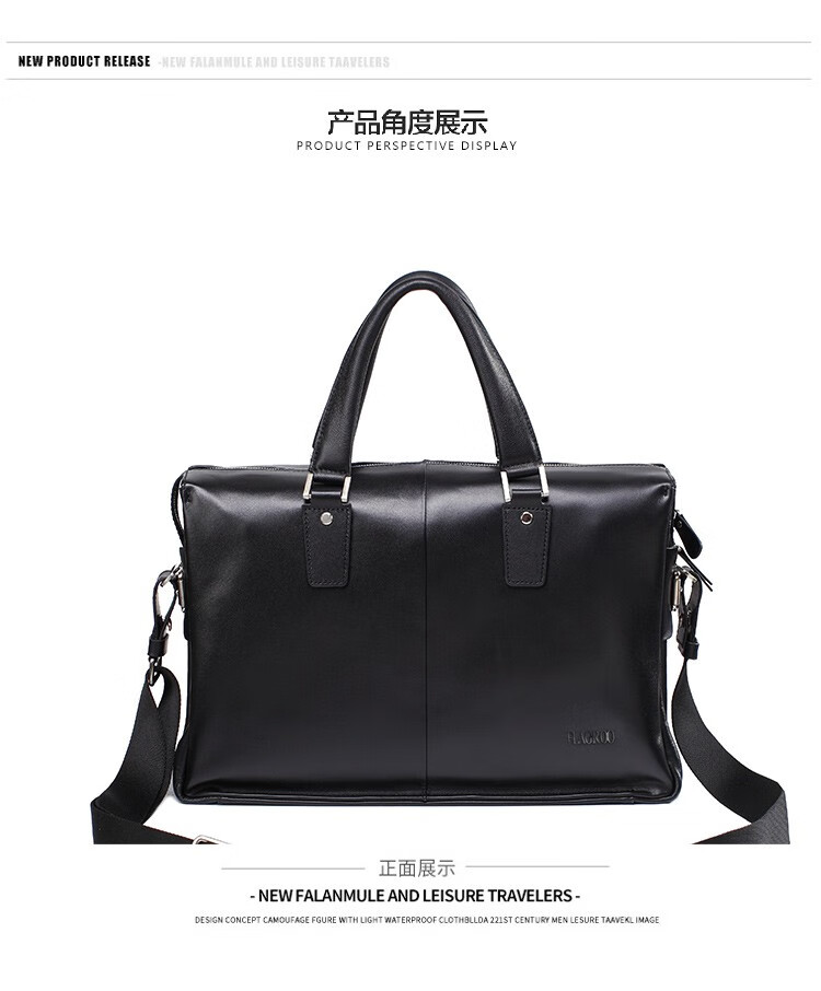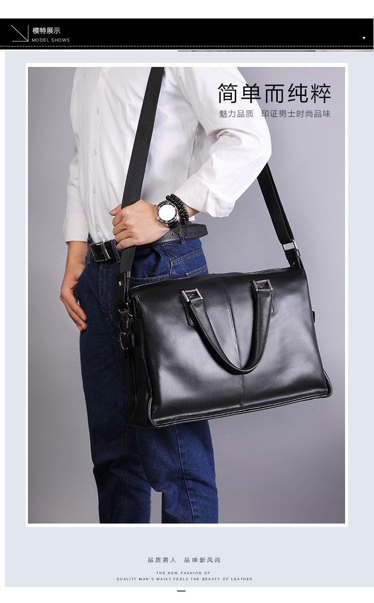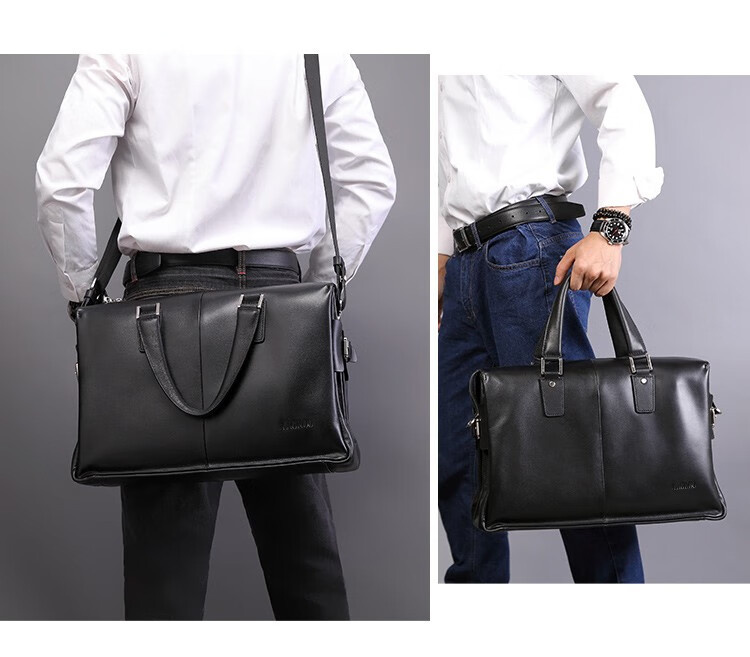 Aoyi men's handbag genuine leather business briefcase first-layer cowhide men's bag fashionable large capacity 15.6-inch computer bag first-layer cowhide black model length 40 height 28 thickness 14 cm