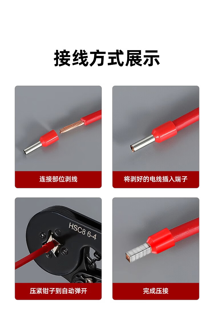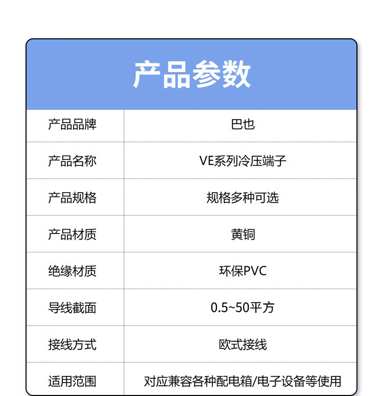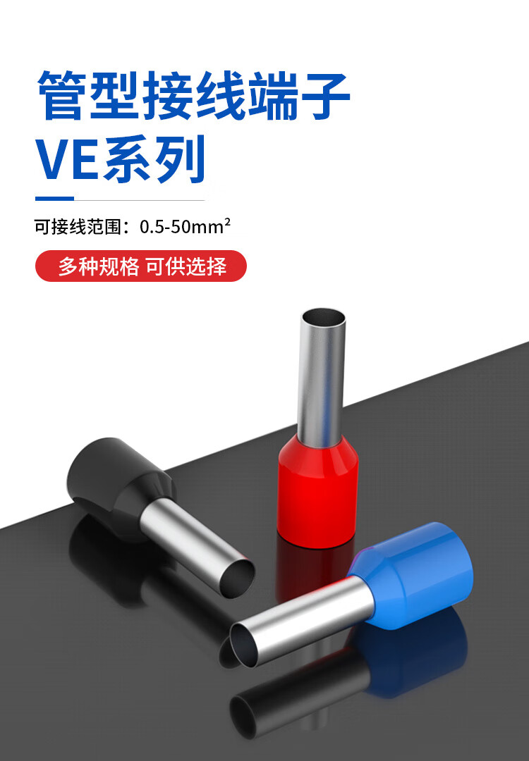 Baye VE tube type pre-insulated cold-pressed terminal block pin type copper nose red 200 pieces BY-E35-16