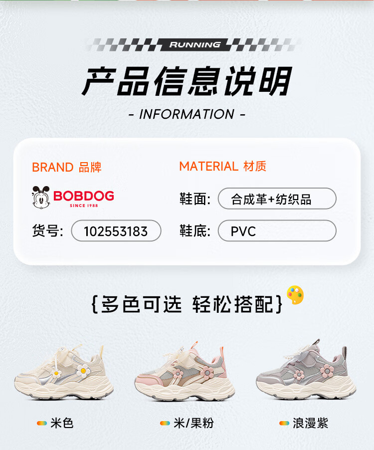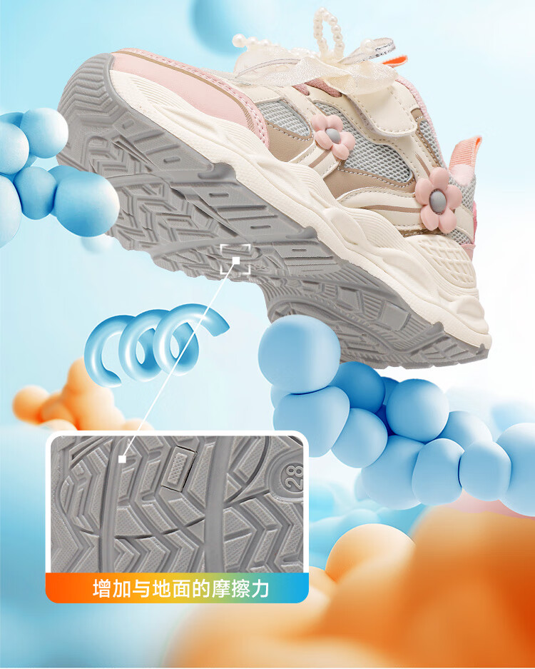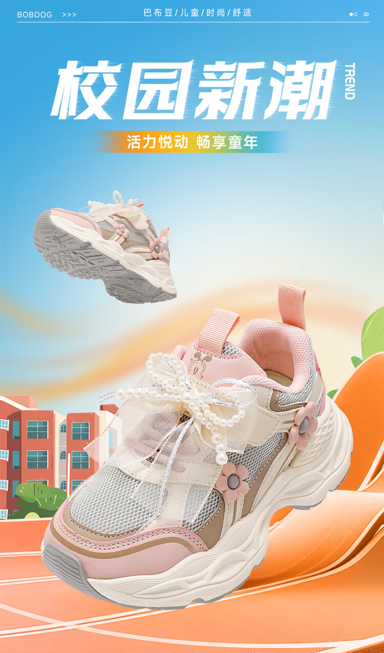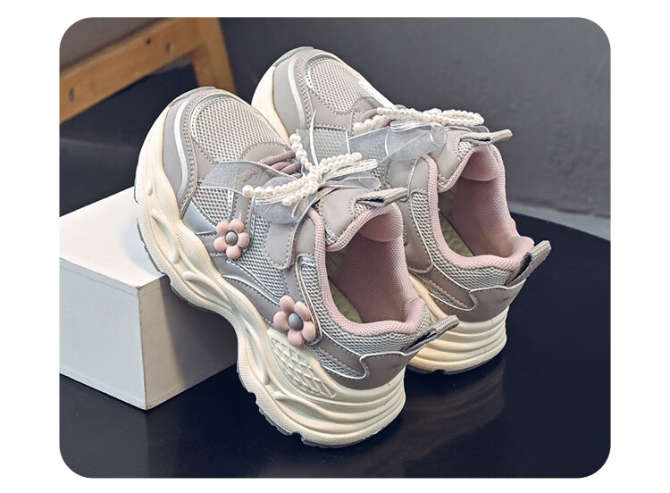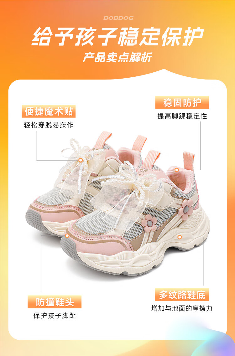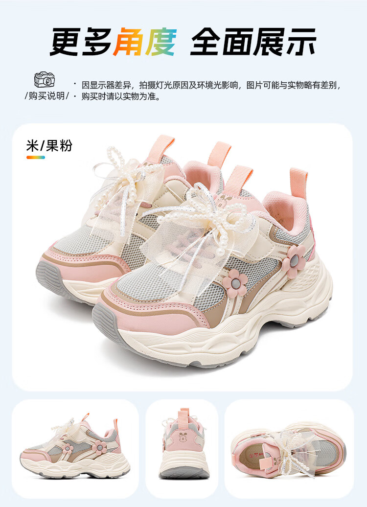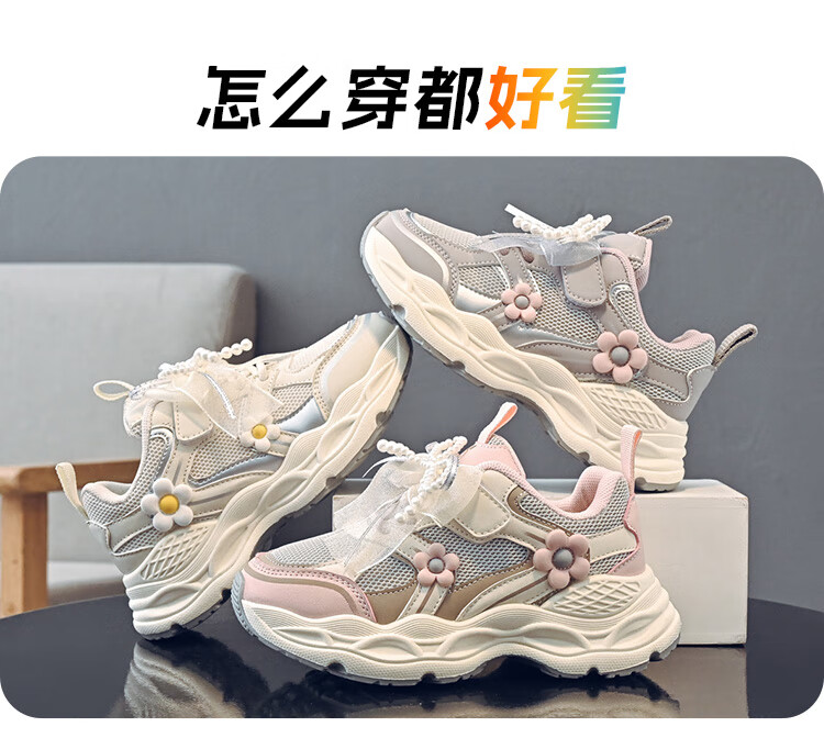 Babudou children's shoes girls winter fashion versatile dad shoes plus velvet warm children's sports shoes 106555102 beige 34