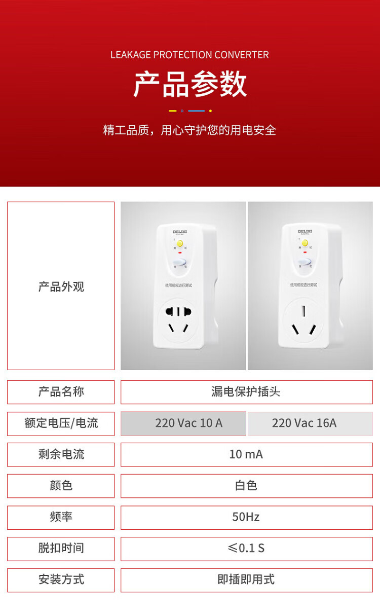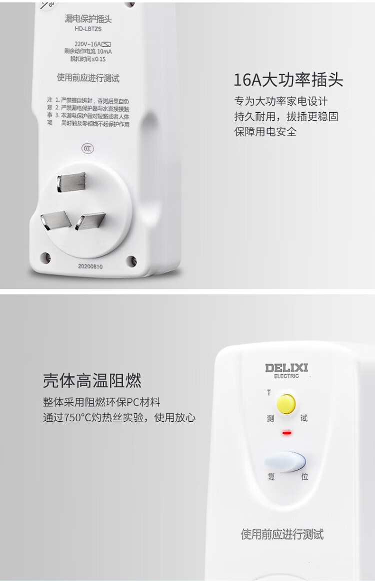 Delixi electrical leakage protection plug high power wiring household 10A