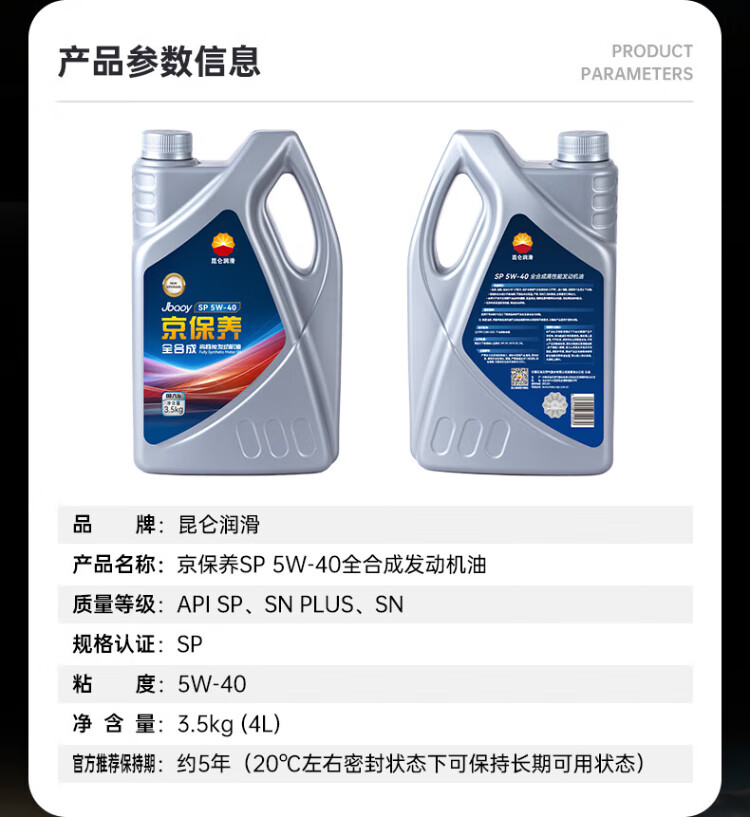 KunLun (KunLun) PetroChina Jing Maintenance Kunlun Lubricating Fully Synthetic Gasoline Oil 5W-40 SP 4L Jingdong Car Maintenance