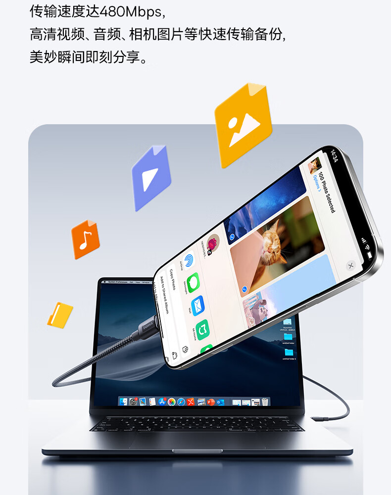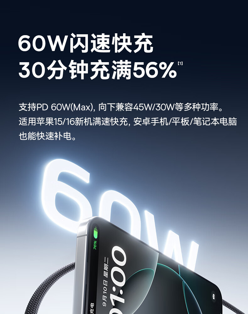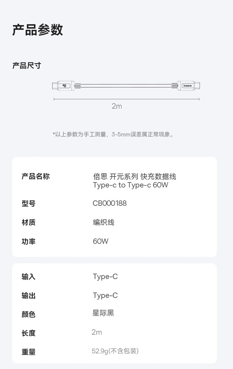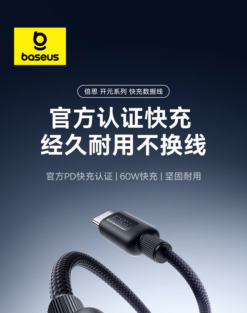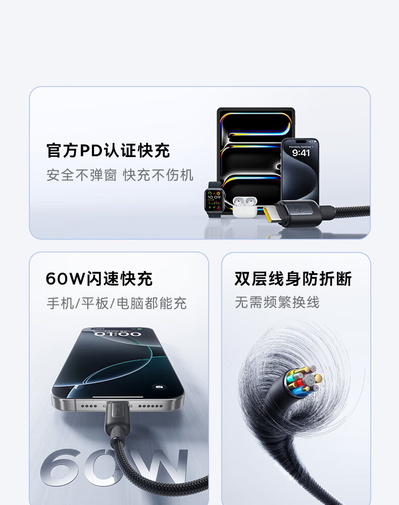 倍思苹果17/16/15充电线Type-C数据线双头PD60W快充线ctoc车载适用iPhone17/16/15pro平板iPad 2米黑